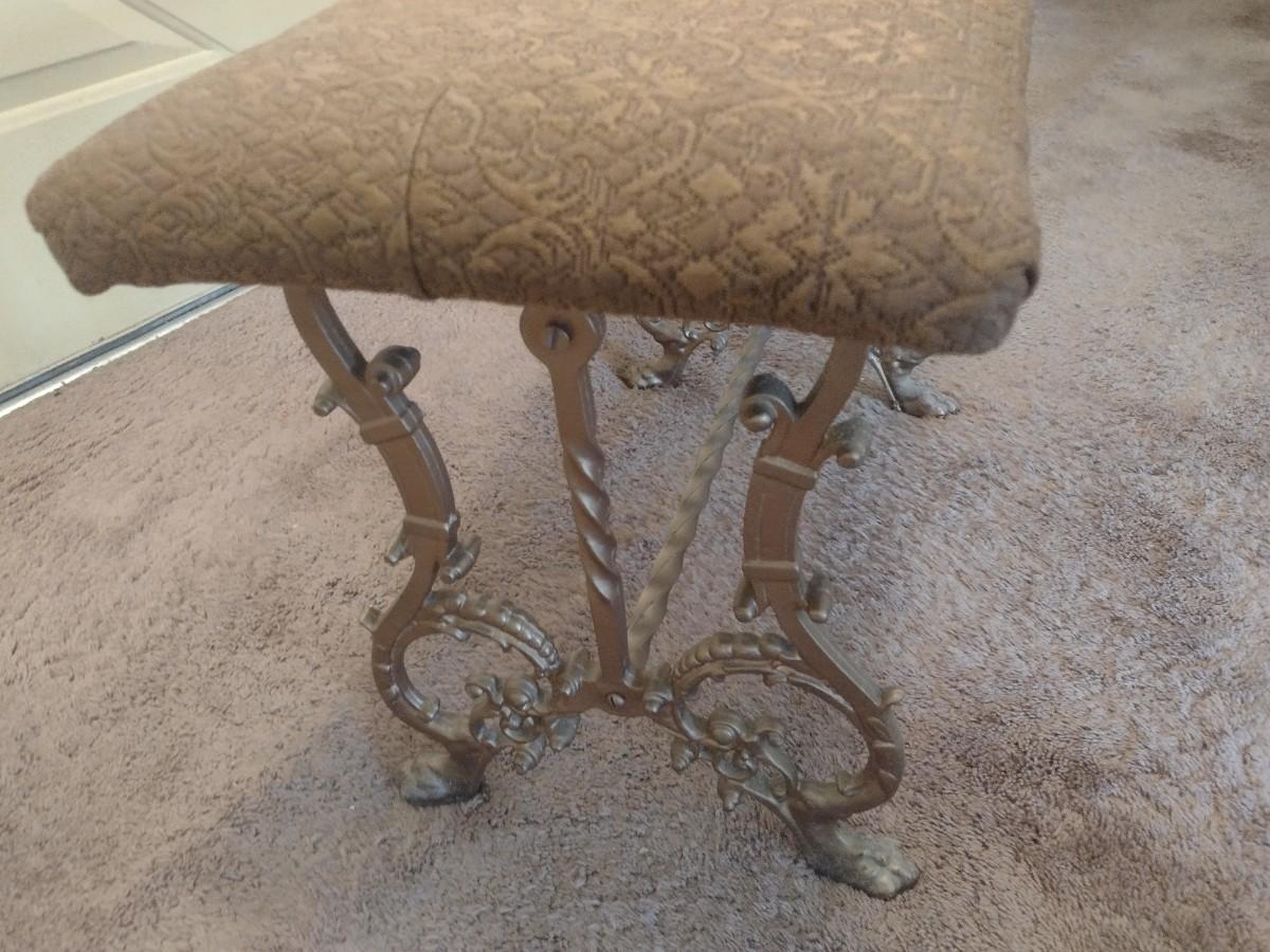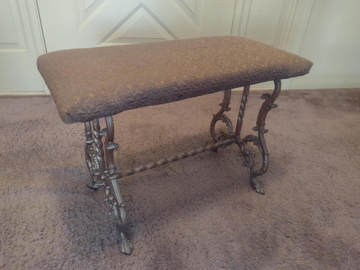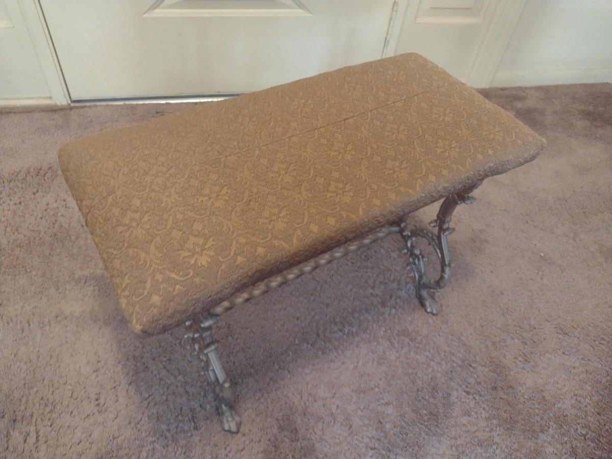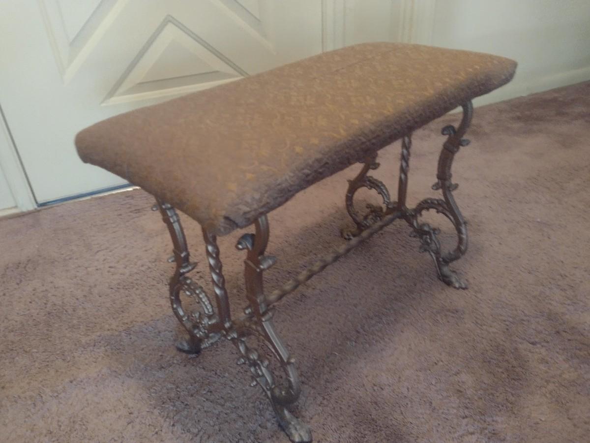 Vintage Cast Metal Base Upholstered Seat Bench