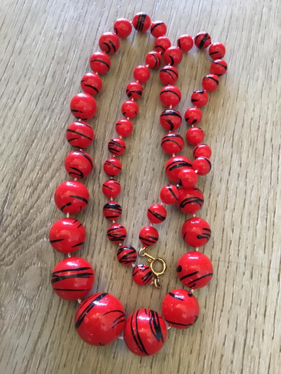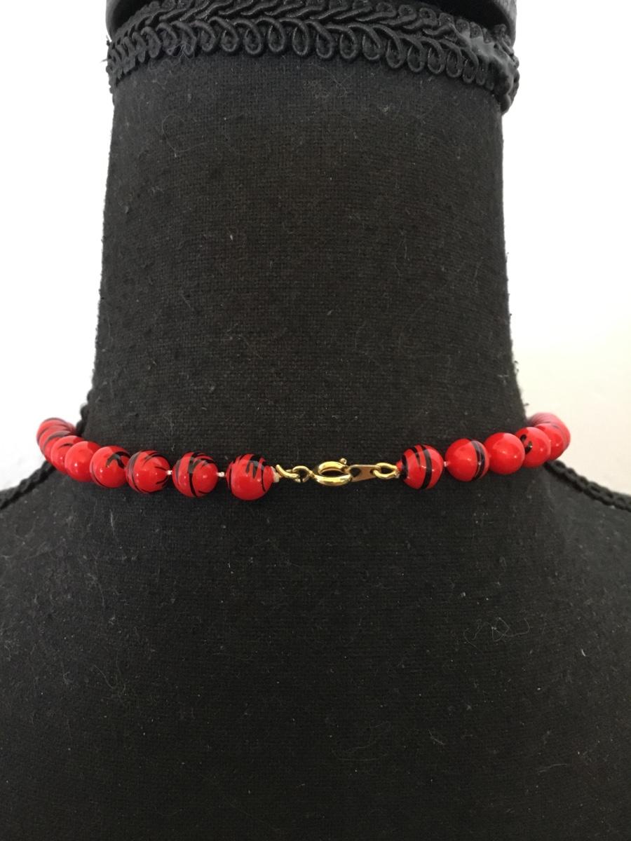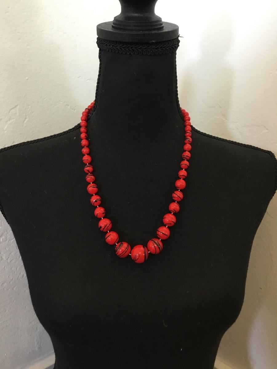 Vintage, cherry, red black, striped beaded necklace