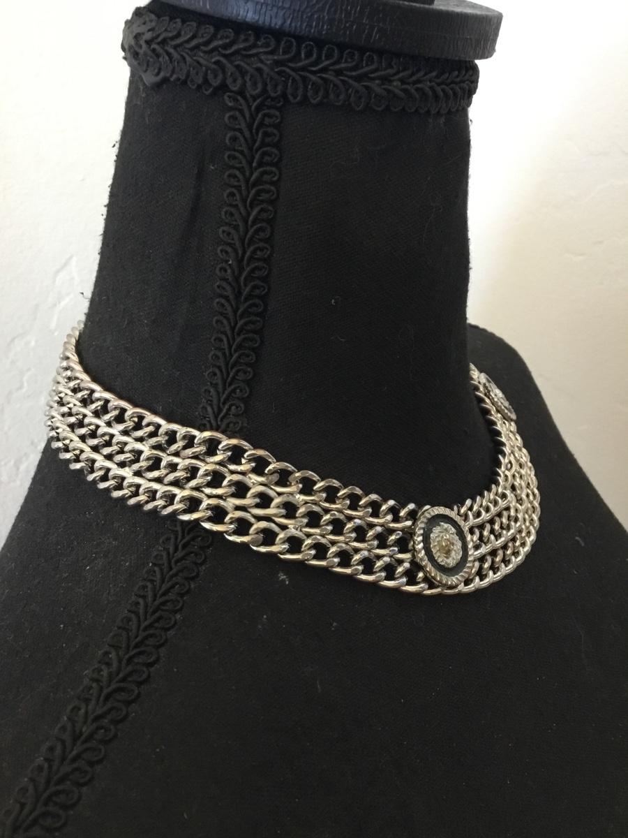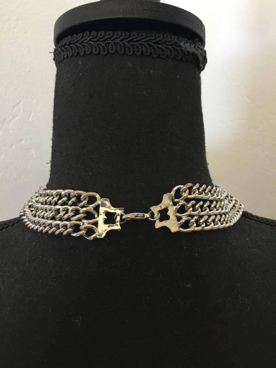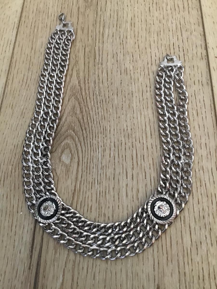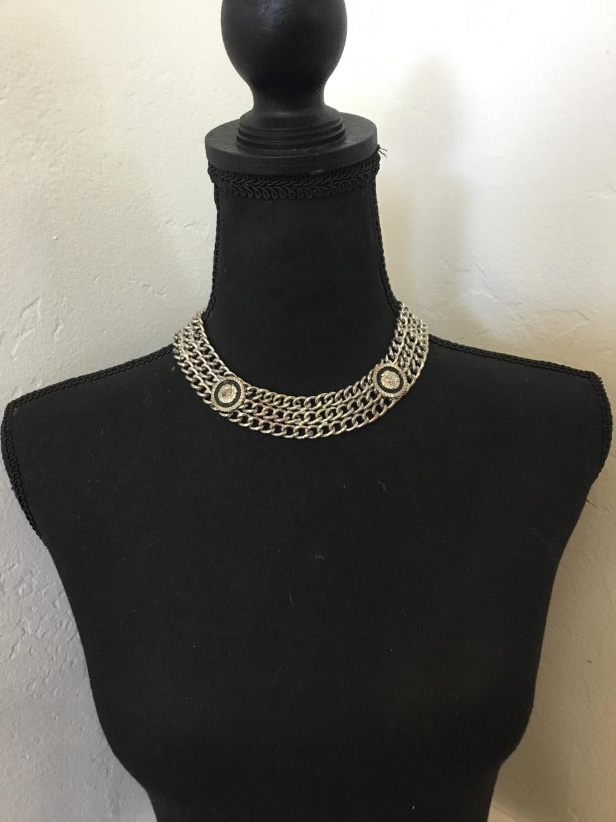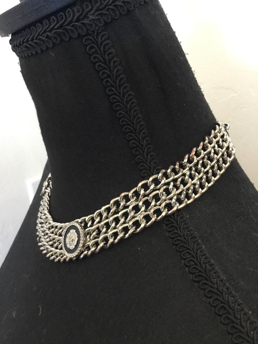 Vintage chunky silver tone chain collar statement, necklace with lion heads