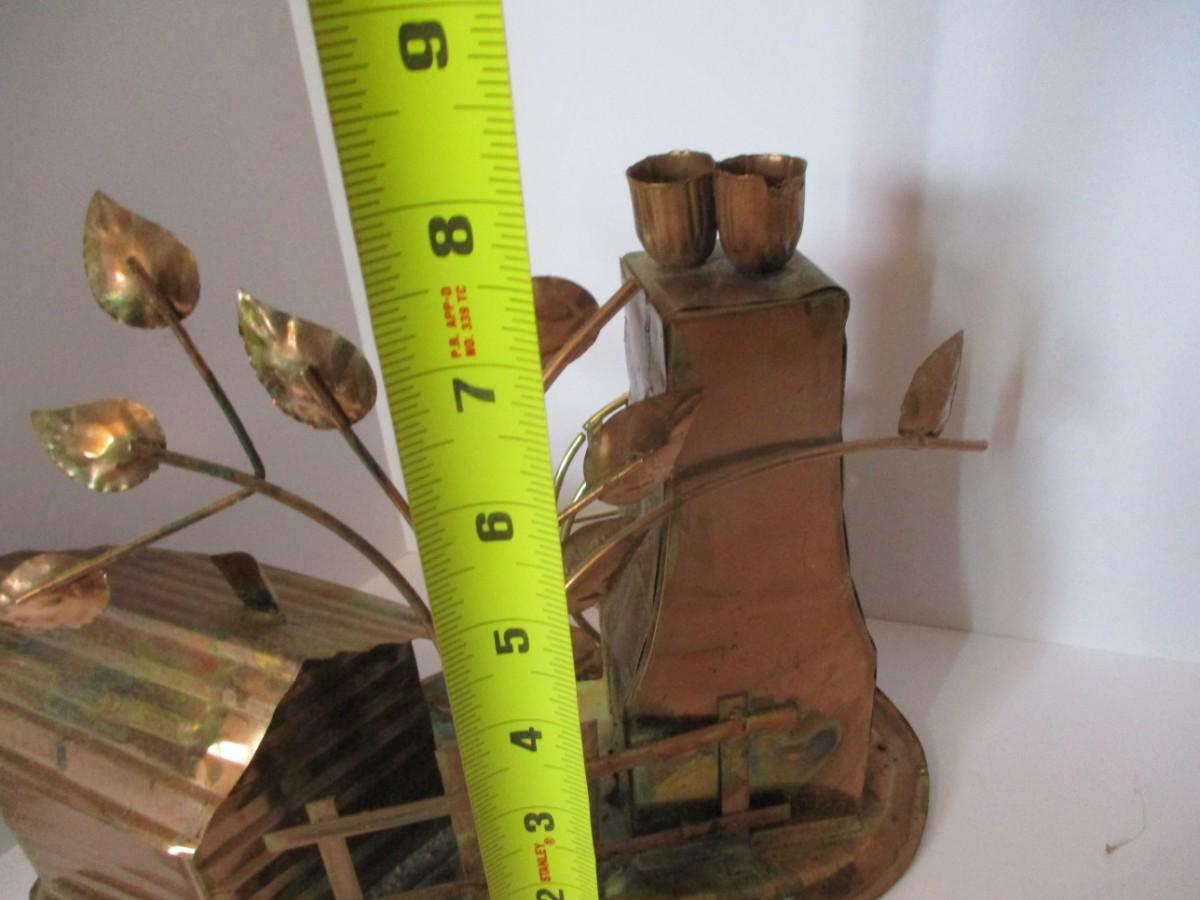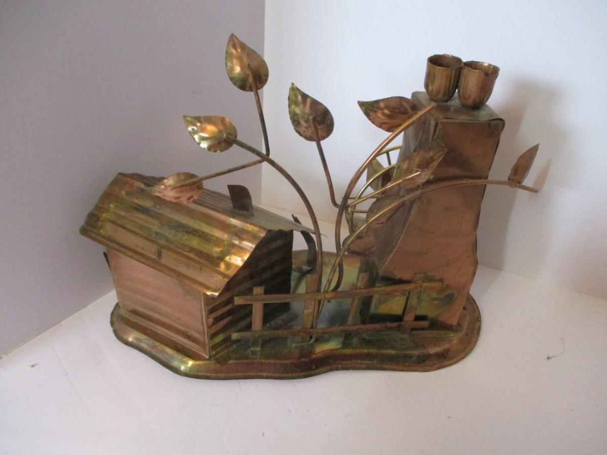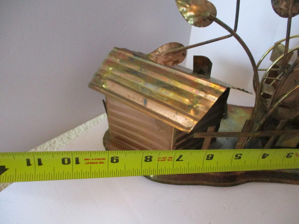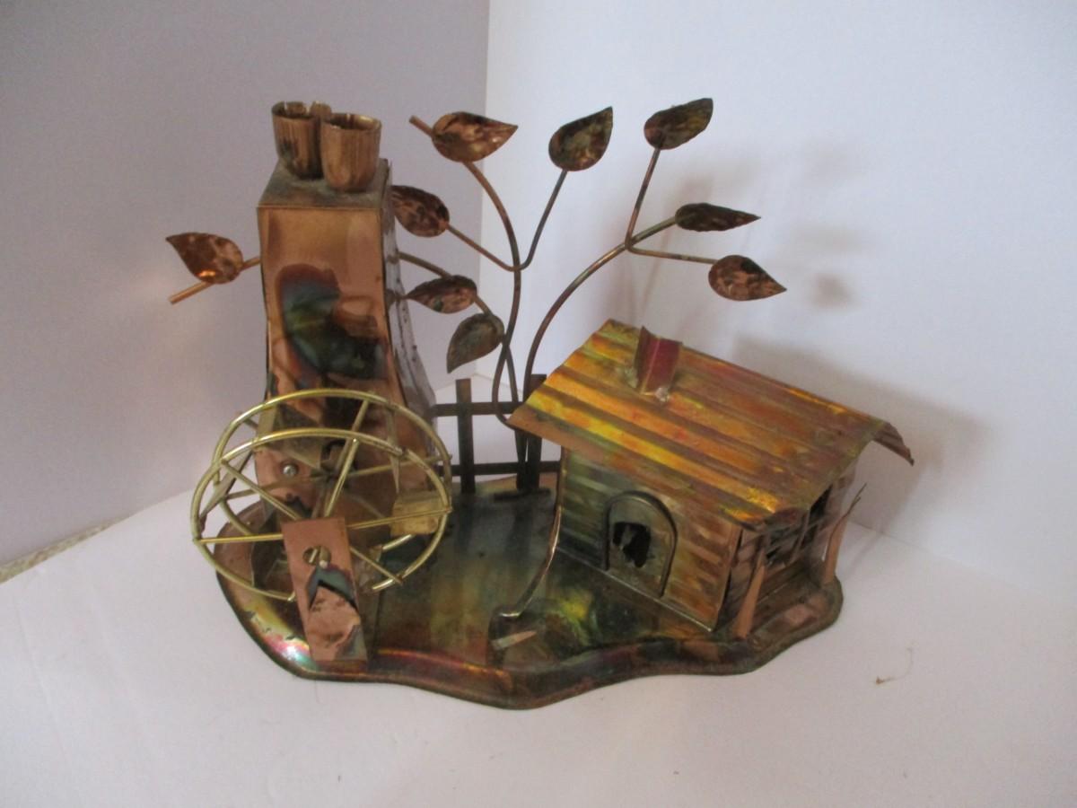 Vintage Copper Metal Barn Mill With Wheel & Music Box Made In Hong Kong