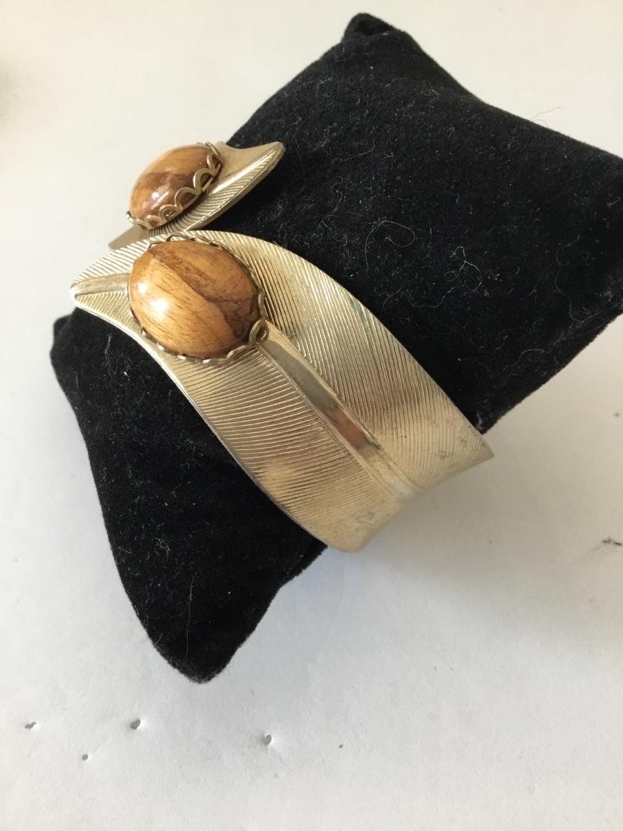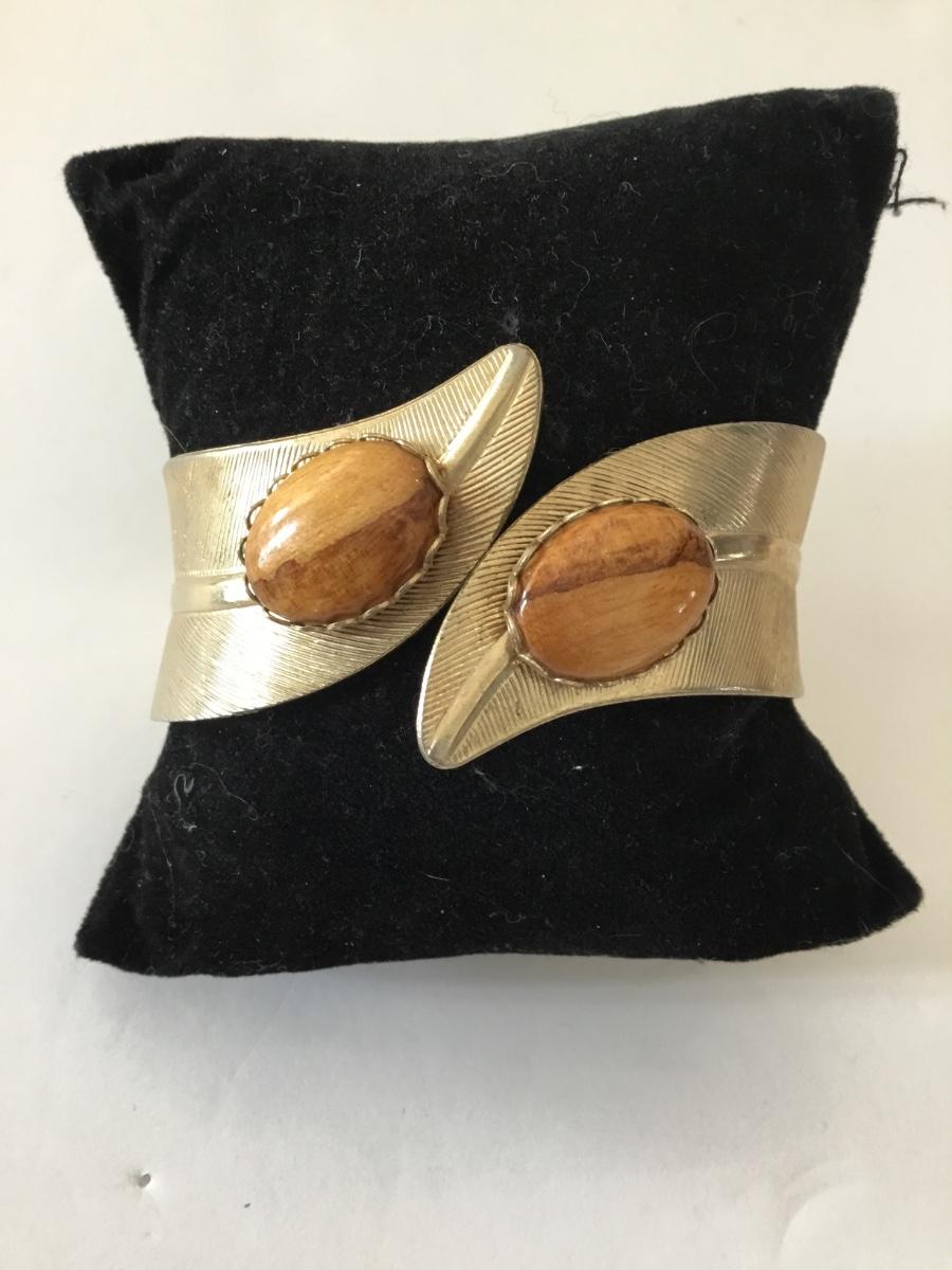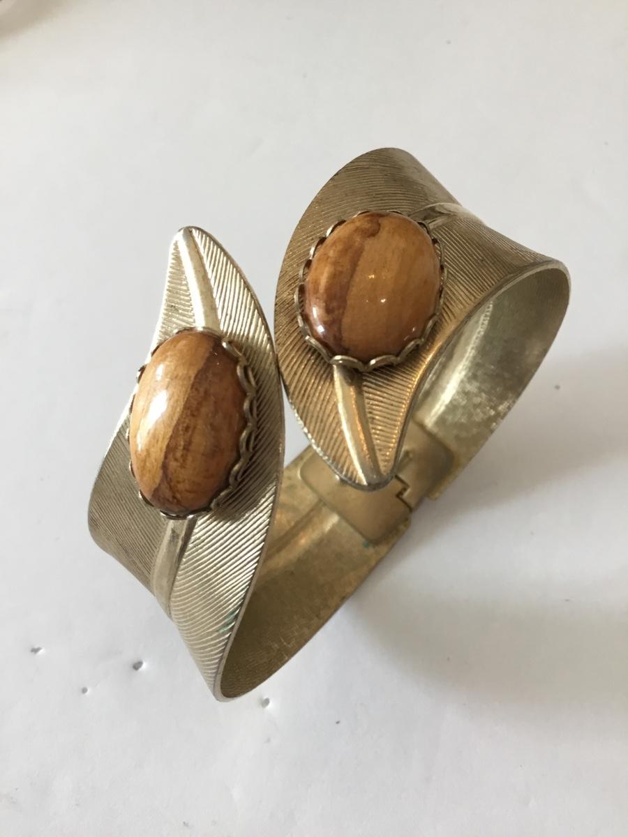 Vintage cuff bracelet, gold tone, brown cabochon bracelet