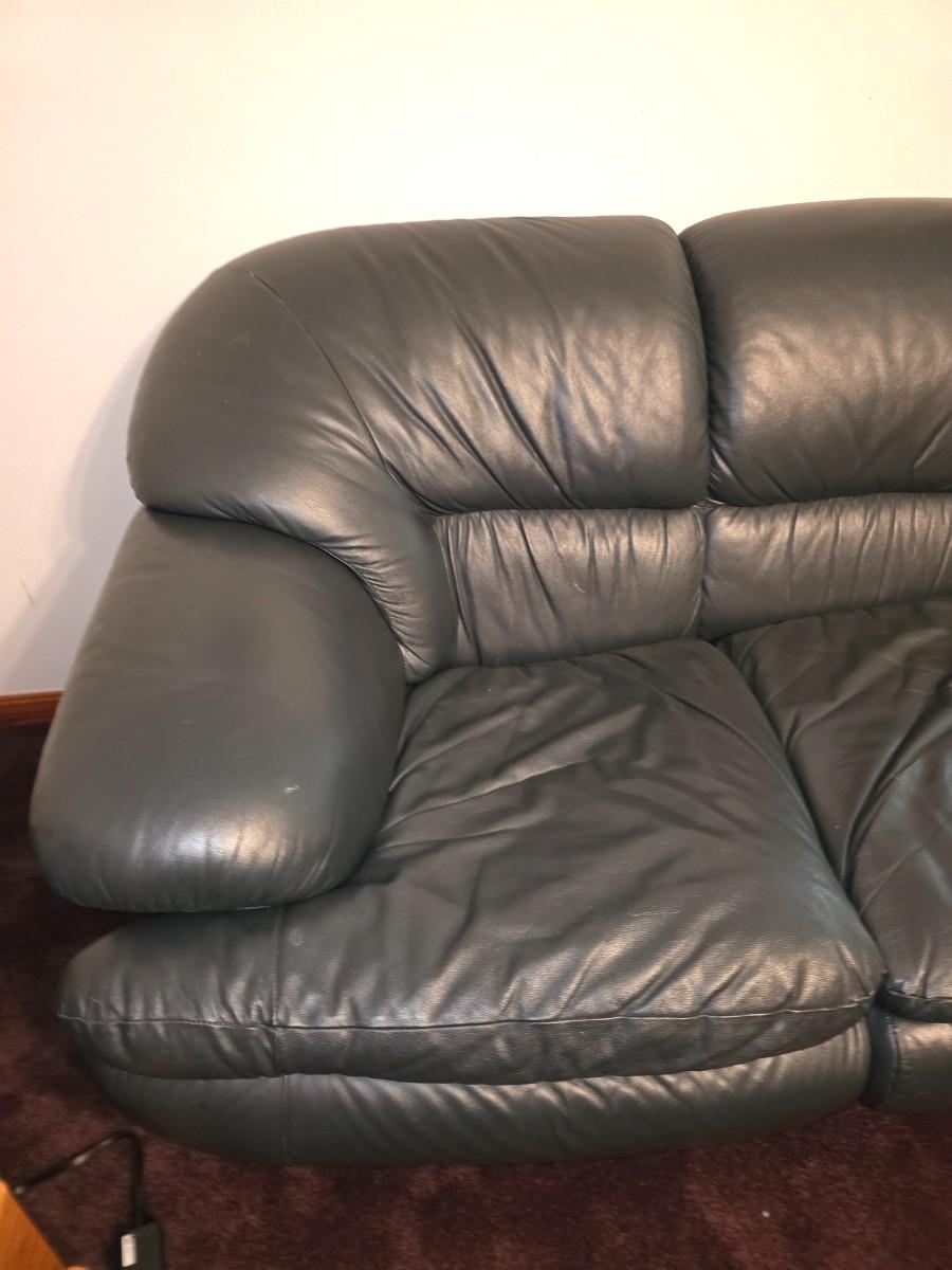 Vintage Deep Navy Blue Leather Sofa