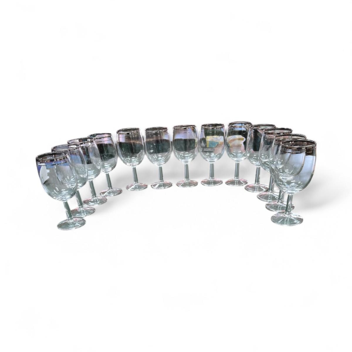 Vintage Dorothy Thorpe style Silver Rimmed Ombre Wine Glasses Set of 13 No Chips