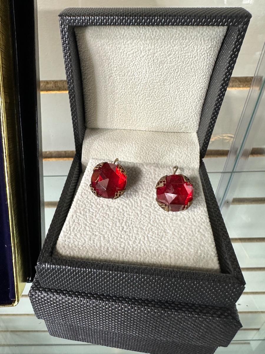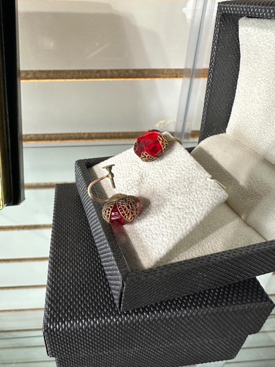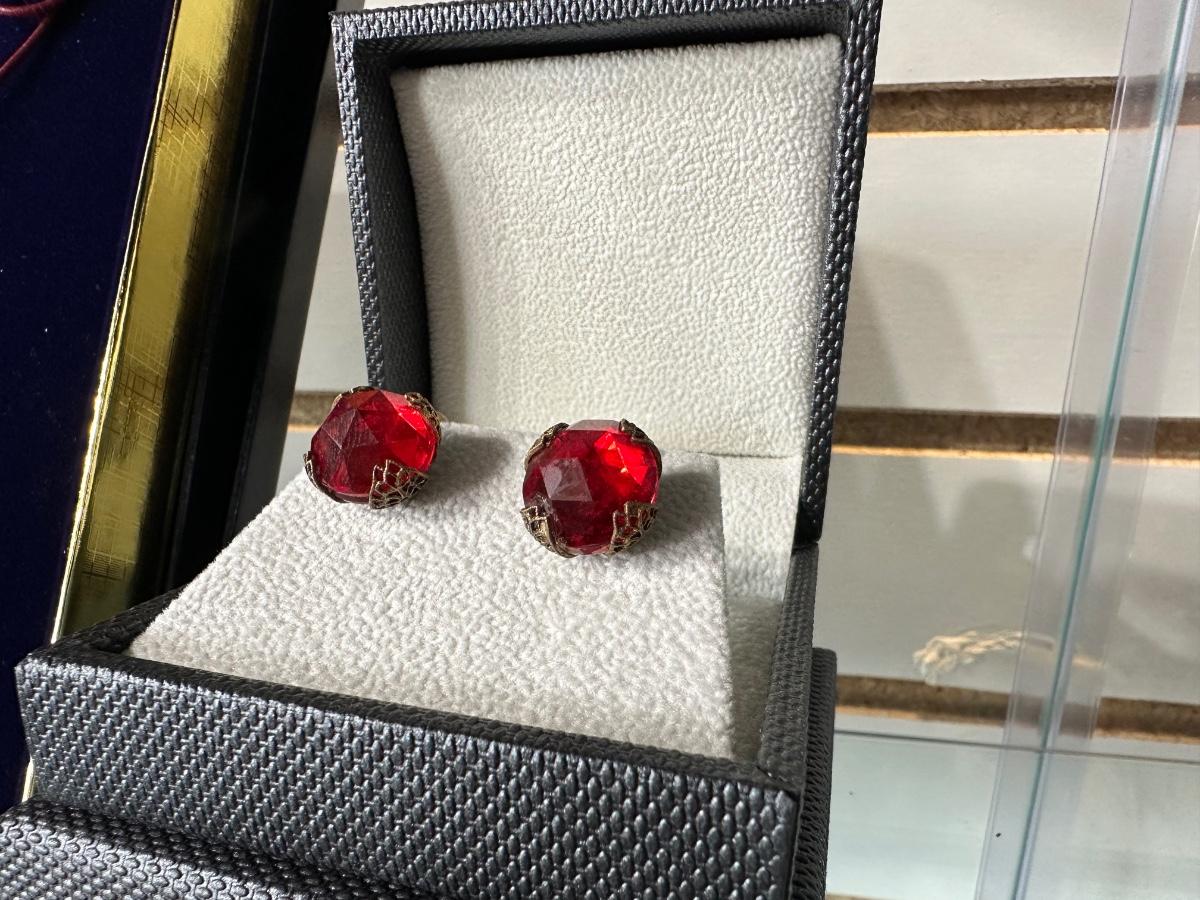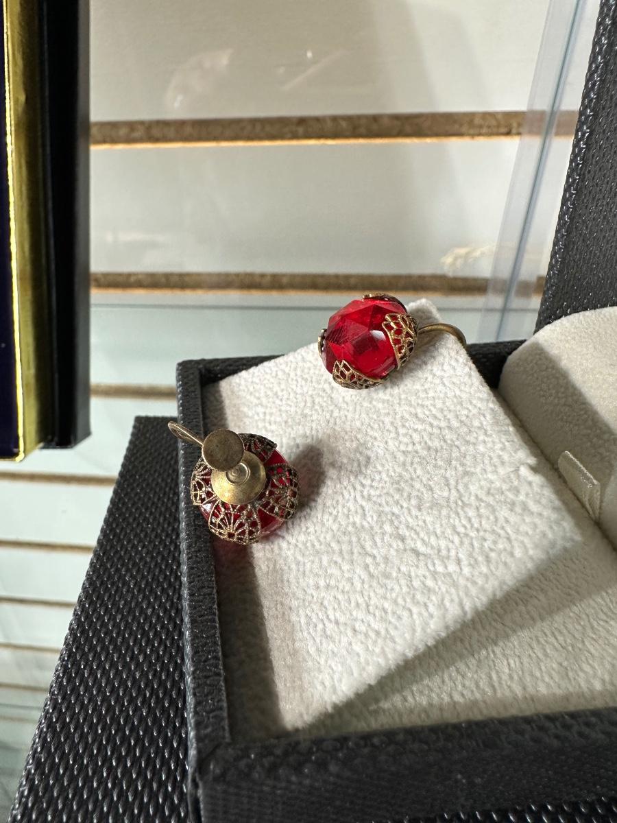 VINTAGE DUCKS PUFFY OVAL CLOISONNÉ ENAMEL NECKLACE AND VINTAGE RED GLASS TWIST SCREW ON EARRINGS