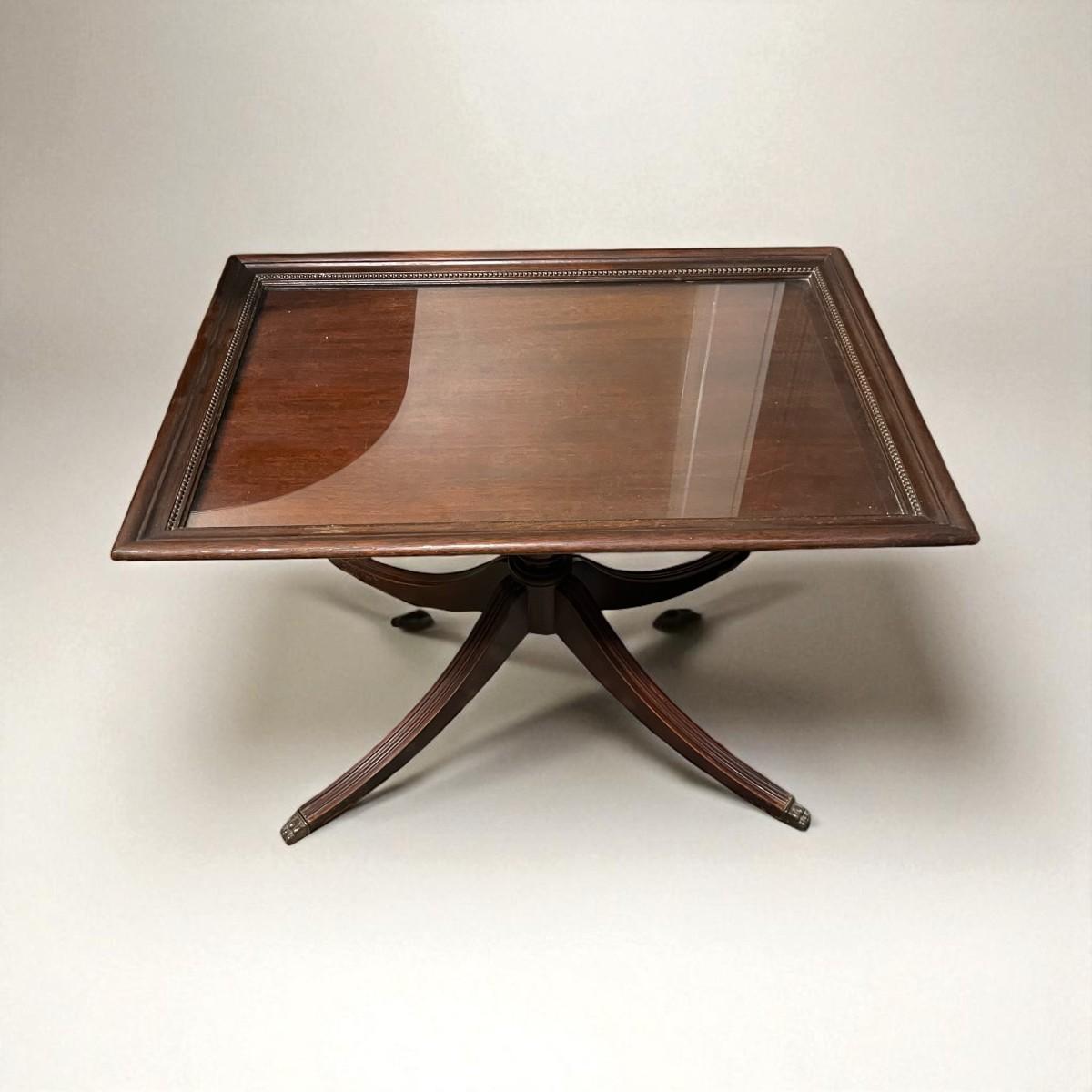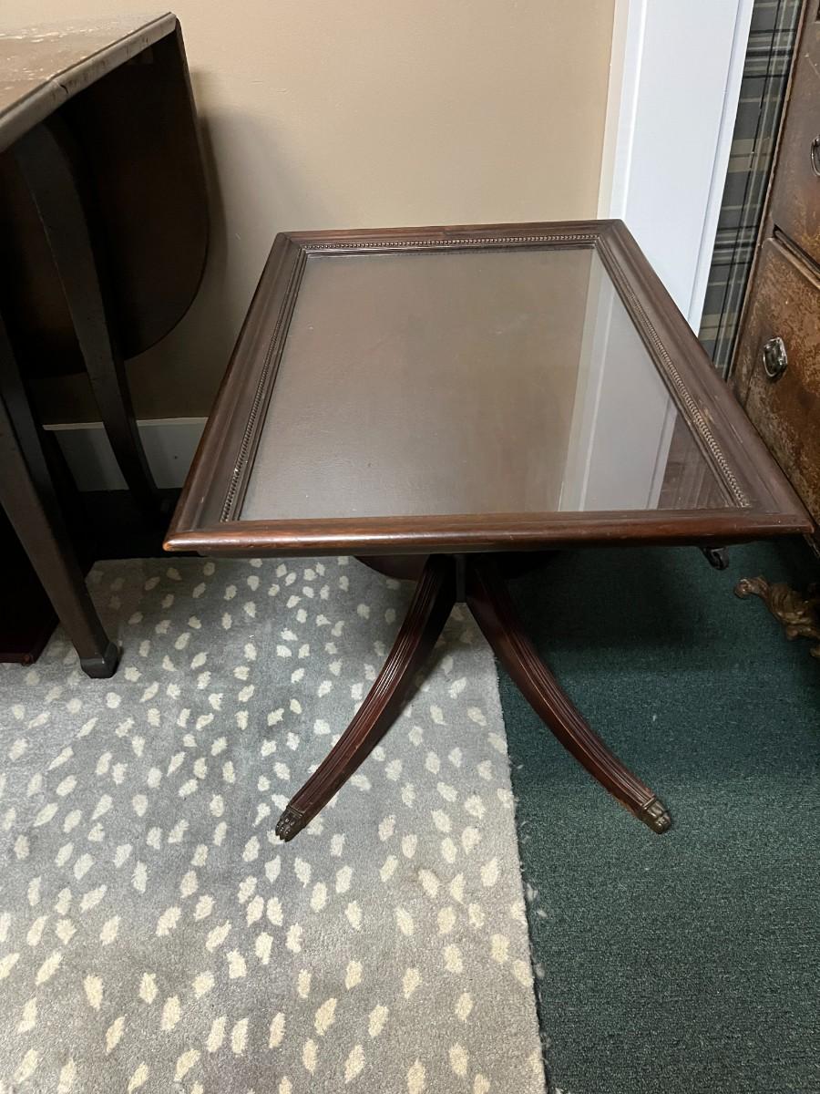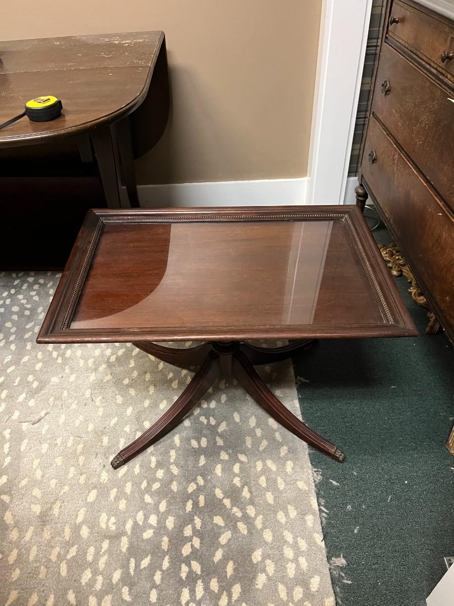 Vintage Duncan Phyfe Mahogany removeable Glass Top Table. minor scratches in the glass top