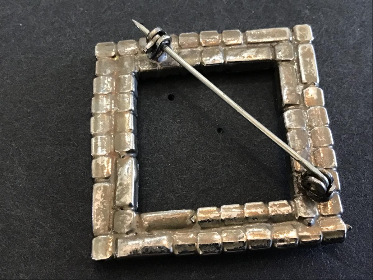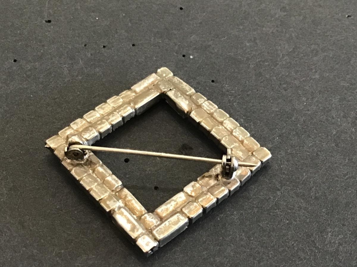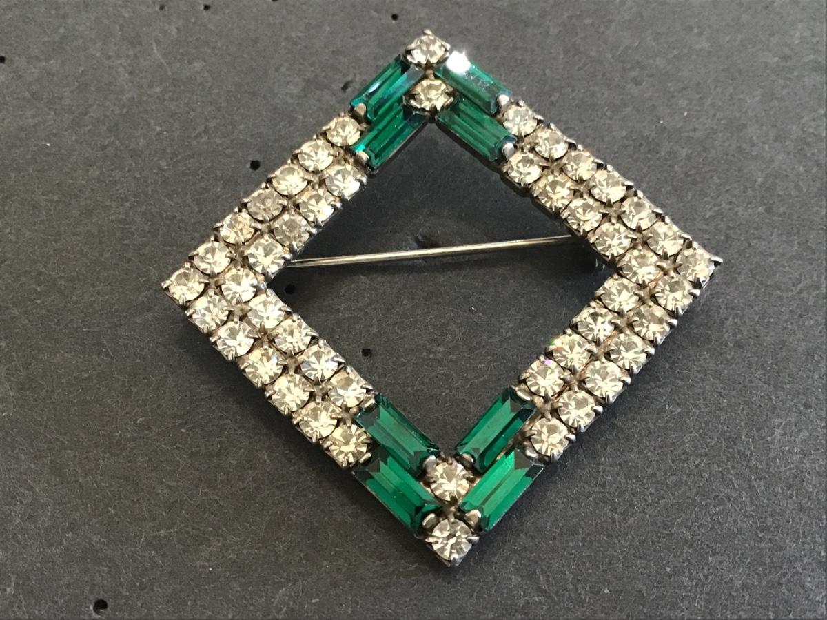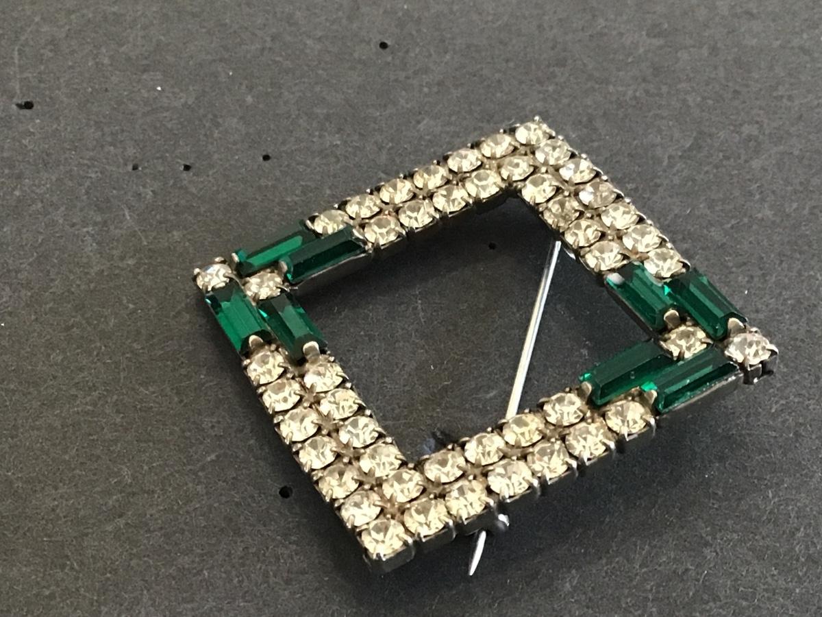 Vintage Emerald Green and Pave Rhinestone S Rectangular Vintage Brooch