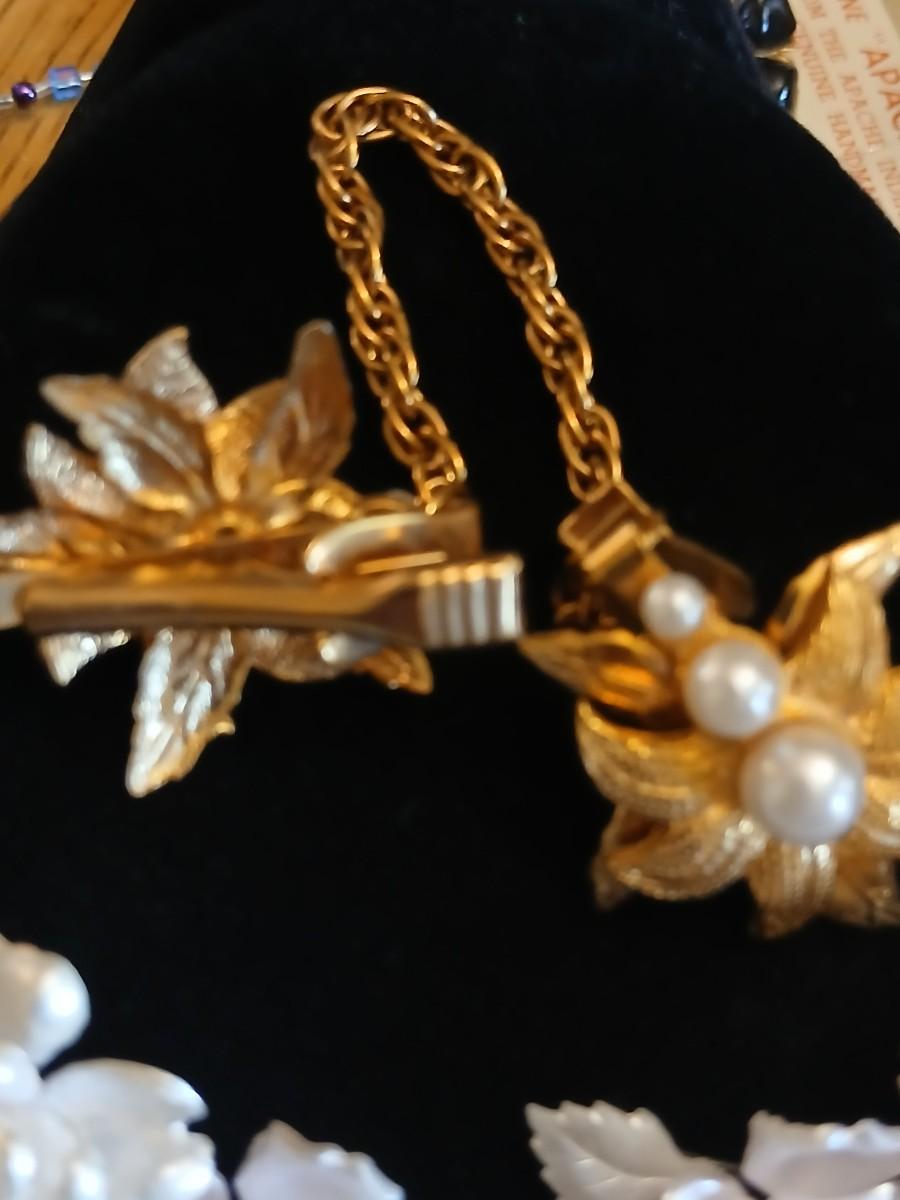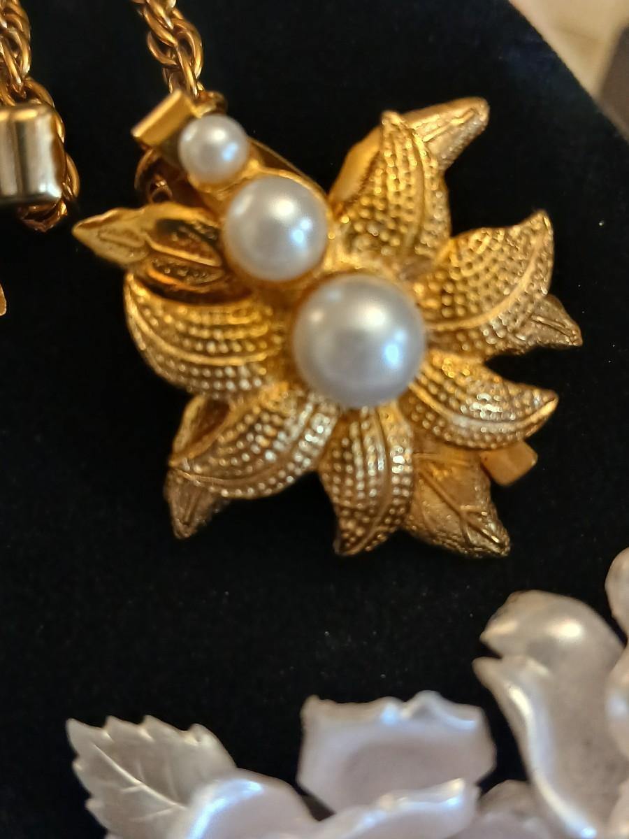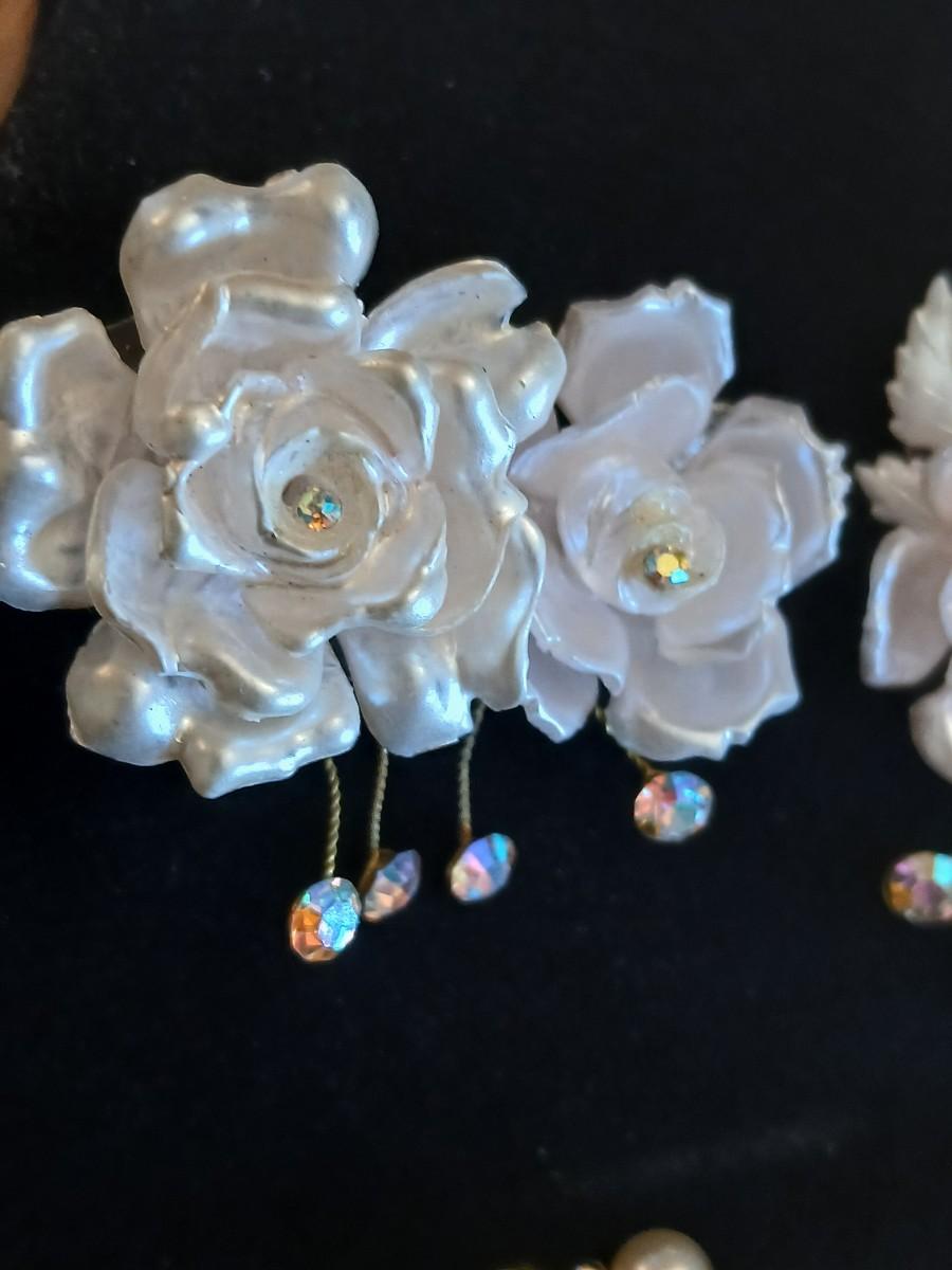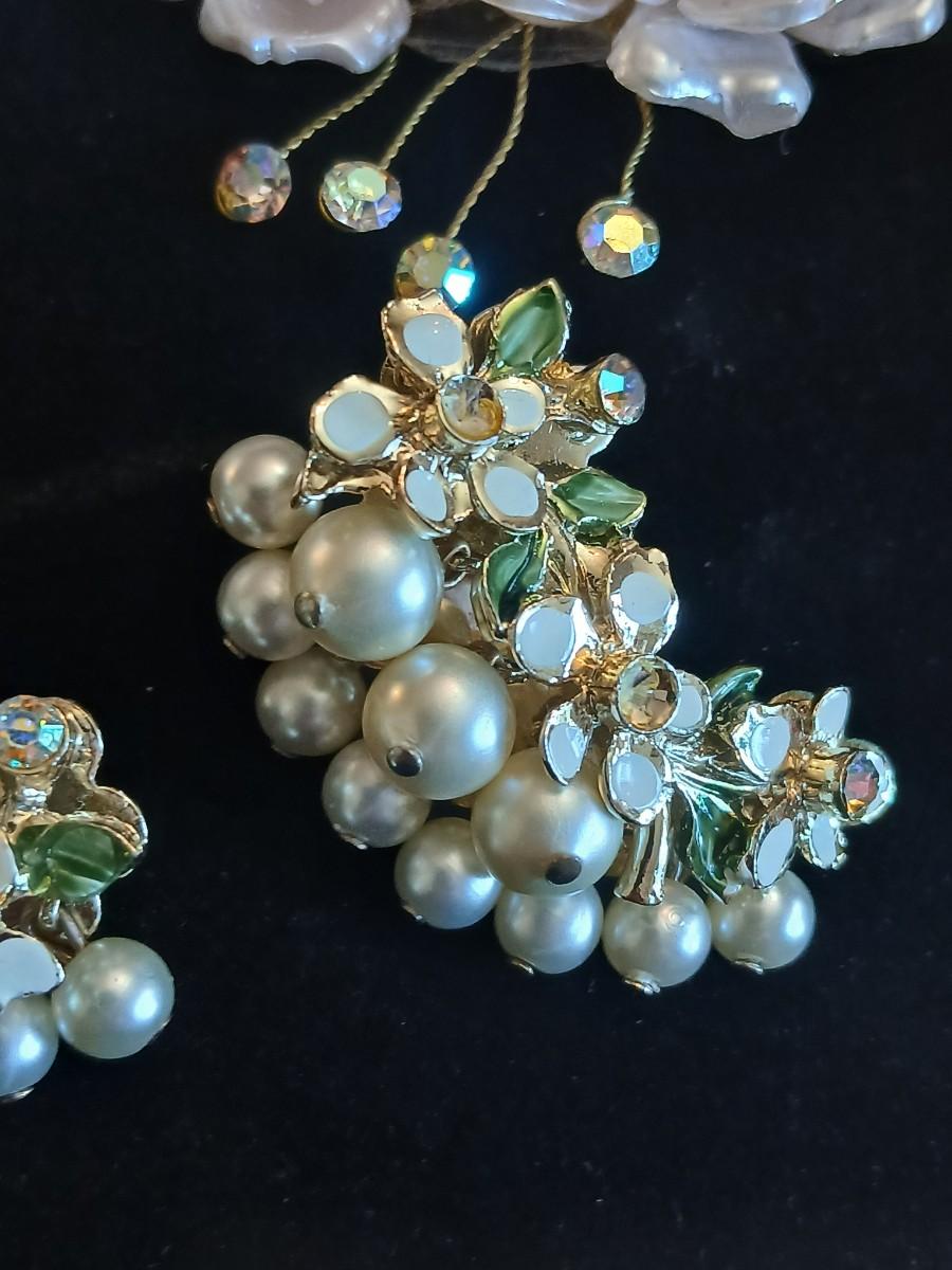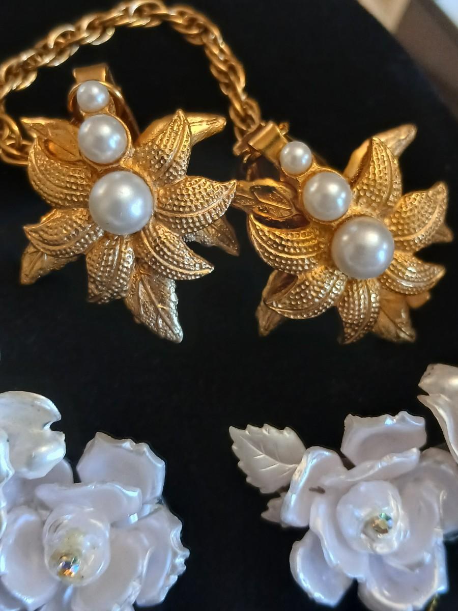 Vintage Floral Clip On Earrings- Acrylic rose with rhinestones -Faux Pearl, Crystal, Enamel and sweater guard clips