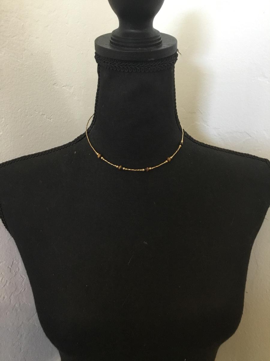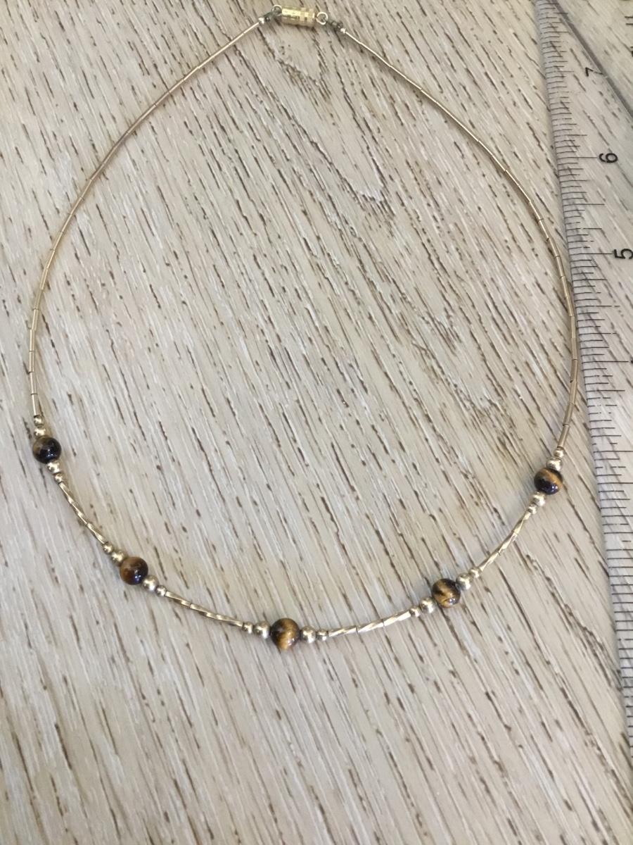Vintage, gold tone, liquid silver in Tiger‘s eye, dainty necklace with barrel clasp