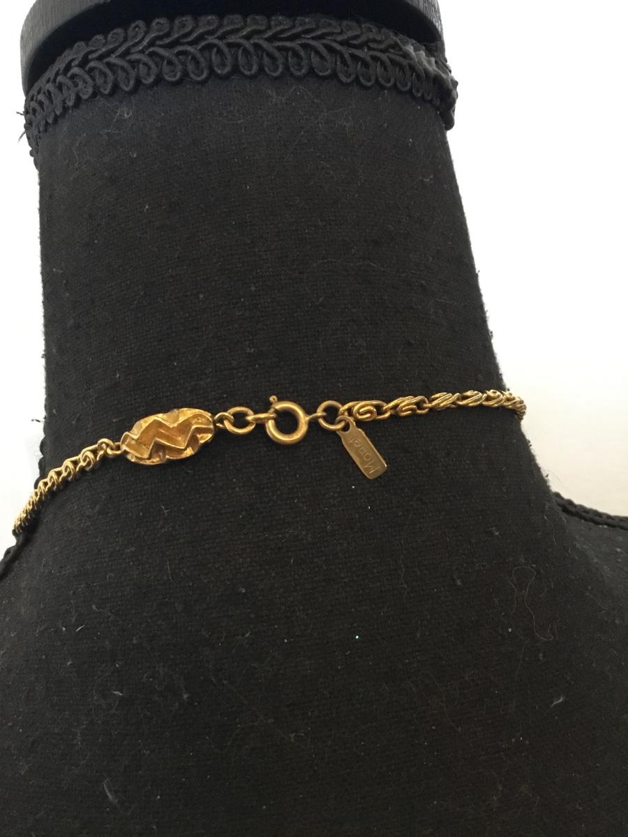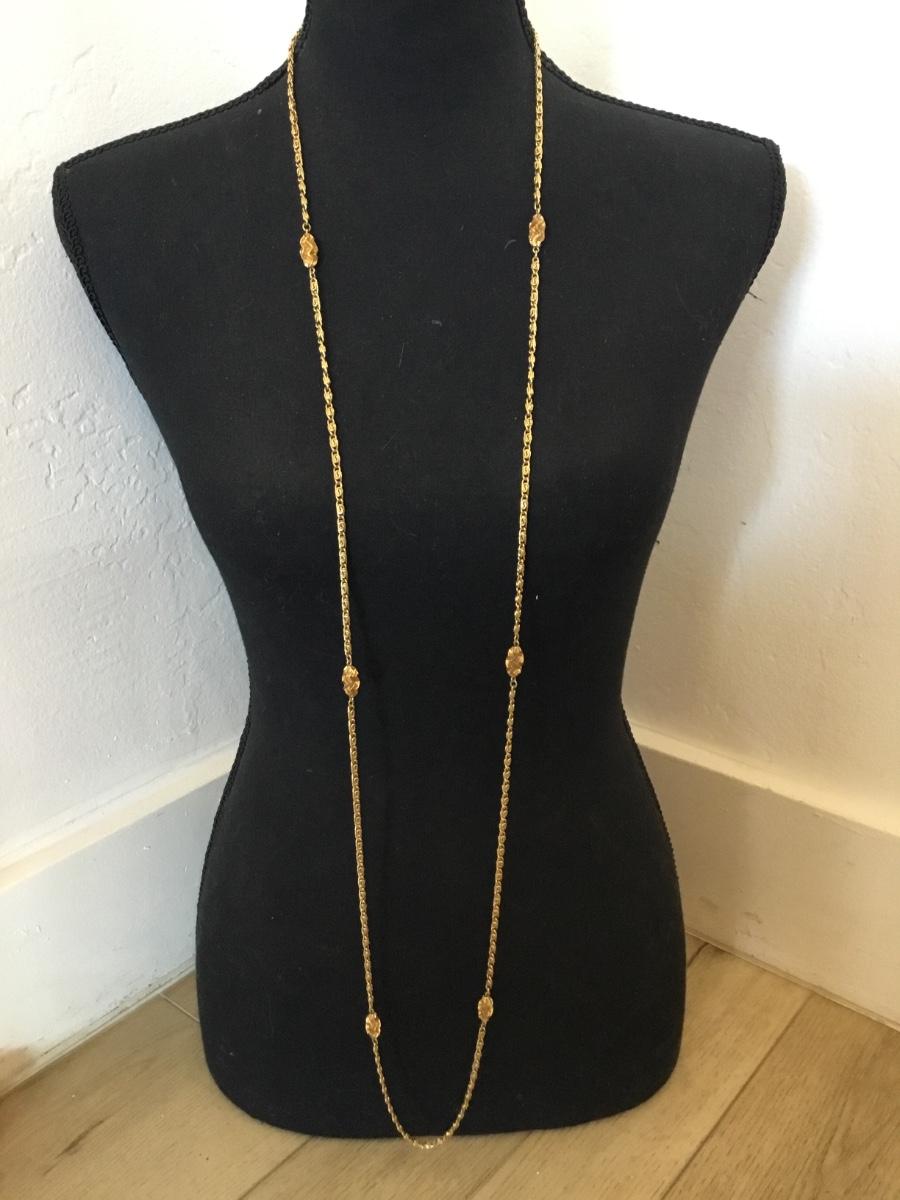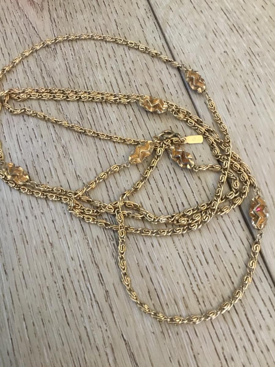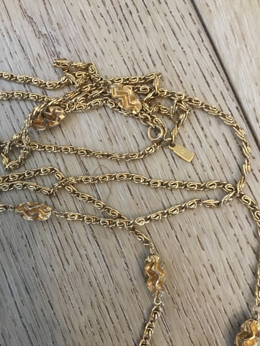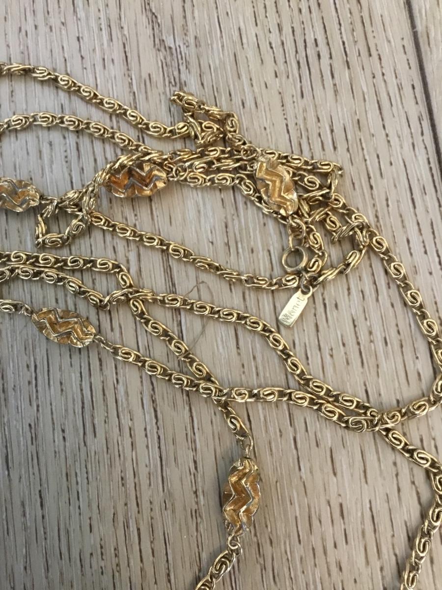 Vintage, gold tone, Monet chain with metal chevron bead, long chain necklace