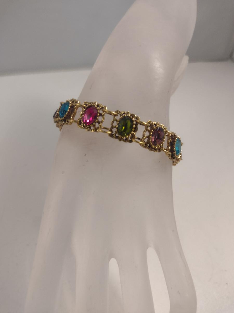 Vintage Goldette NY Multicolor and Gold Tone Bracelet (#56)