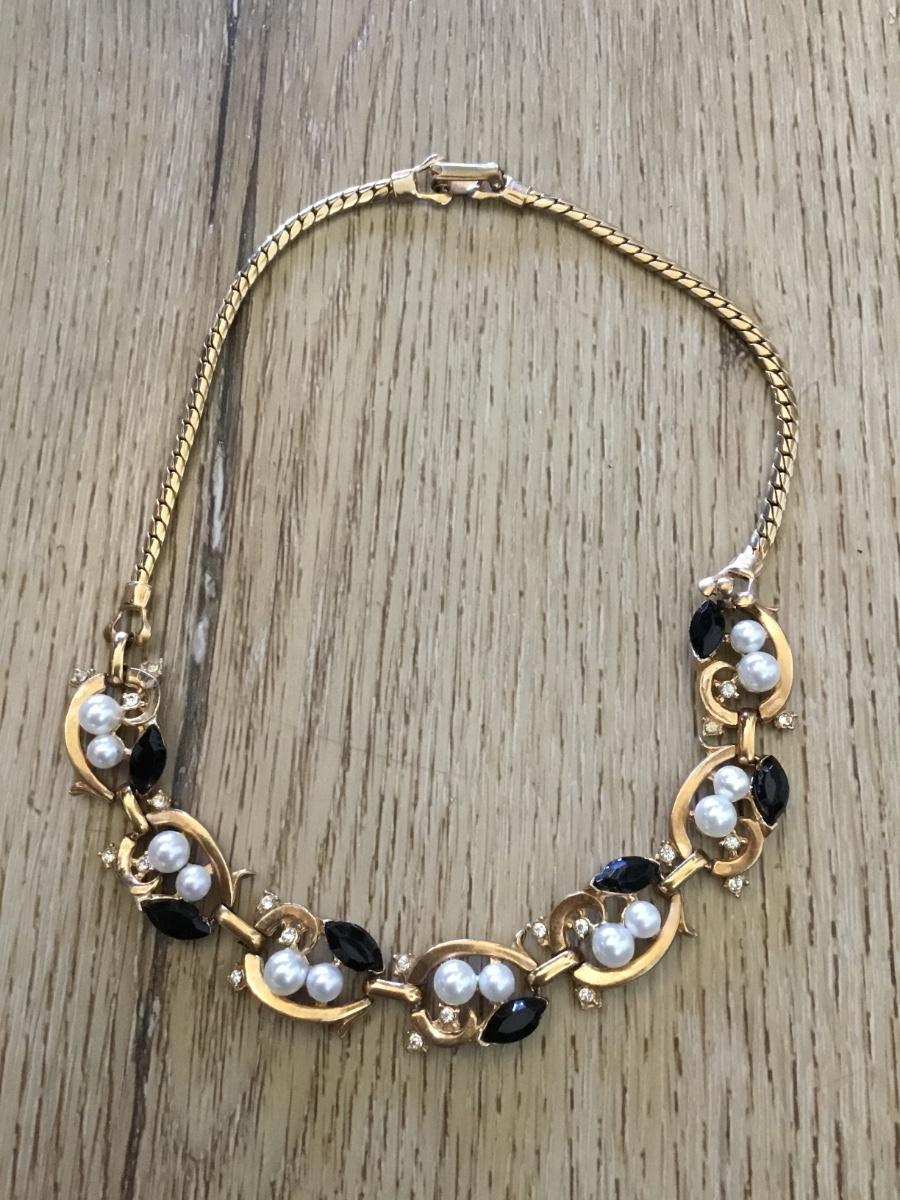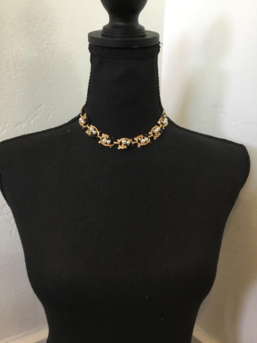 Vintage goldtone, faux, pearl collar necklace