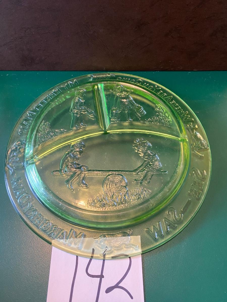 Vintage Uranium Green Children’s Tri Sectional Plate