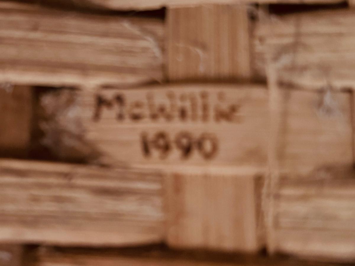 VINTAGE HANDWOVEN SPLIT OAK BASKET 1990 SIGNED McWillie 12' tall 18" wide