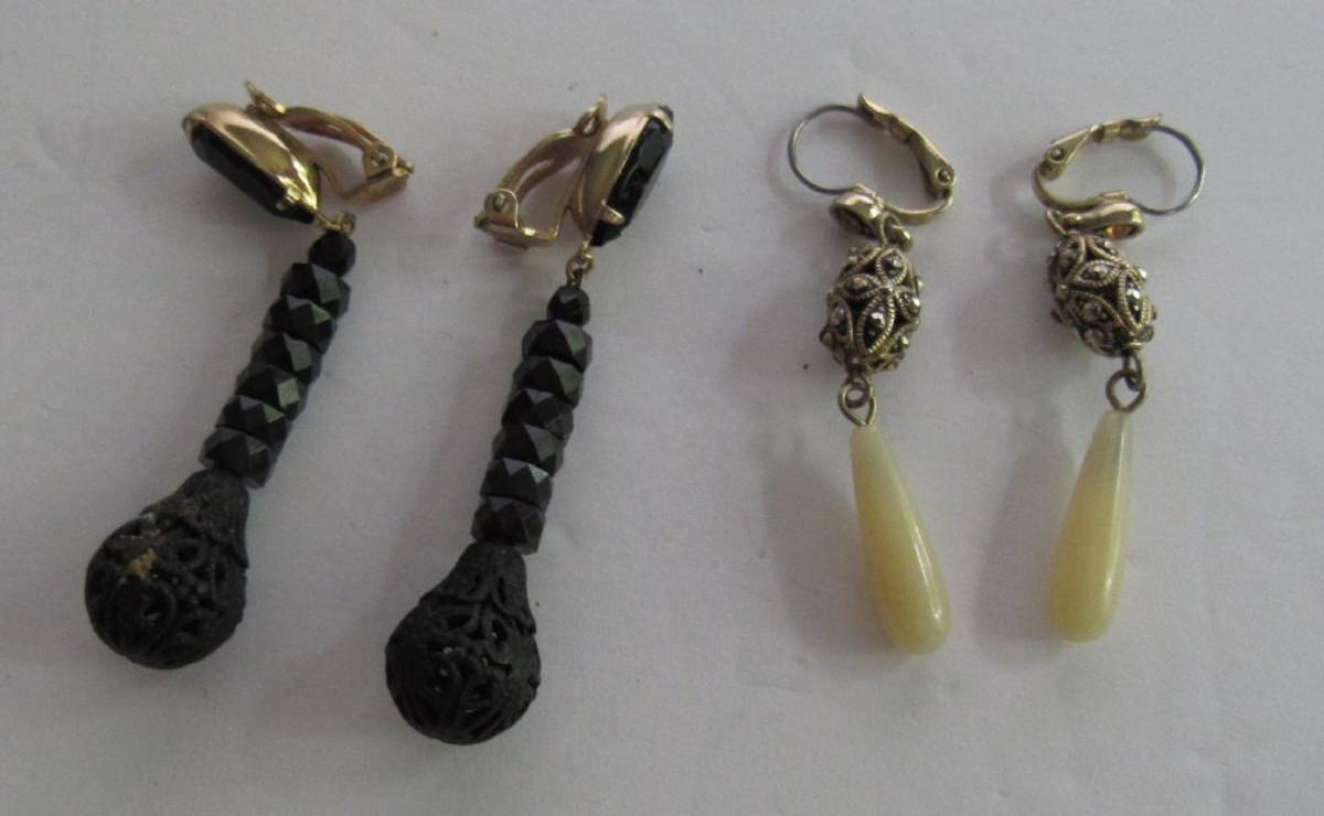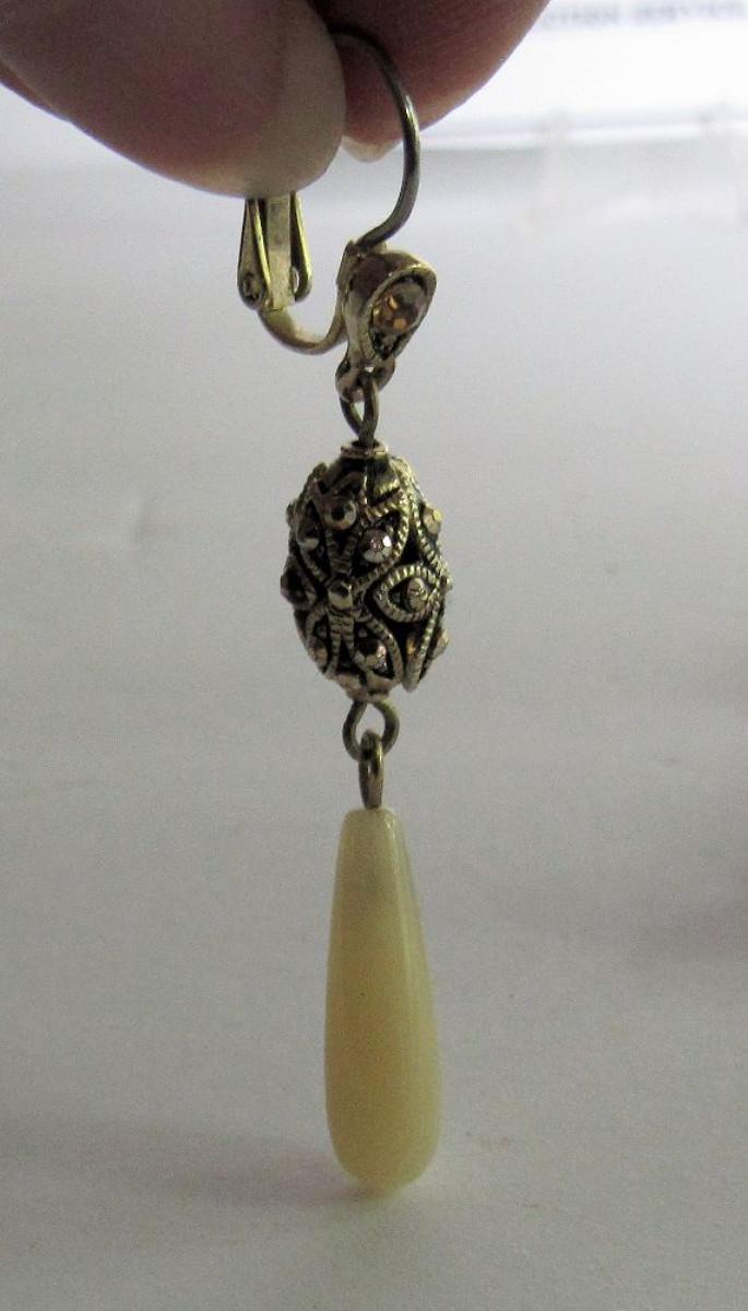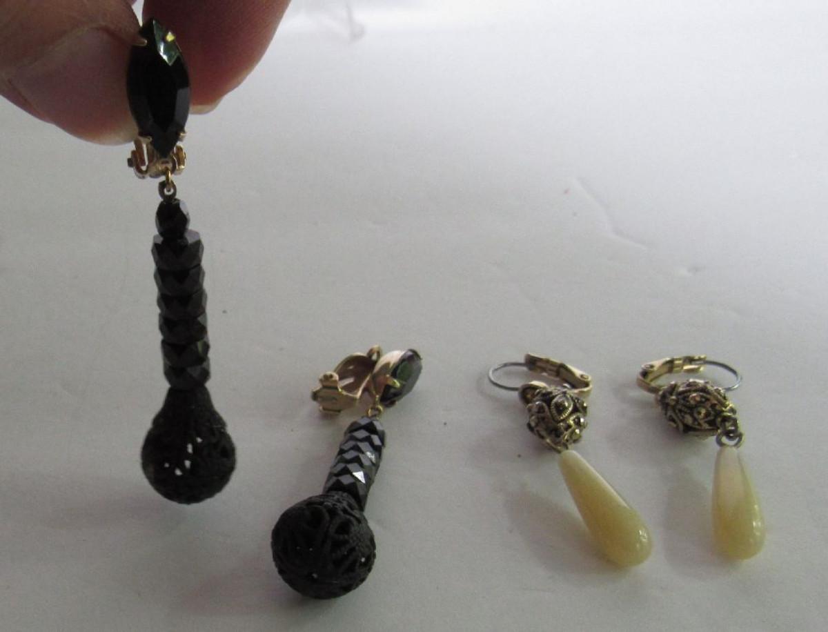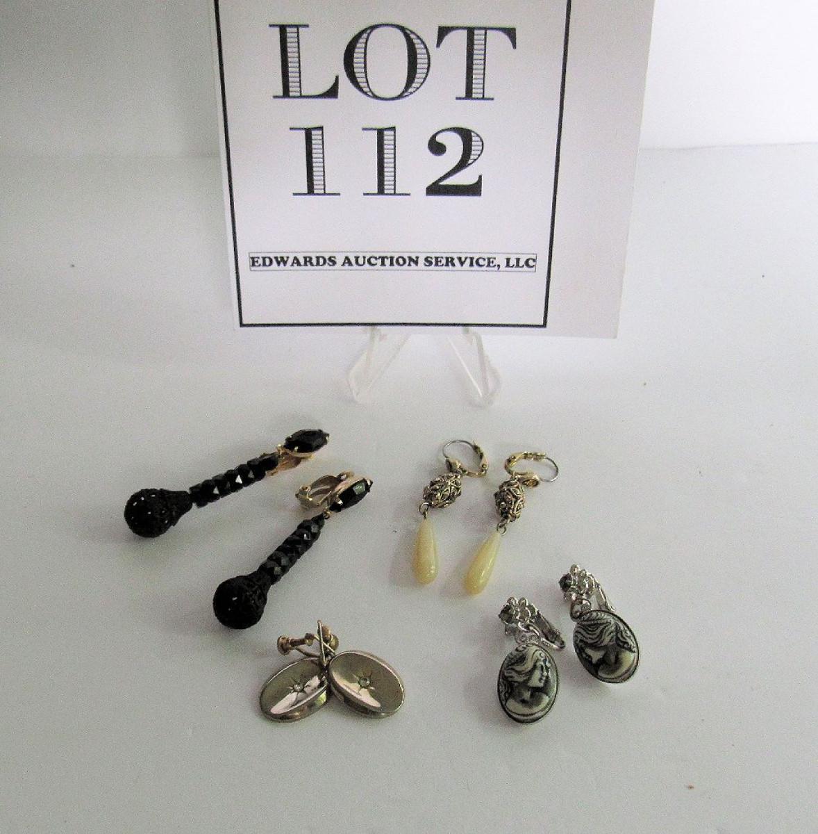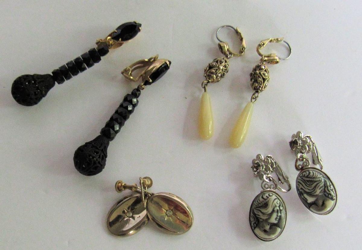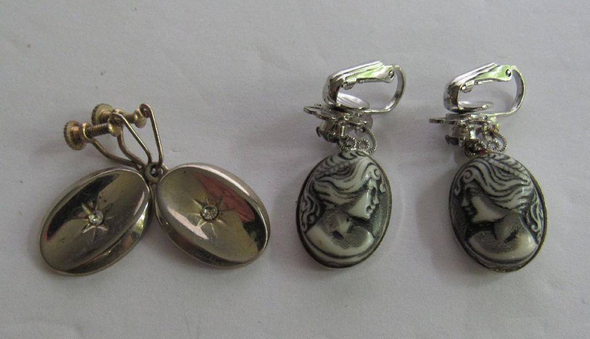 The black ones are marked Lewis Segal of CA. The black finish is coming off on one earring. looks like just paint that can be repainted. Otherwise good. The cameos appear to be some kind of plastic. Shipping is available at shipping cost plus $5.00 handling fee on one box, $10.00 handling fee on two boxes, $15.00 handling fee on 3 boxes. Helps cover shipping materials and labor cost.