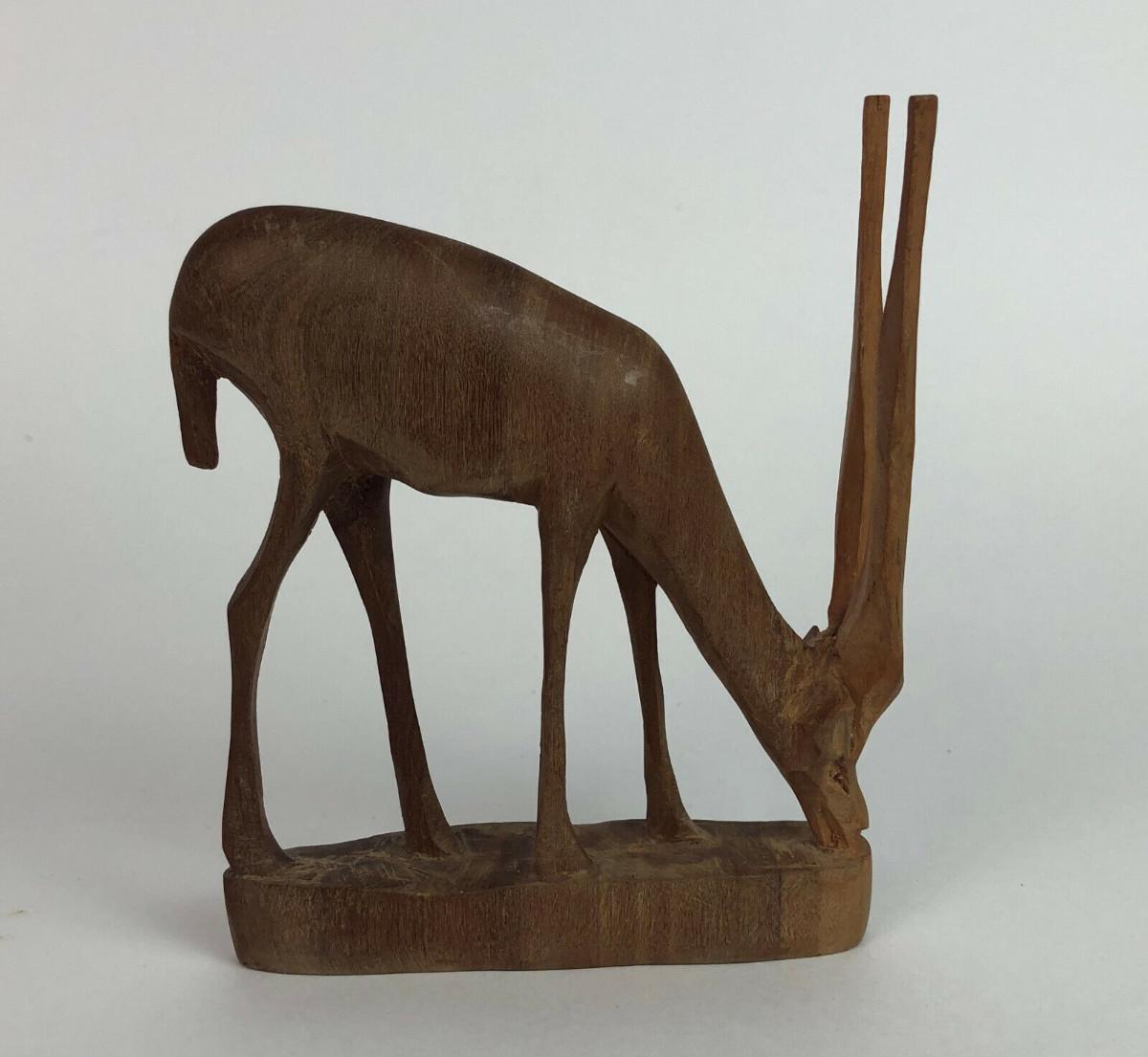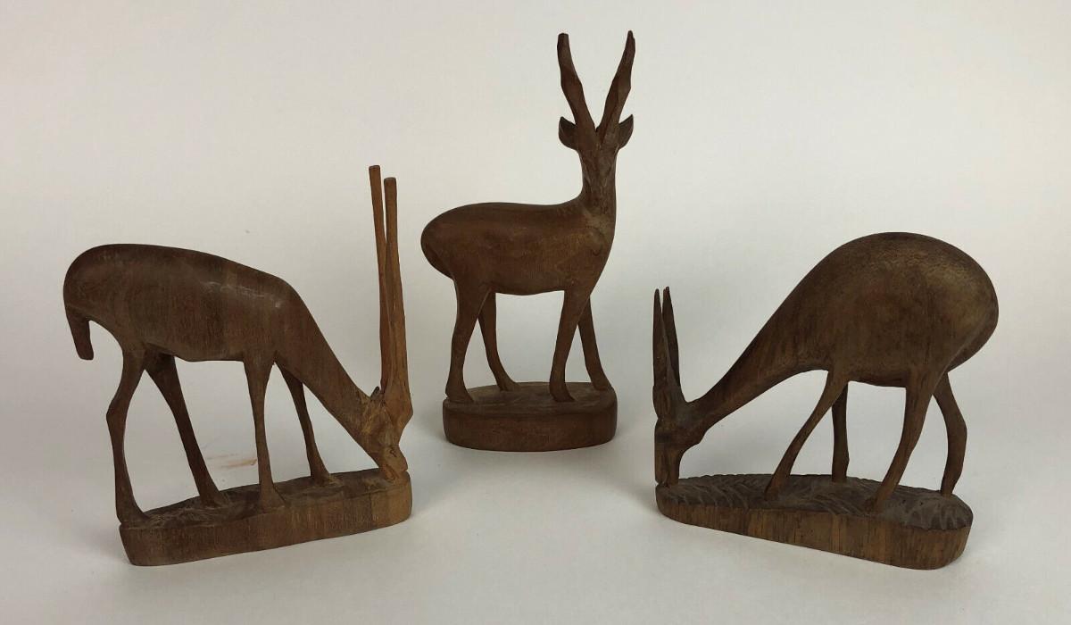 vintage KENYAN AFRICAN HAND CARVED WOOD ANTELOPE FIGURES