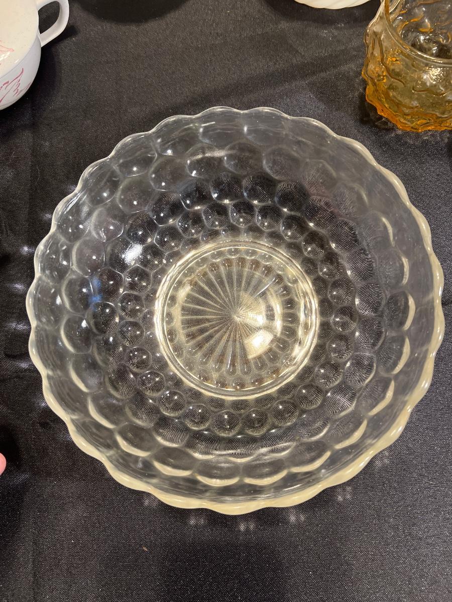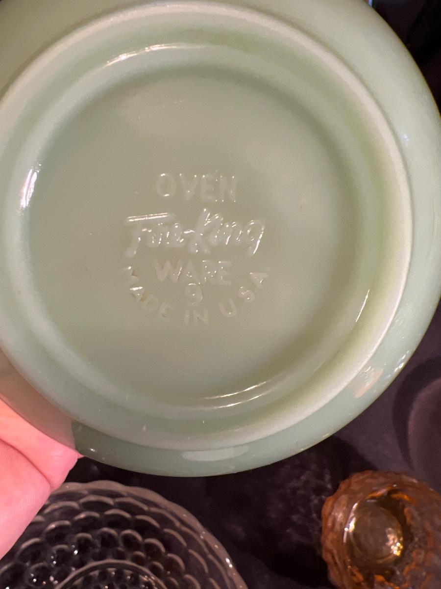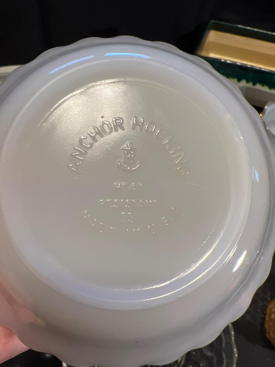 4 pieces of vintage Fire King glass (2 bowls and 2 cups. An Anchor Hocking bowl. 4 quart CorningWare oval bowl. Vintage Sugar bowl. Vintage cups. 2 Vases and a ceramic planter.