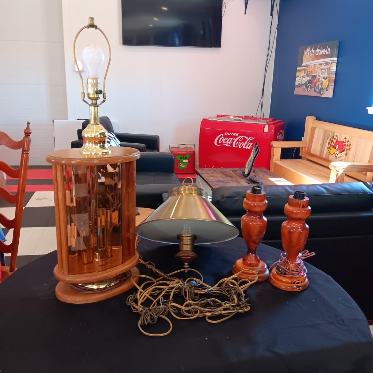 VINTAGE LAMPS AND HANGING LIGHT WITH CHAIN