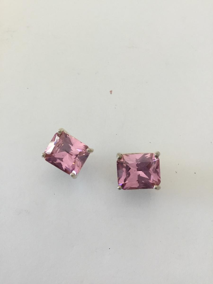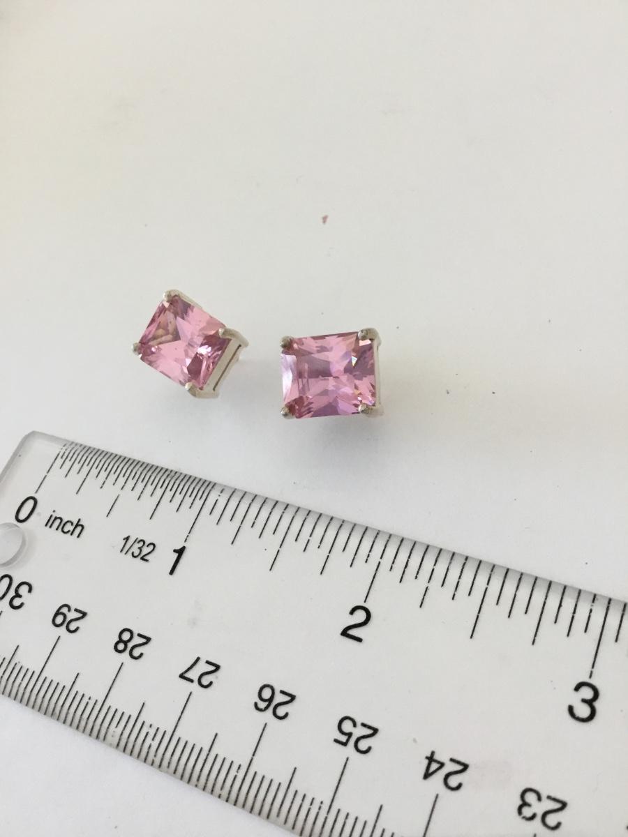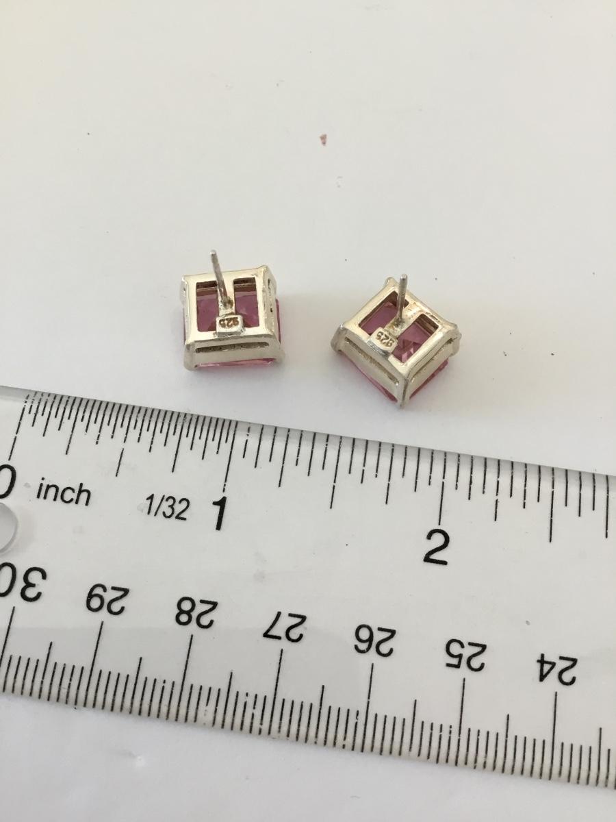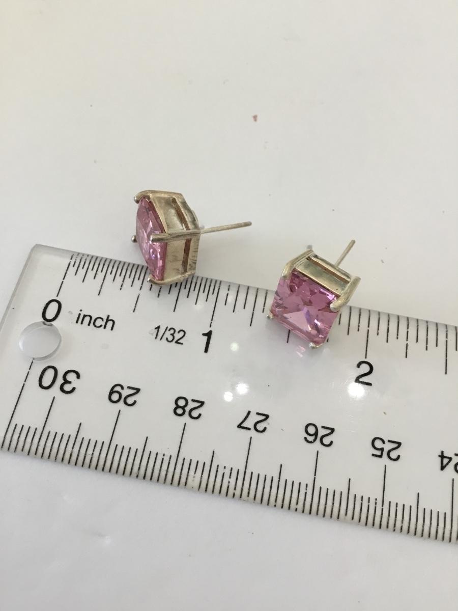 Vintage, large, chunky 925 sterling, silver square pink crystal stud earrings