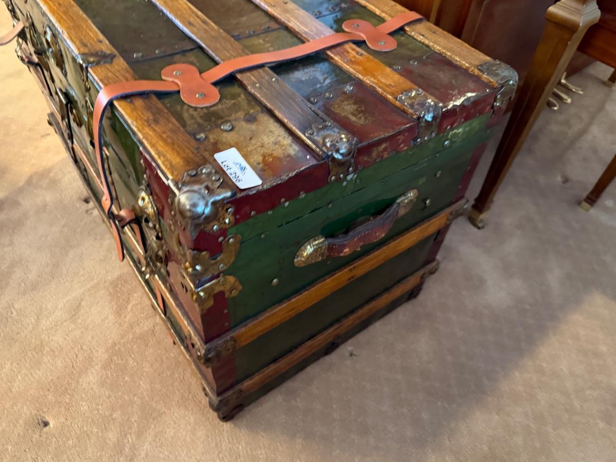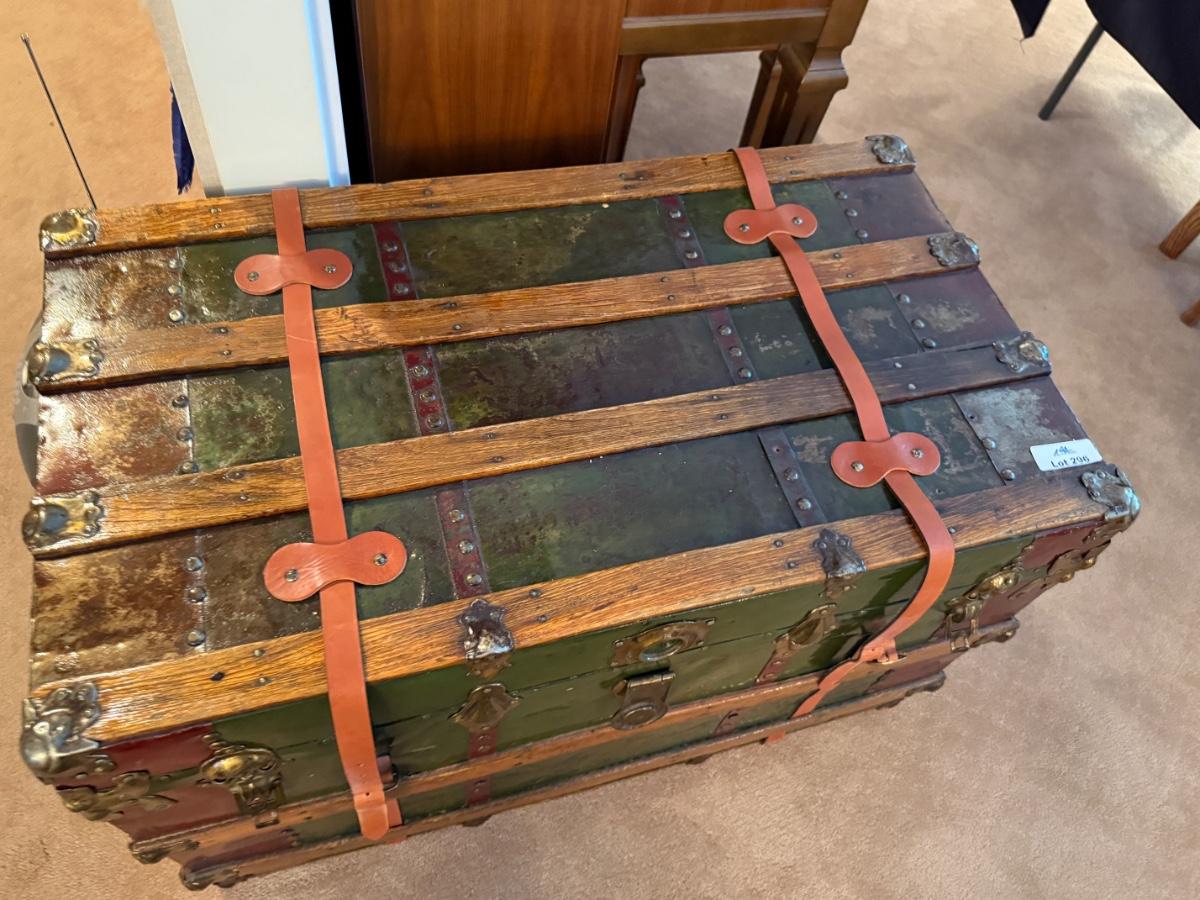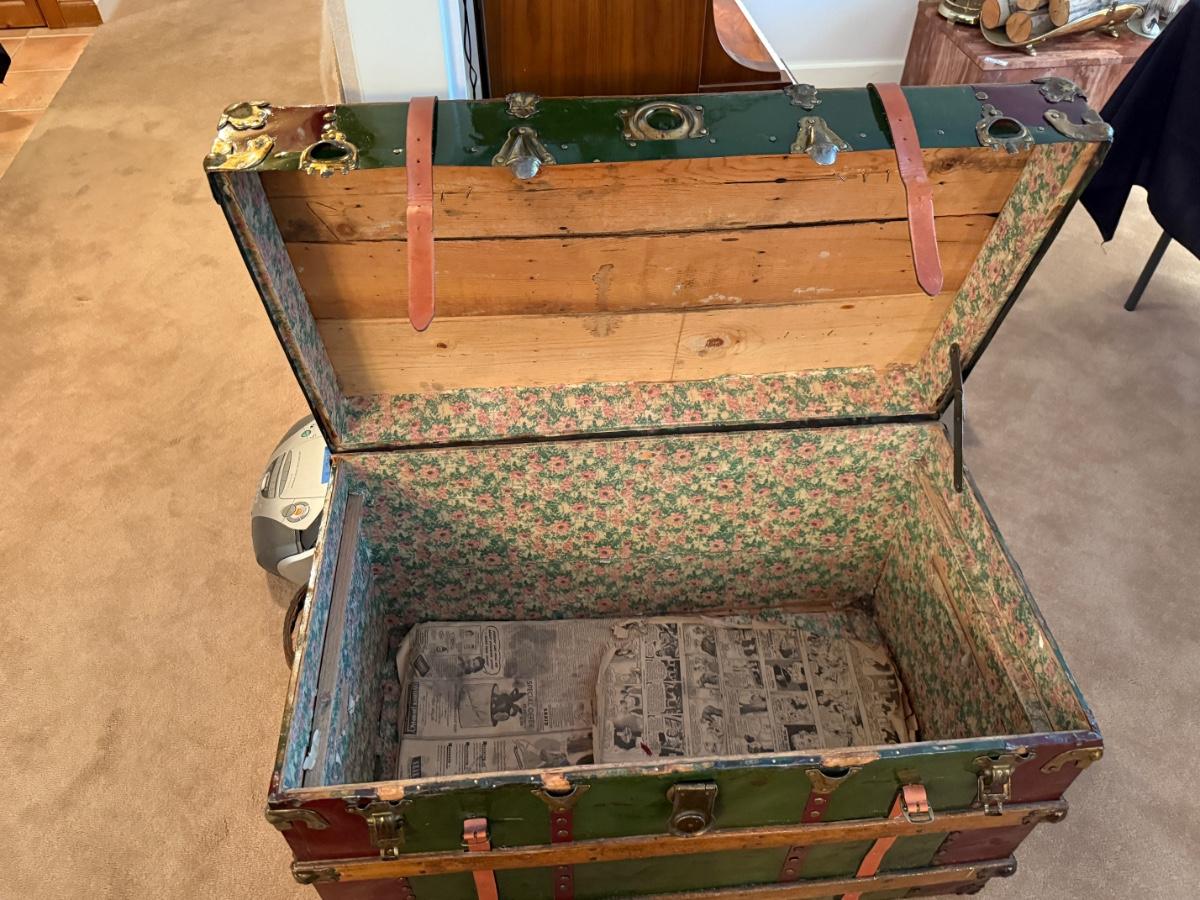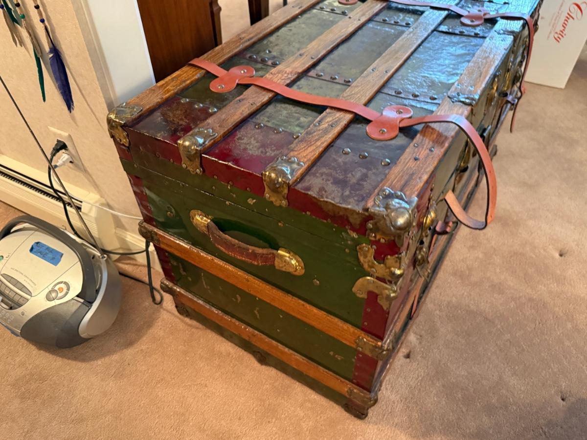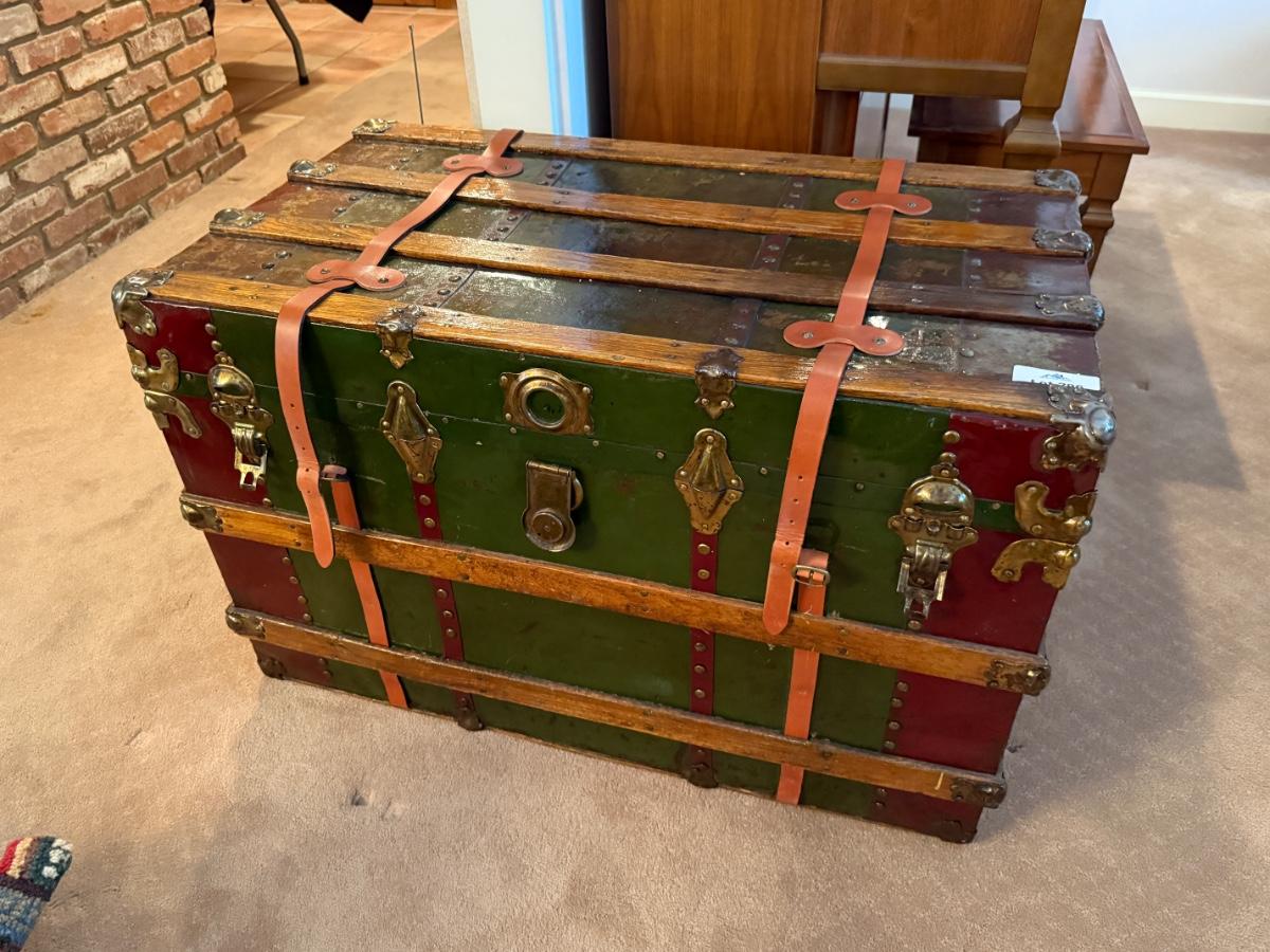 Vintage large wood & metal lacquered trunk
