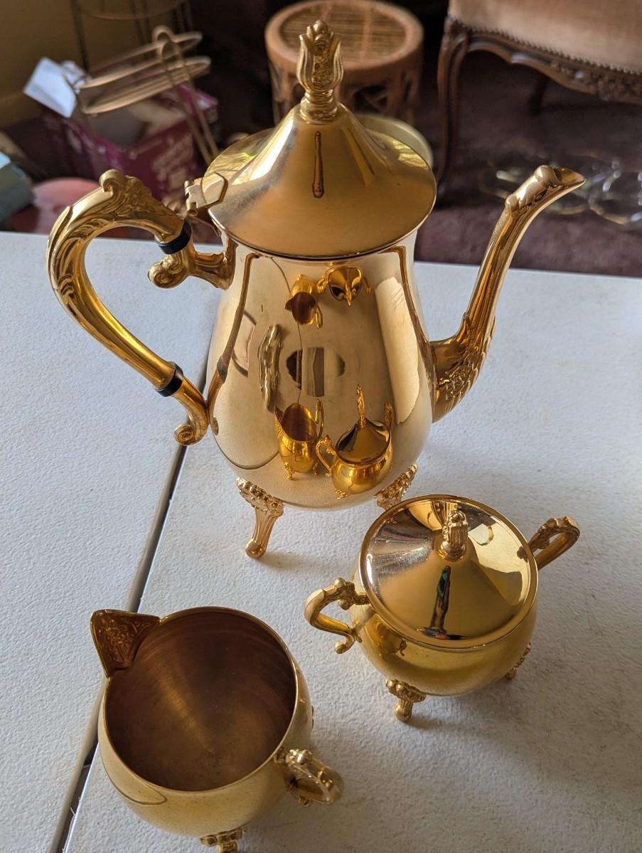 Vintage Leonard Gold Plated Made In Hong Kong 4 Piece Tea Set
