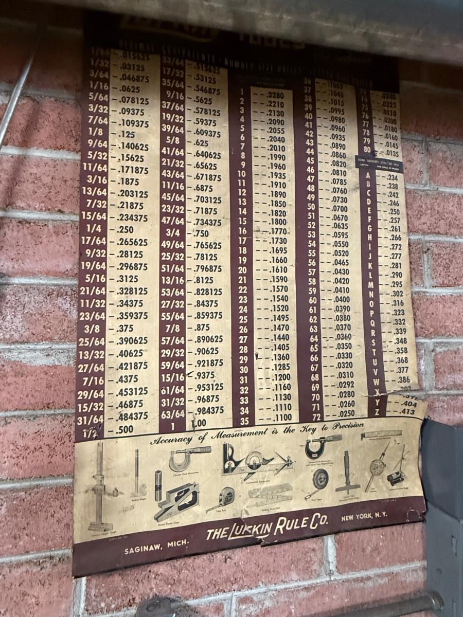 2 Vintage Machinists Posters / Sizing Charts one from Lurkin Rule Co.