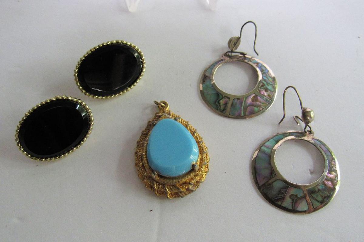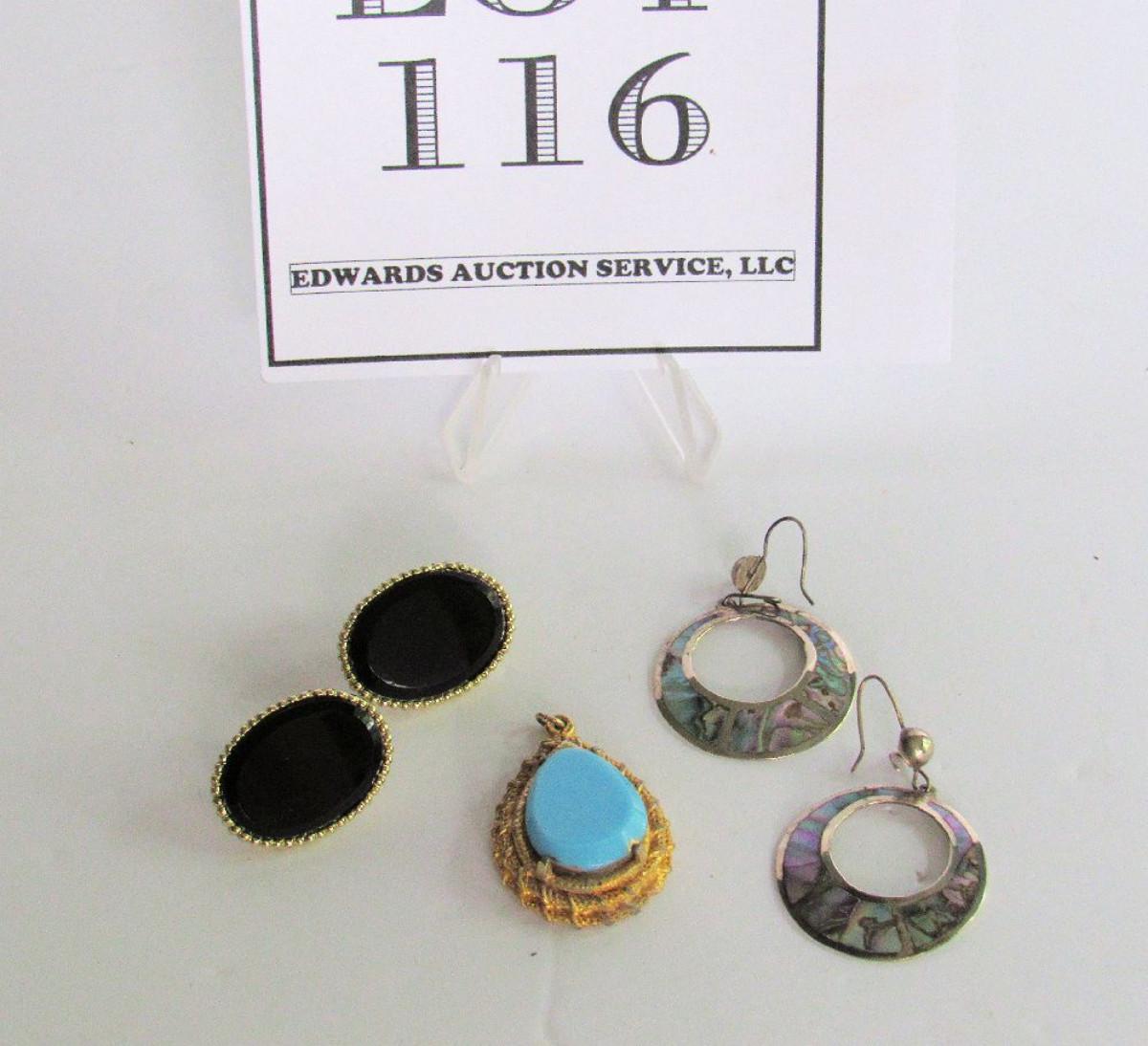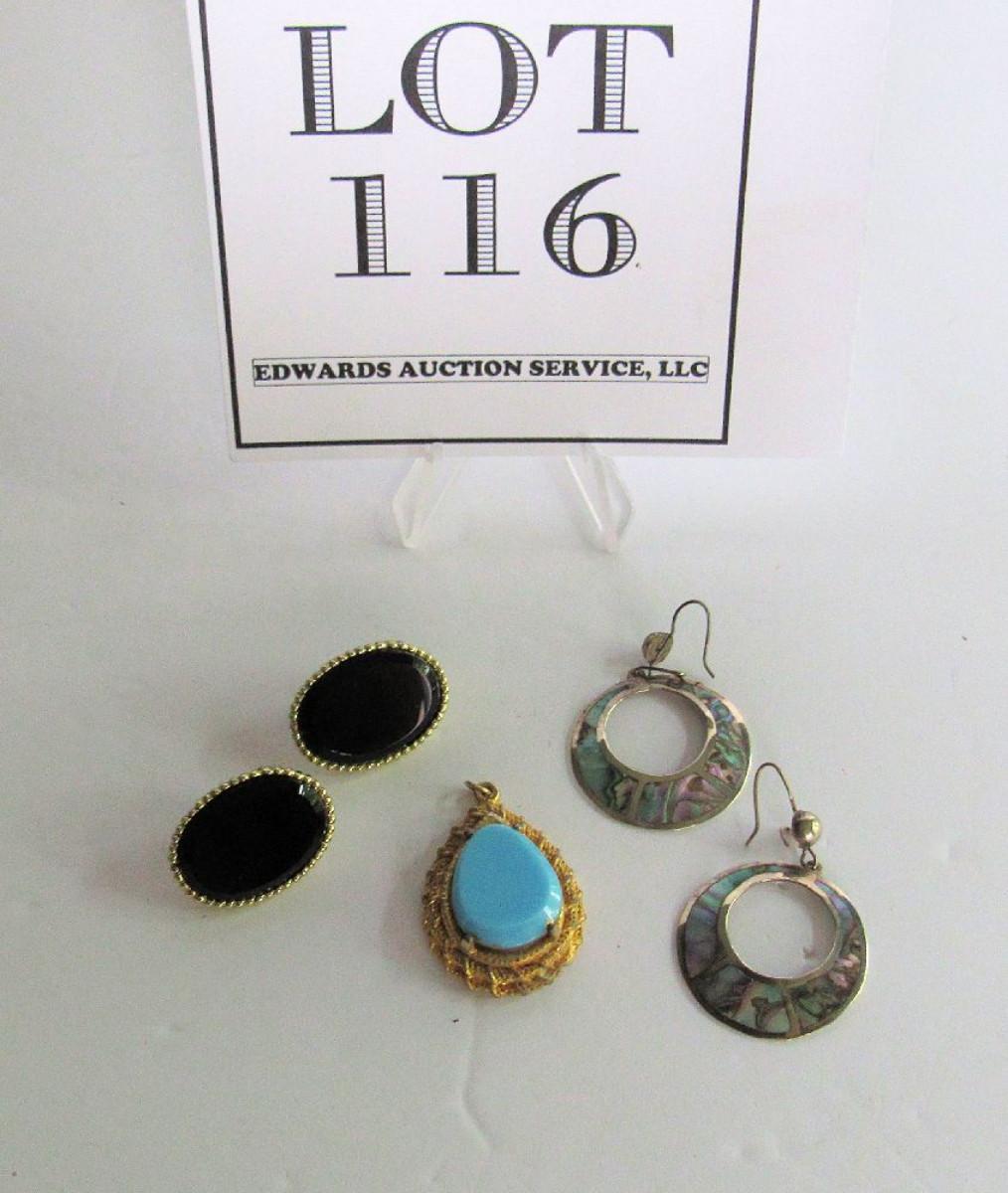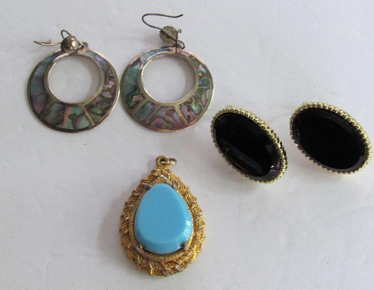 Vintage Mexico Abalone and Silver Earrings and Glass Earrings and Pendent