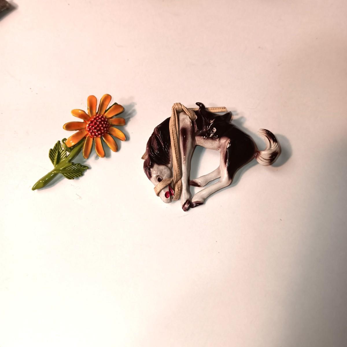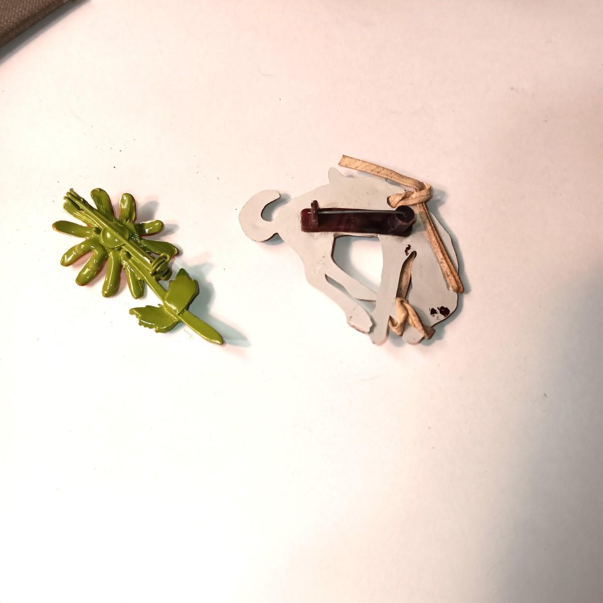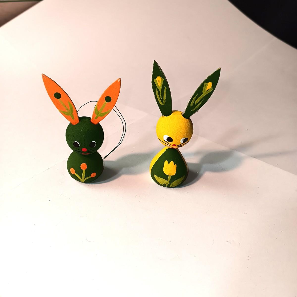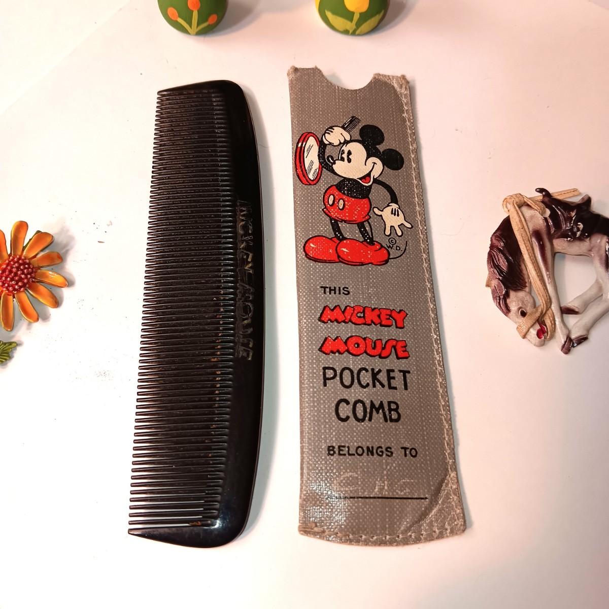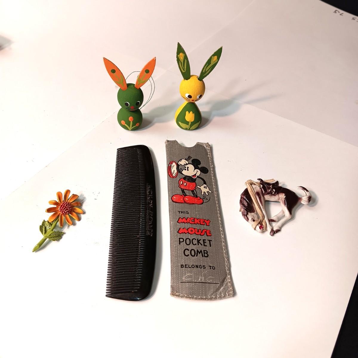VINTAGE MICKEY MOUSE COMB, 2 PINS AND 2 WOODEN HANDCRAFTED RABBITS FROM HOLLAND