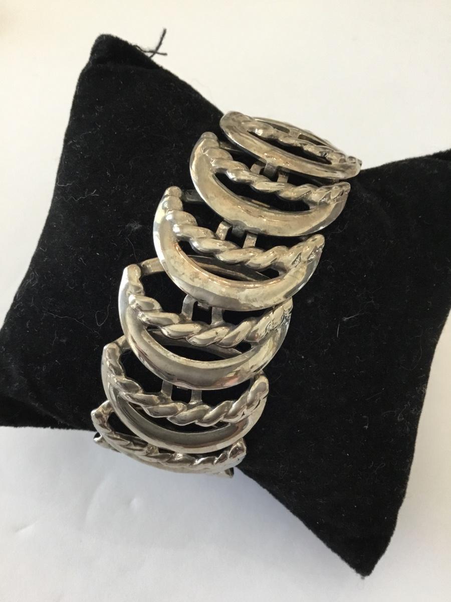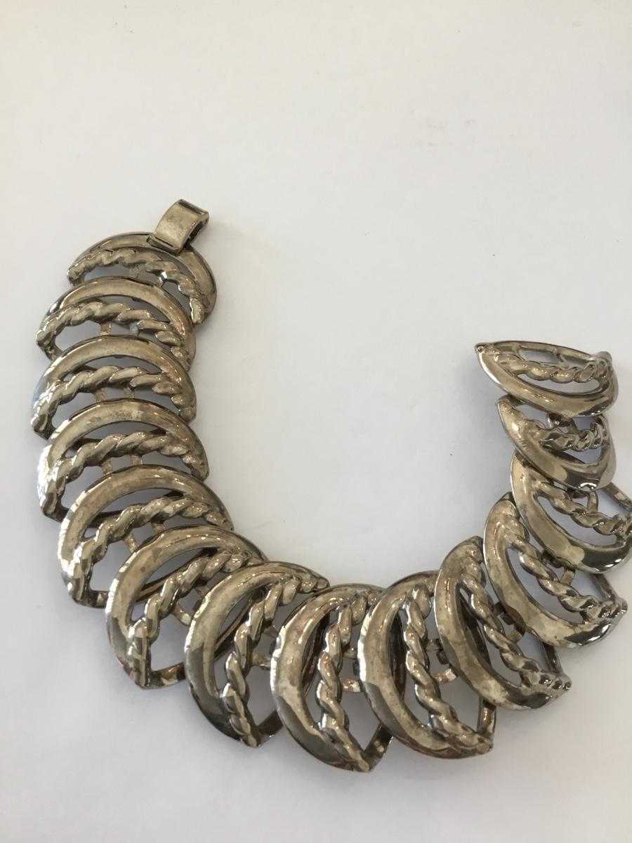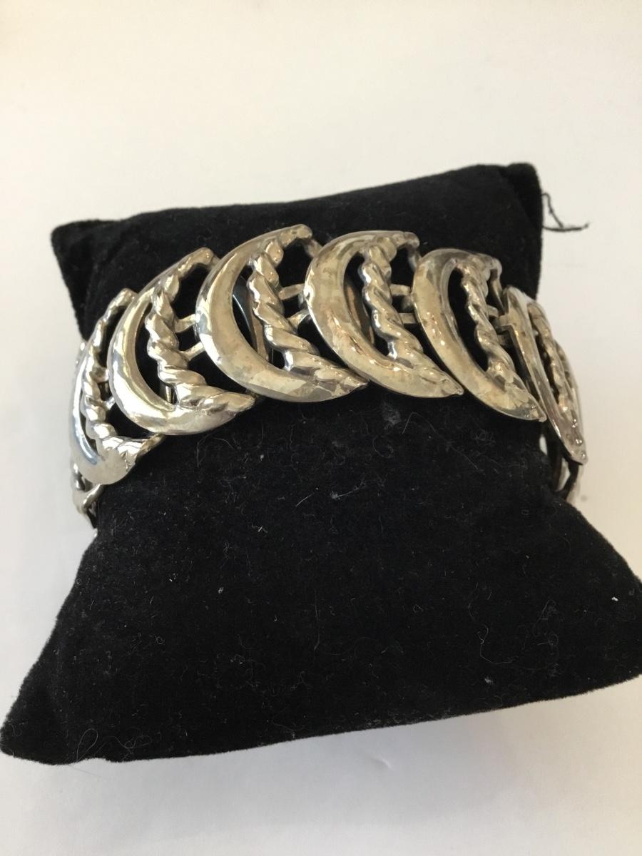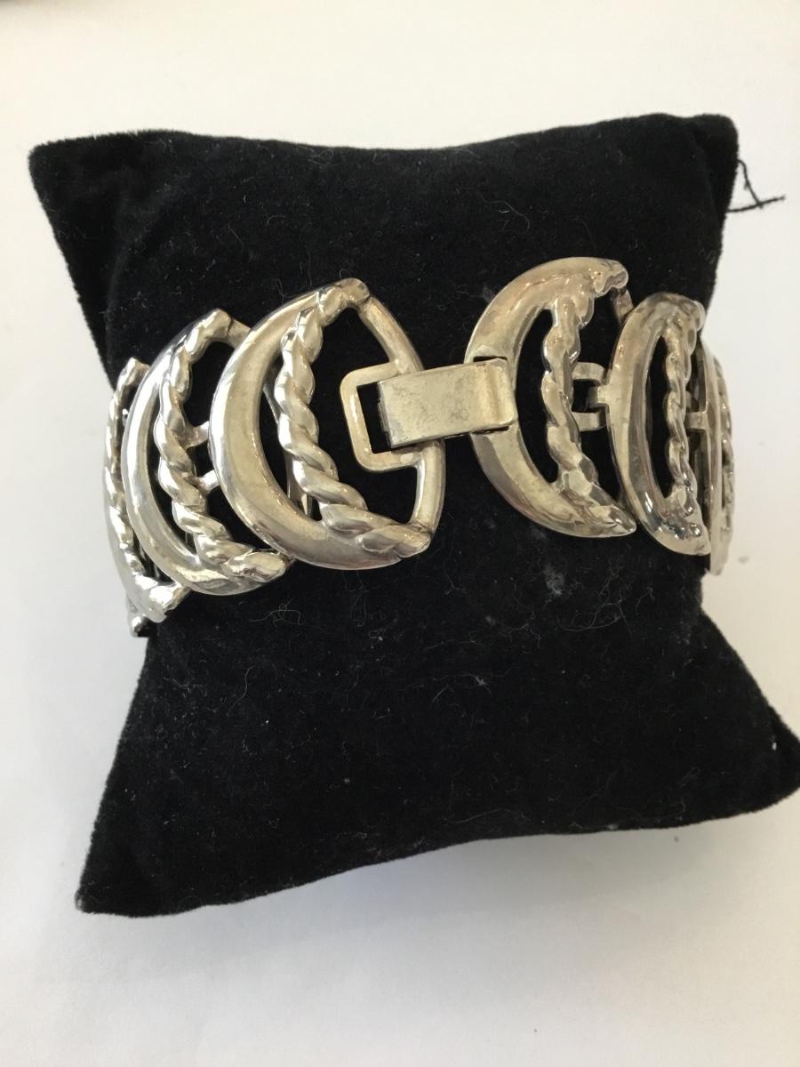 Vintage mid-century Silver-tone, half moon shaped bracelet