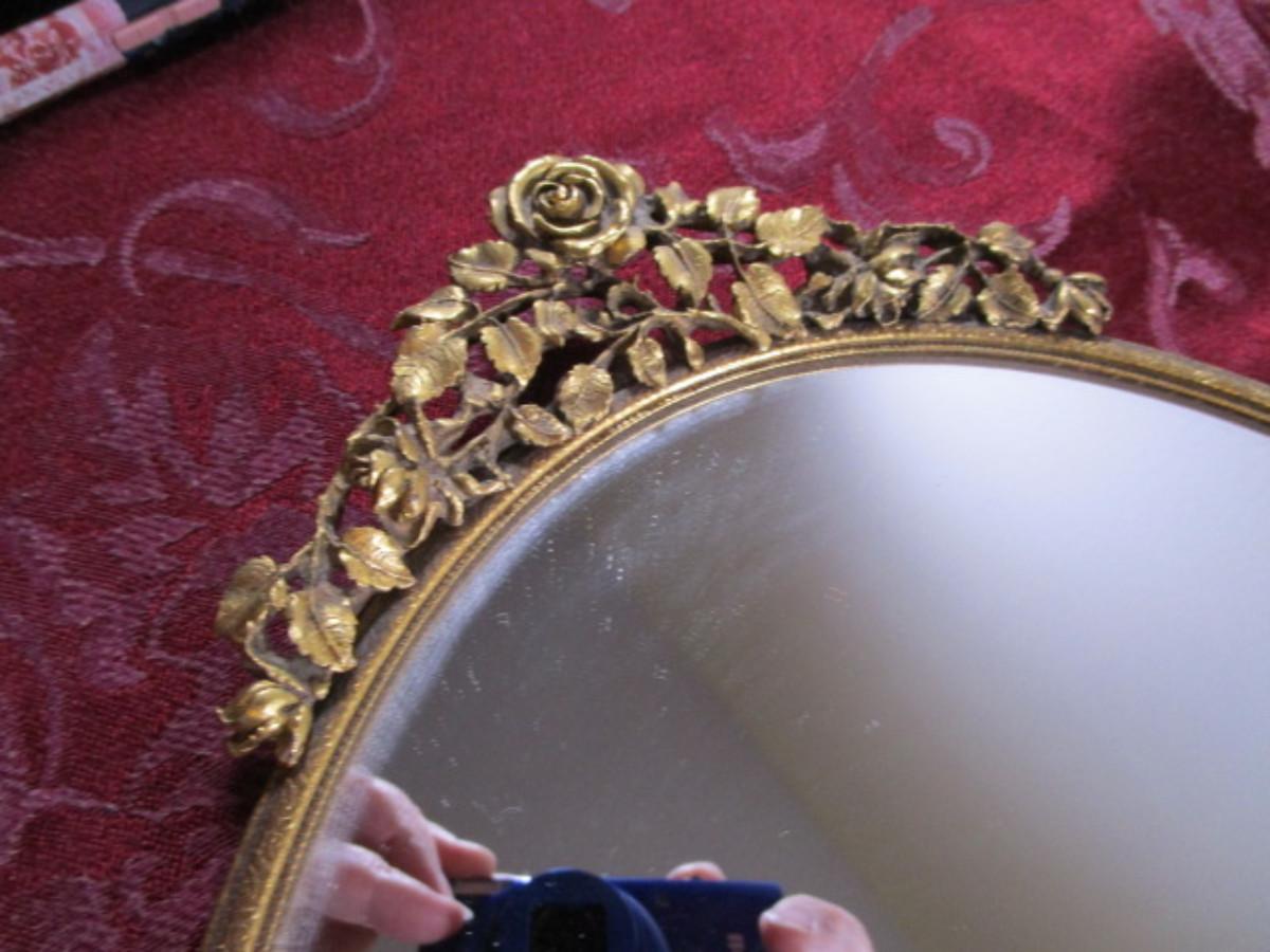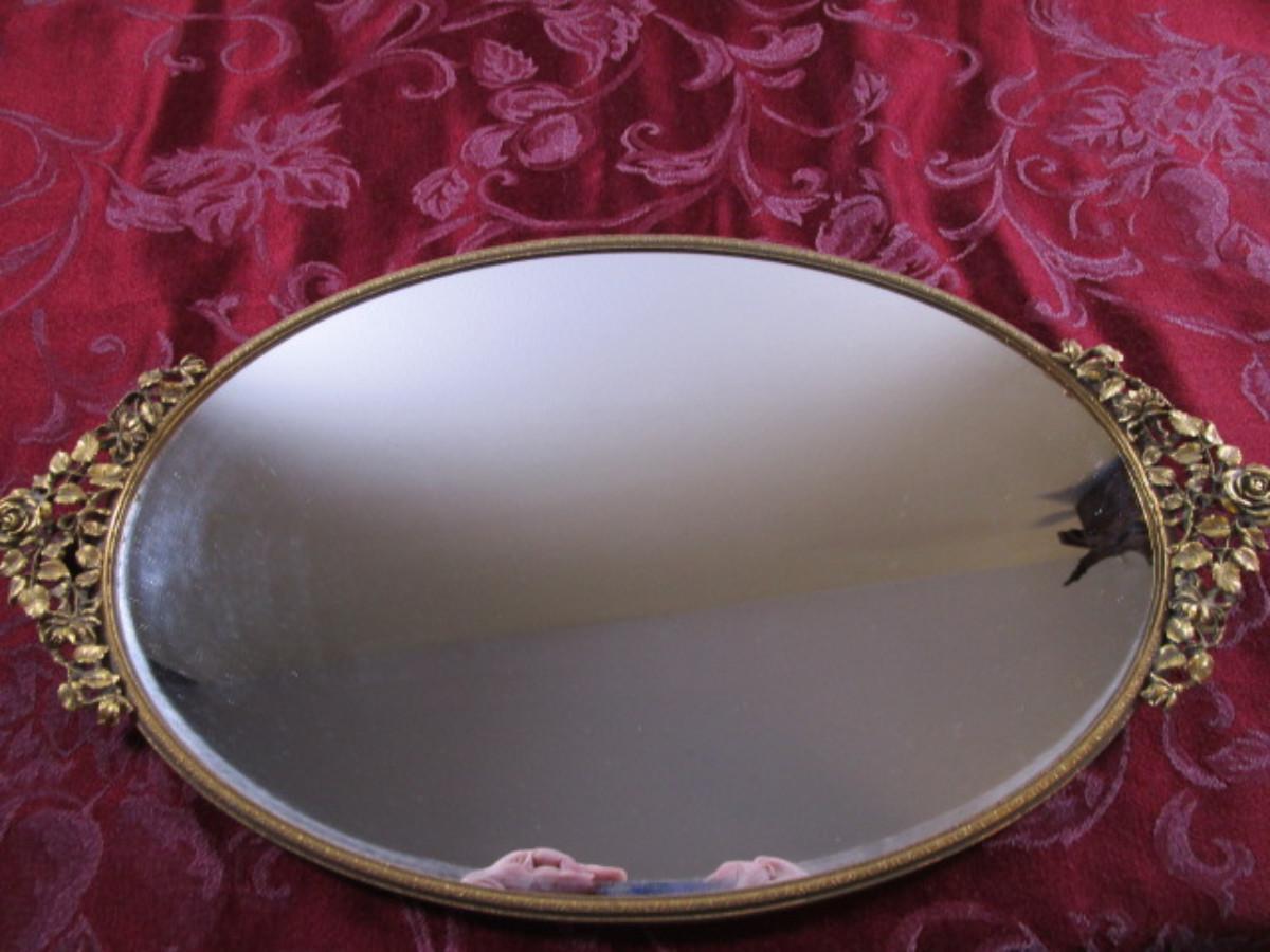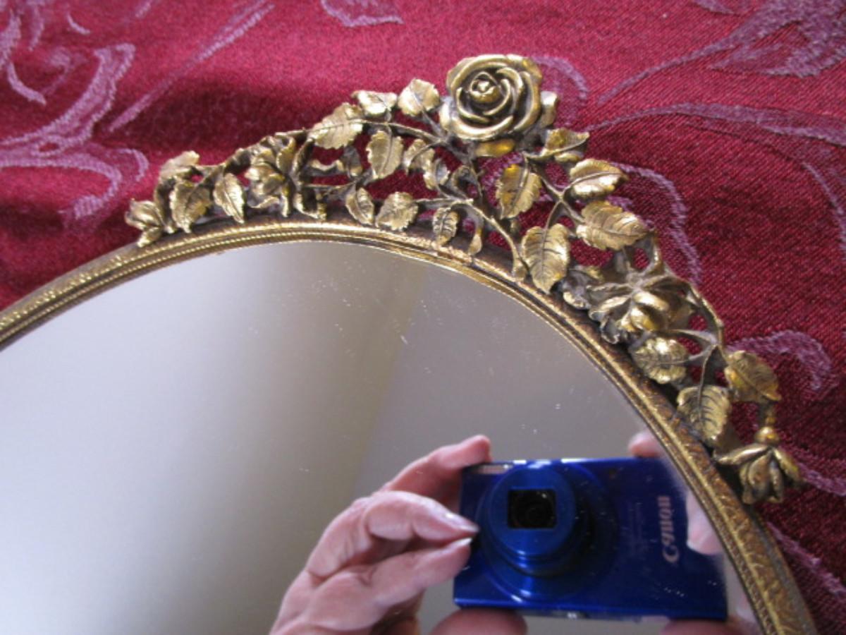 has a hook to hang mirror on the wall, 18-1/4" long with handles, Mirror only is 14-3/4" x 10" wide