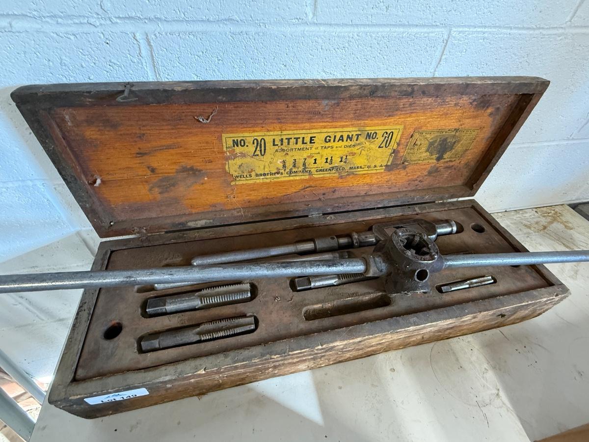 Vintage No. 20 Little Giant Taps & Dies as shown in wood box