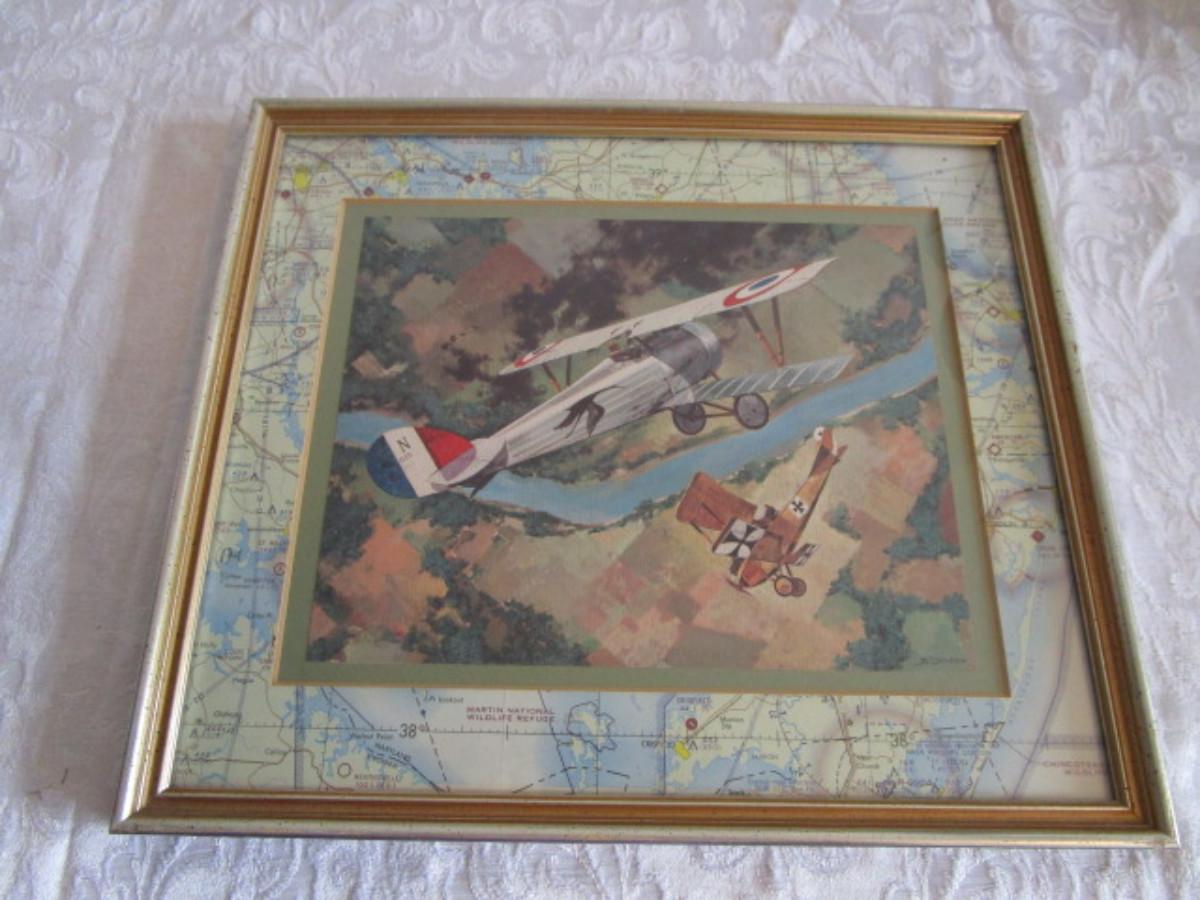 Vintage of 1968 Jim Deneen Wings of Glory with frame & custom matting PFALZ vs. NIEUPORT 27-1917