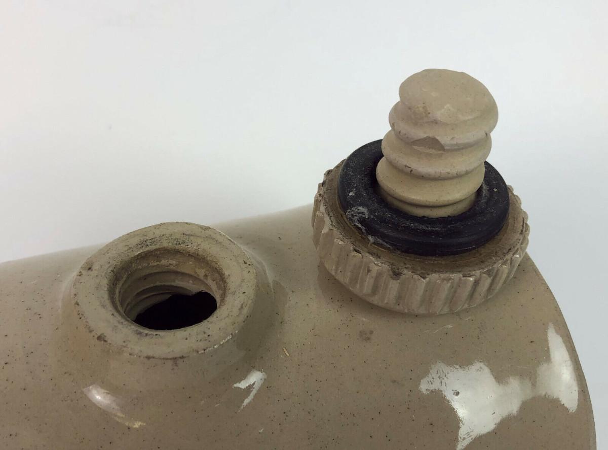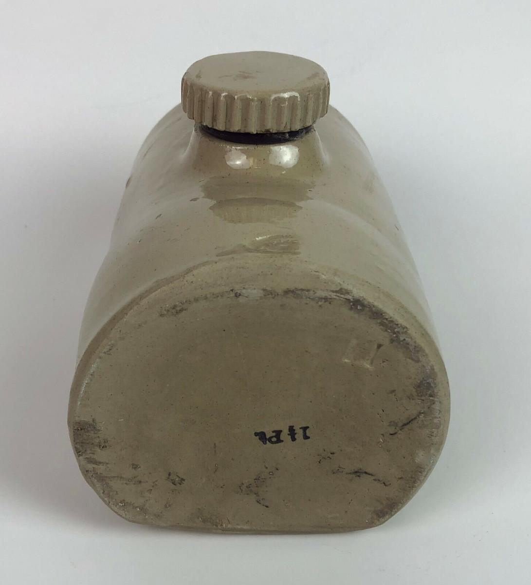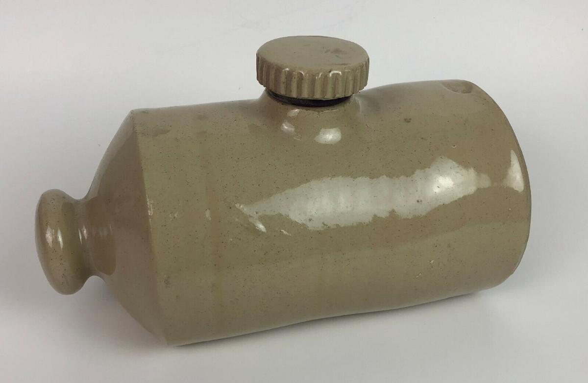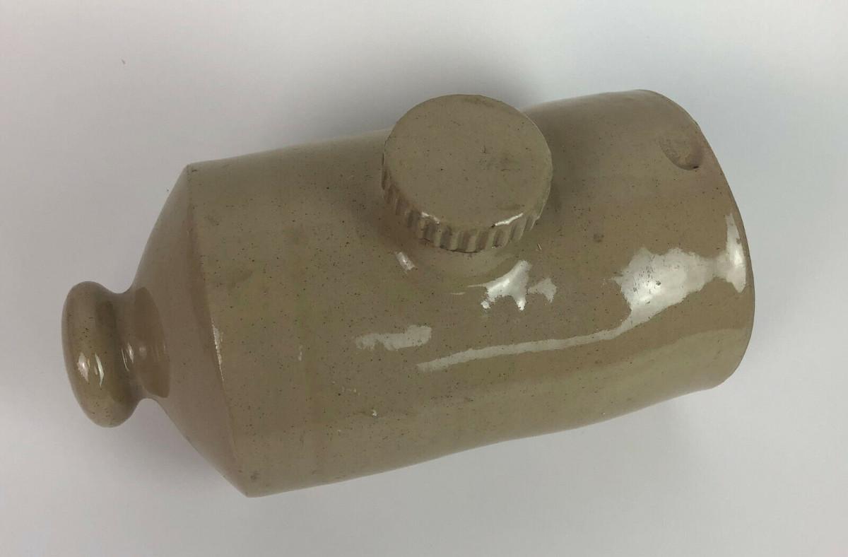 n very good condition here is a vintage stoneware bed or foot warmer from Pearson's of Chesterfield I believe...This ceramic hot water bottle holds 1 1/2 pints...Measures 8 1/2" long by 5" high...Rubber gasket still in place...Flat bottom...The pottery, around since 1810, became Pearson & Co.(Chesterfield) Ltd. in 1922...it was the last pottery in the Chesterfield, England area, finally closed in 1994...As shown.