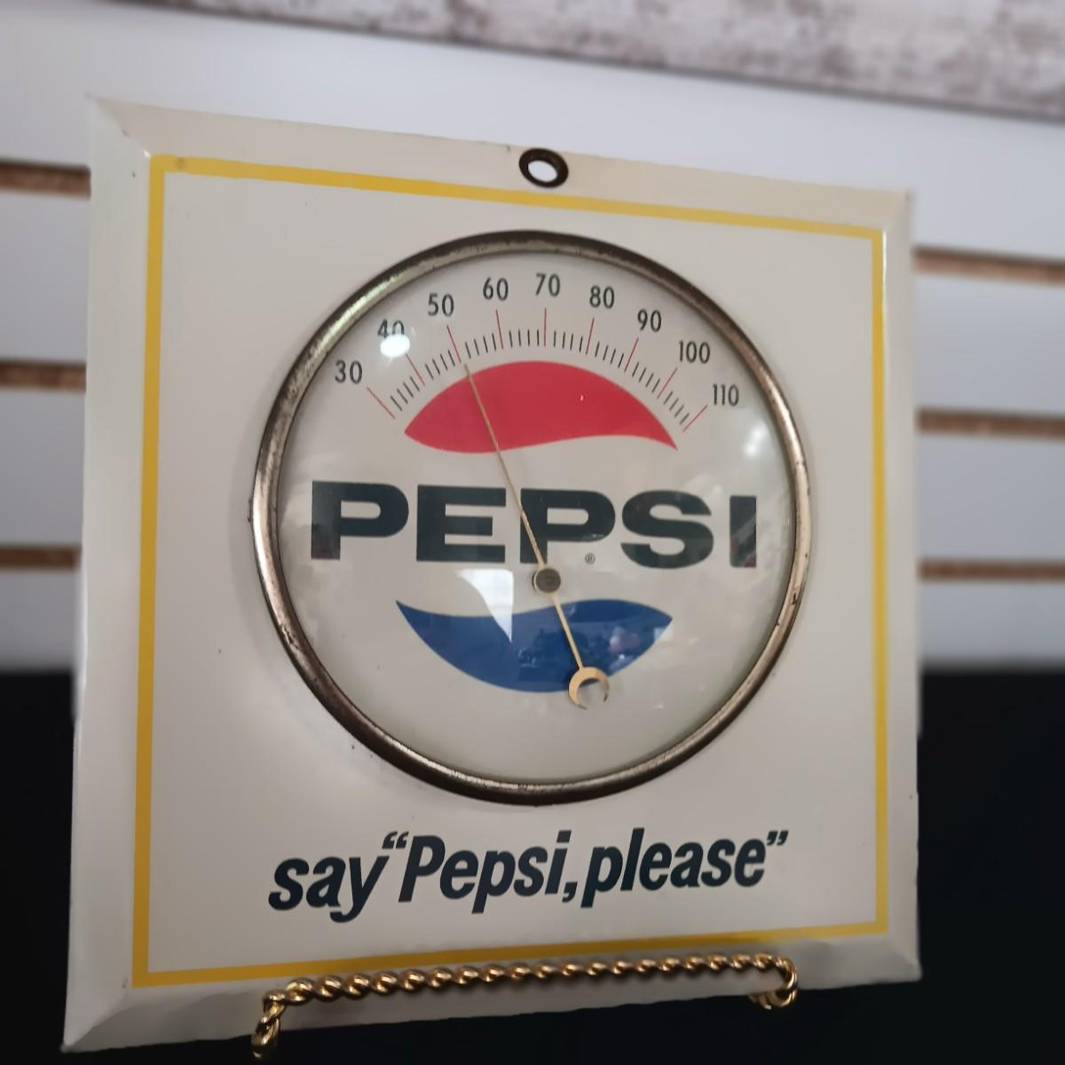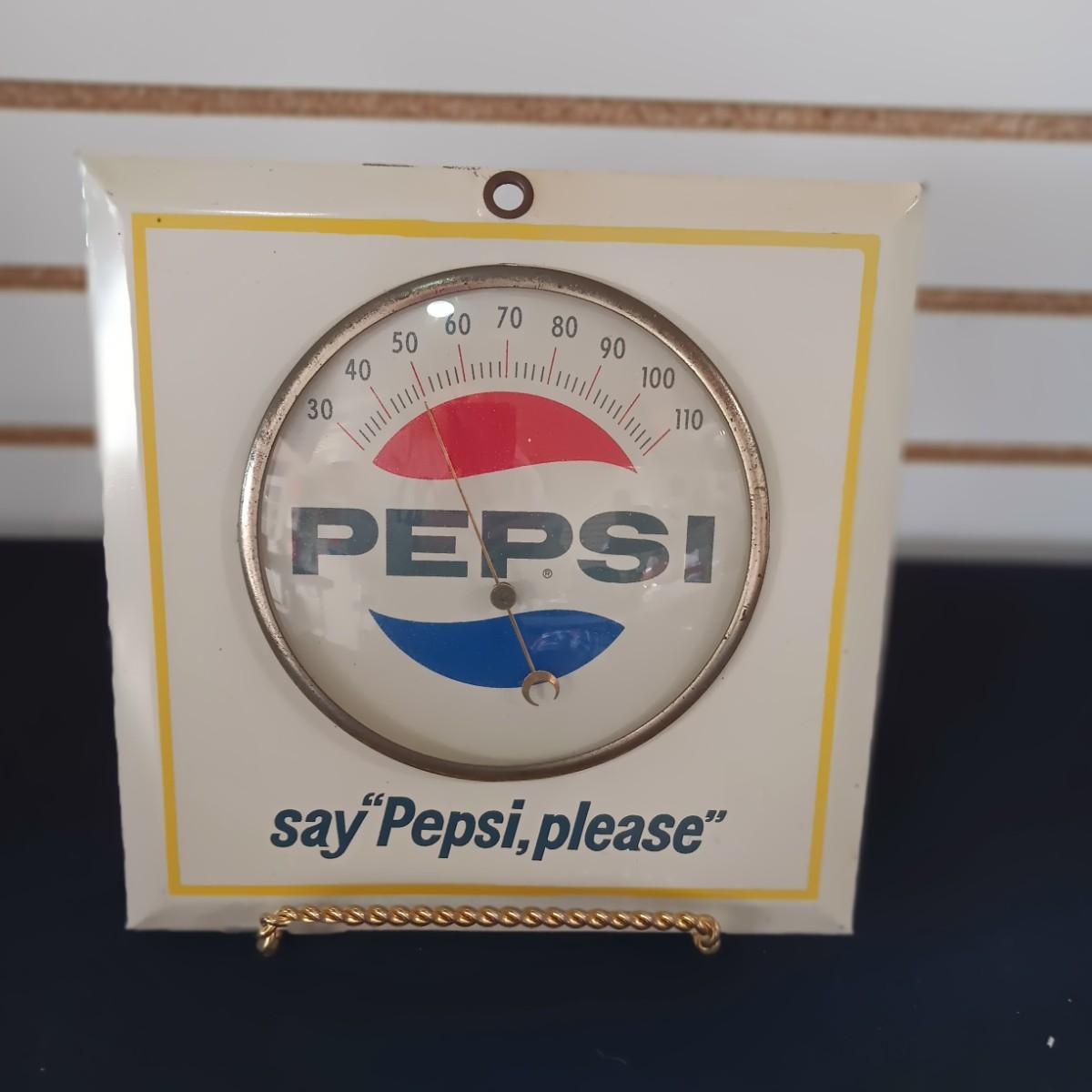VINTAGE PEPSI WALL CLOCK AND THERMOMETER
