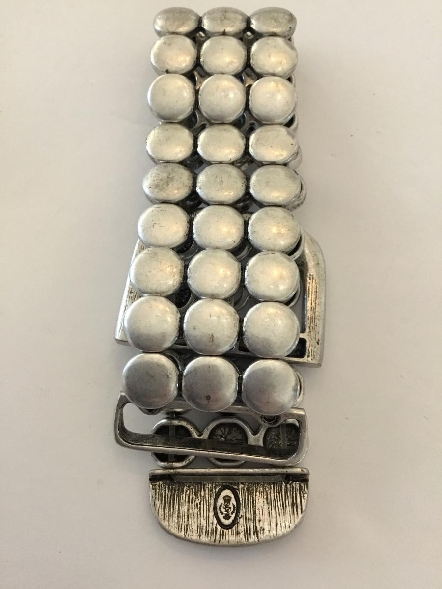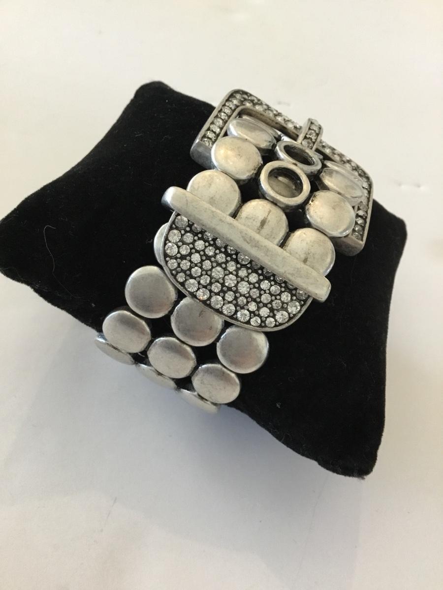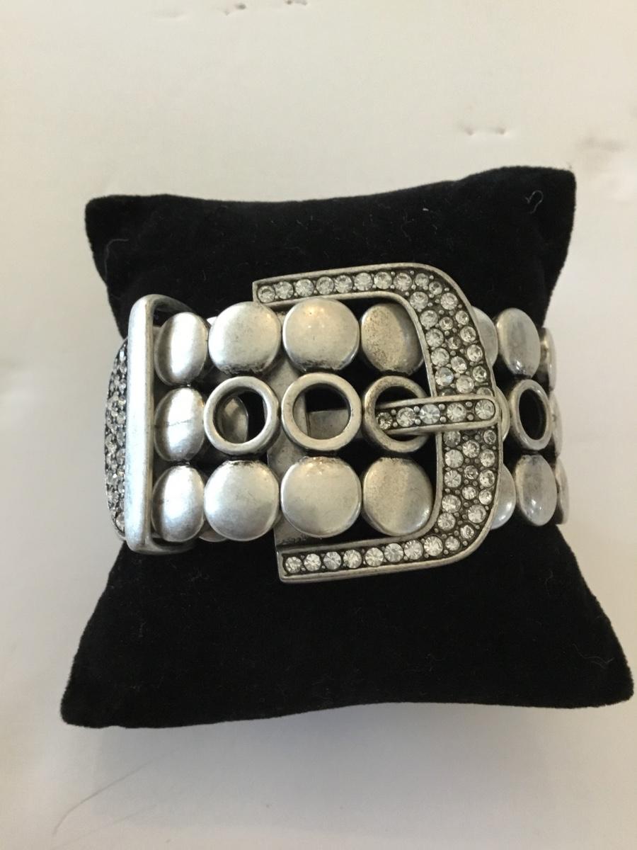 Vintage premier design, Silvertone rhinestone belt, buckle stretch bracelet