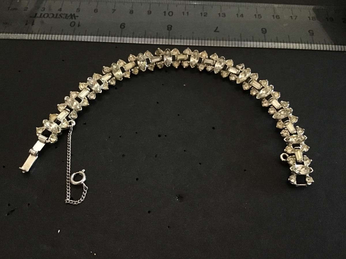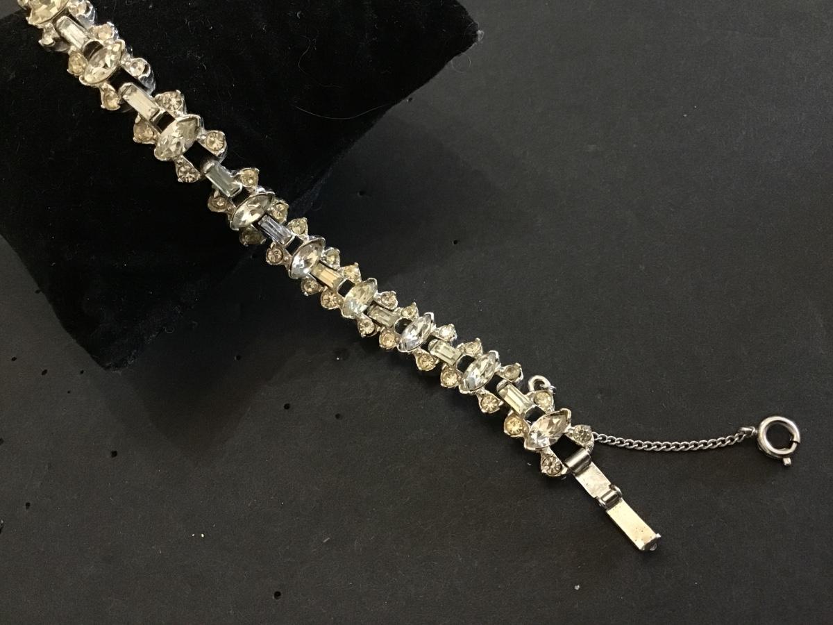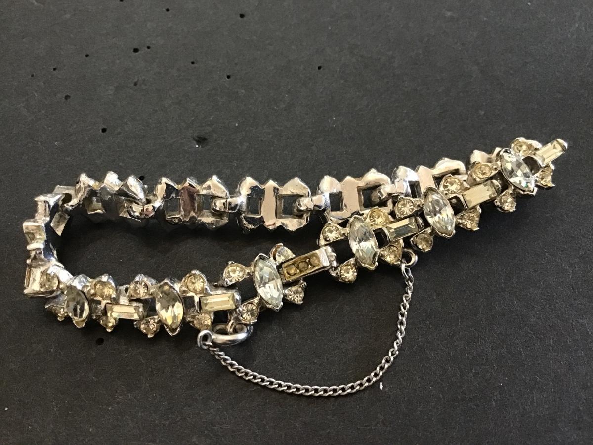Vintage Rhinestone Bracelet With Safety Chain