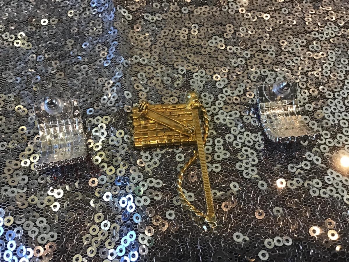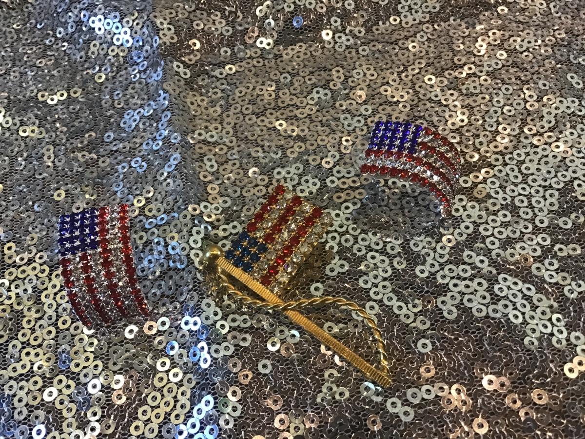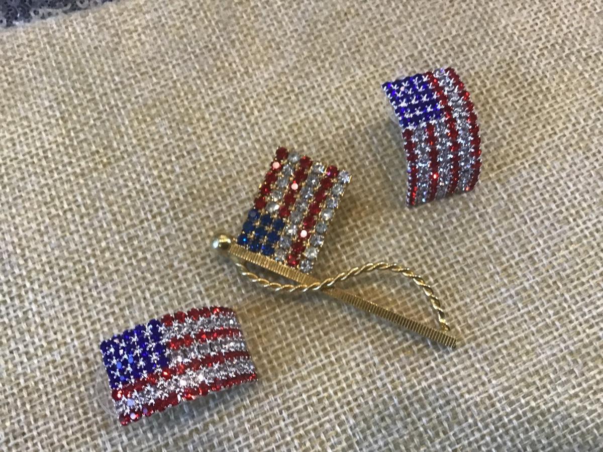 Vintage Rhinestone Flag Pin With New Rhinestones Earrings