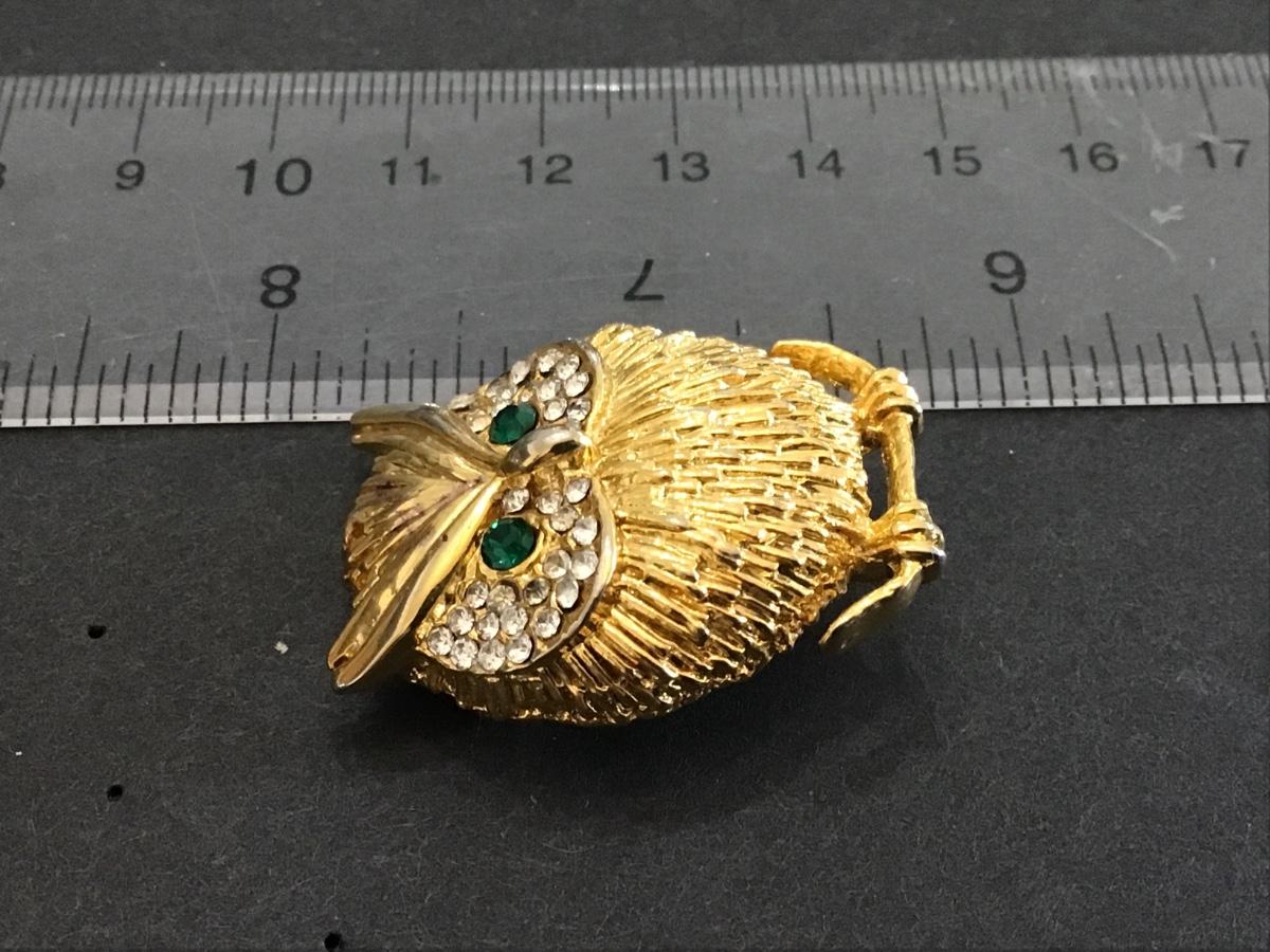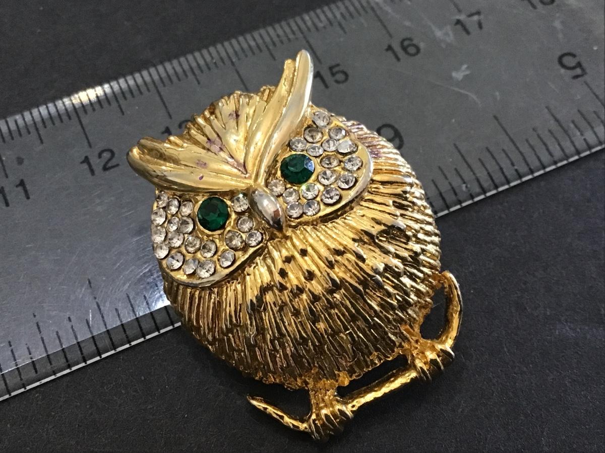 Vintage Rhinestone Owl Brooch