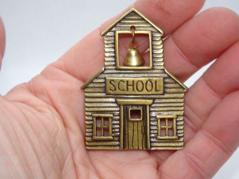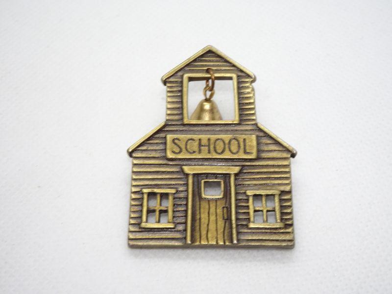Vintage School House Pin, Teachers Pin, Ringing Bell