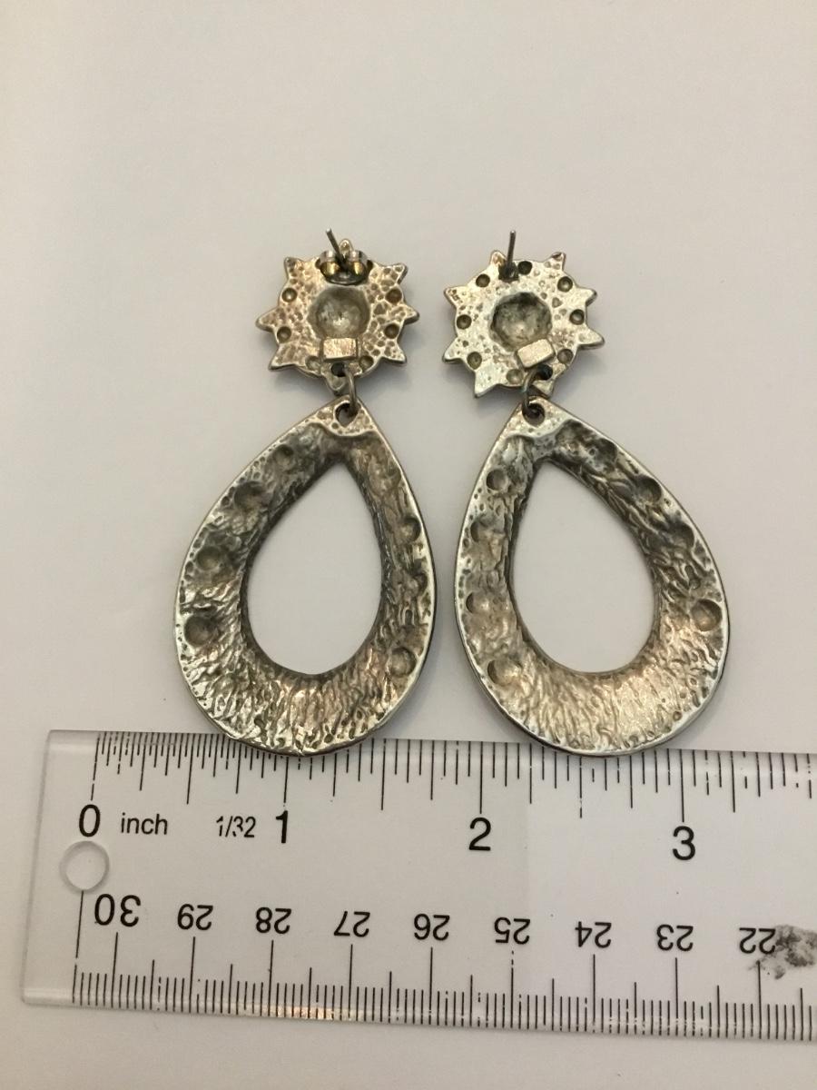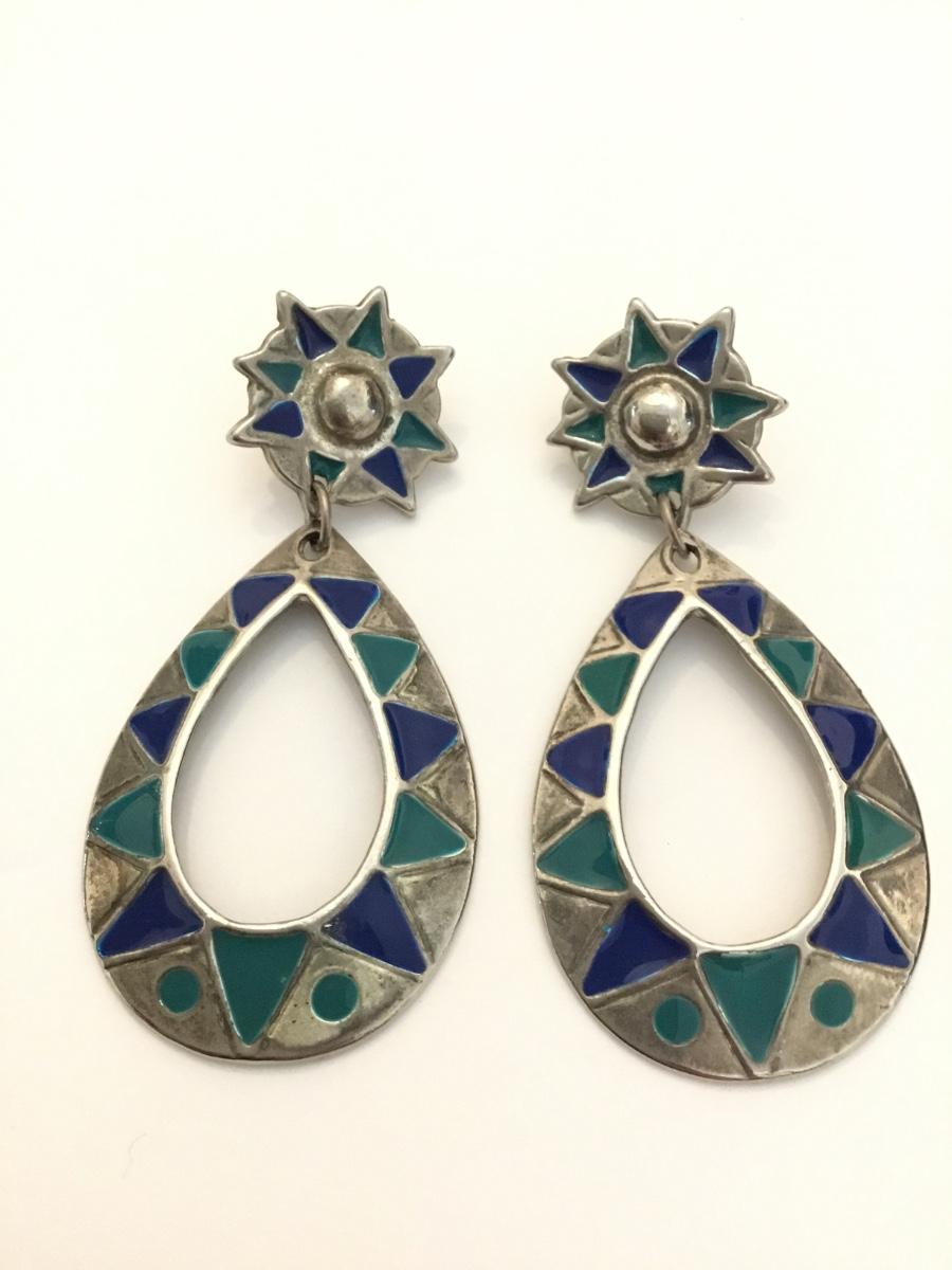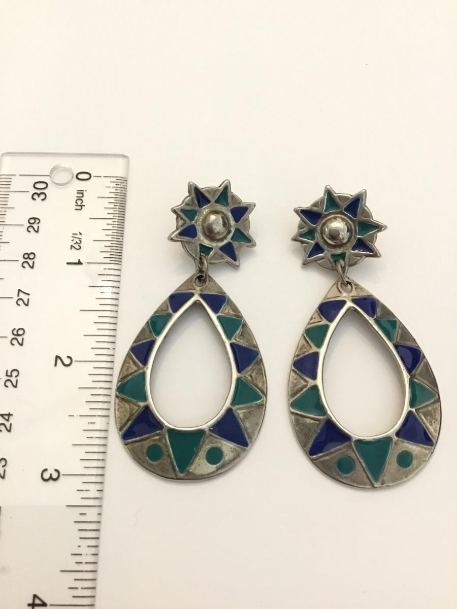 Vintage Silver tone, turquoise and blue enamel star teardrop statement, dangle earrings