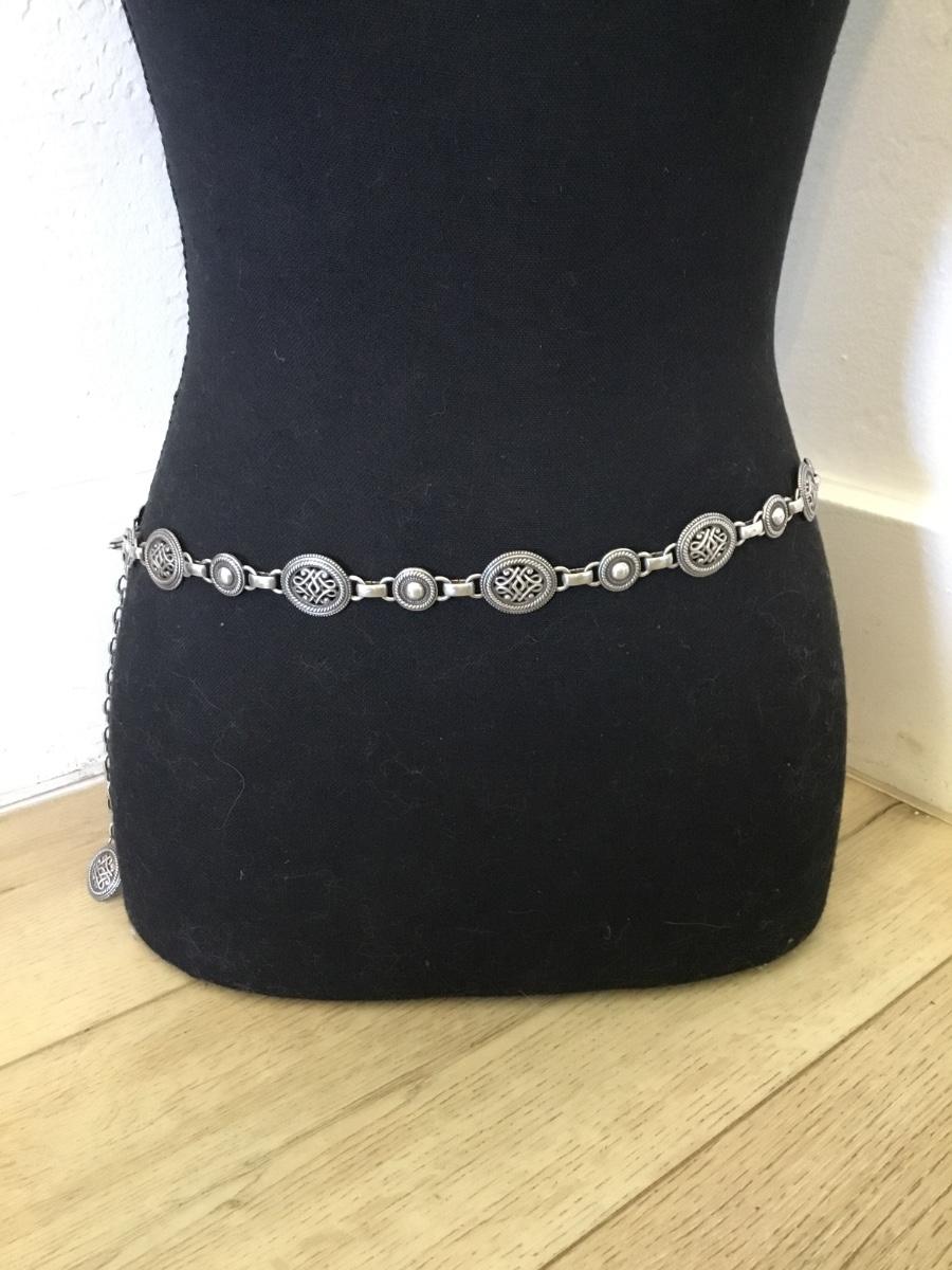 Vintage, silver toned chain waist belt