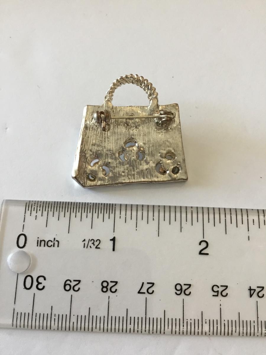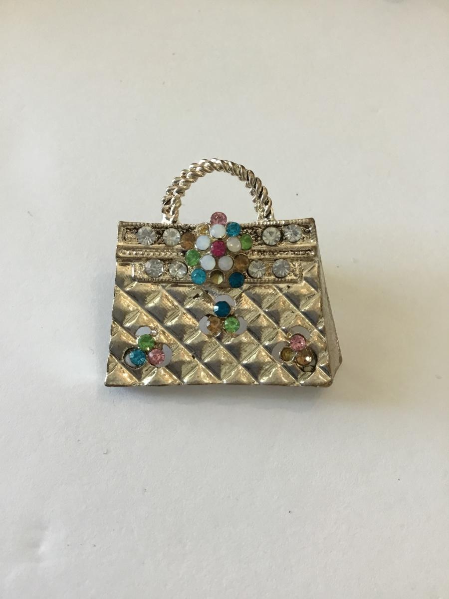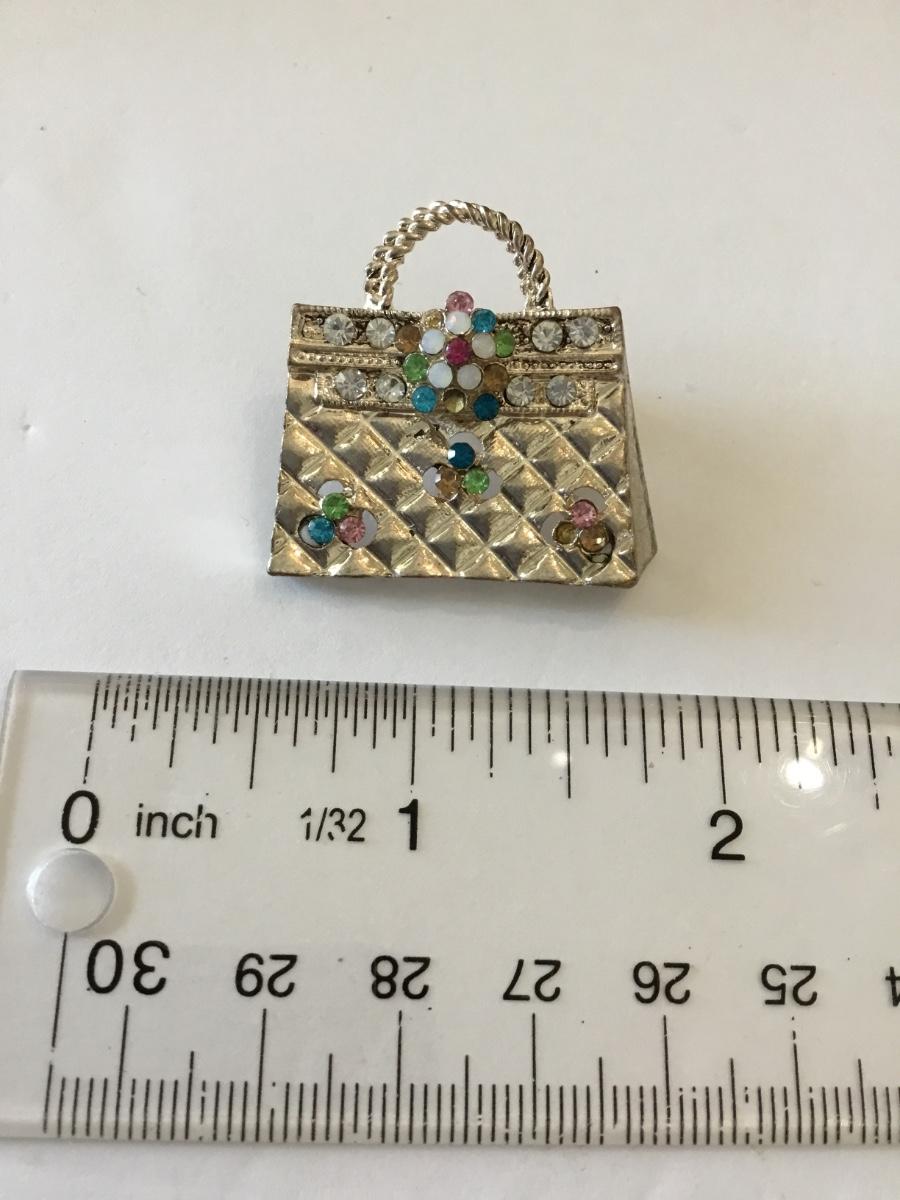 Vintage, silver, toned, rhinestone flower, purse, pin/brooch