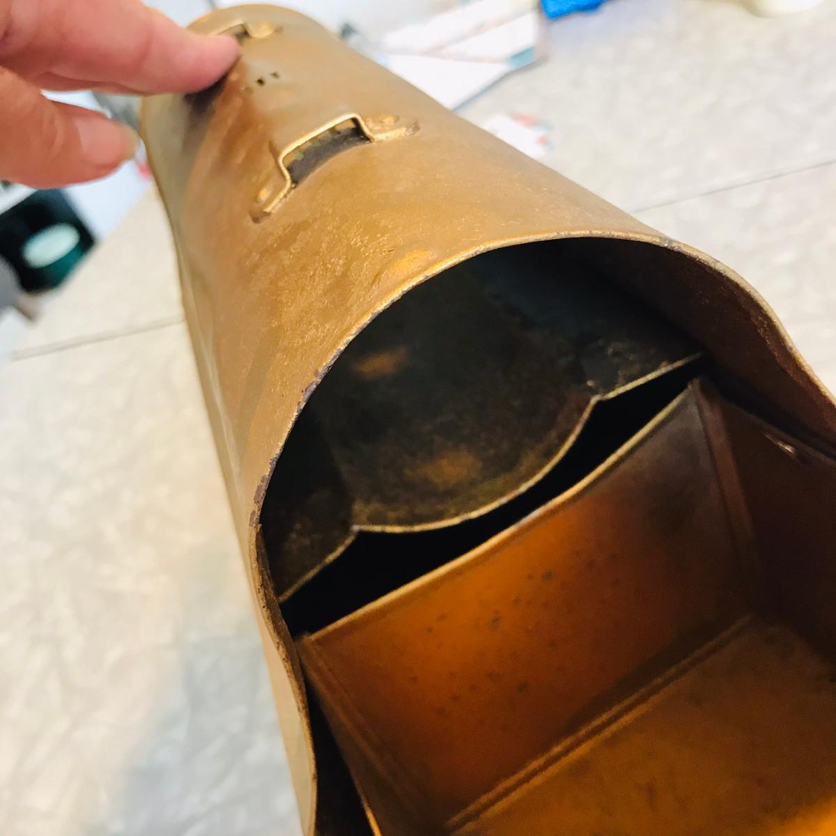 Found on the prairie! Repainted gold. How cool, though! I'd never seen a slide out lunch box before!!!