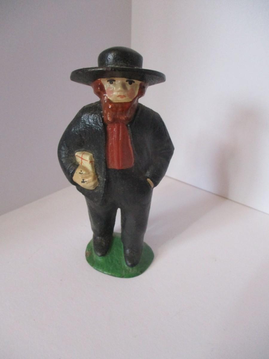 Vintage Solid Cast Iron Amish Country Man Folk Art 4 1/2" Tall
