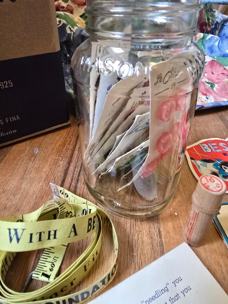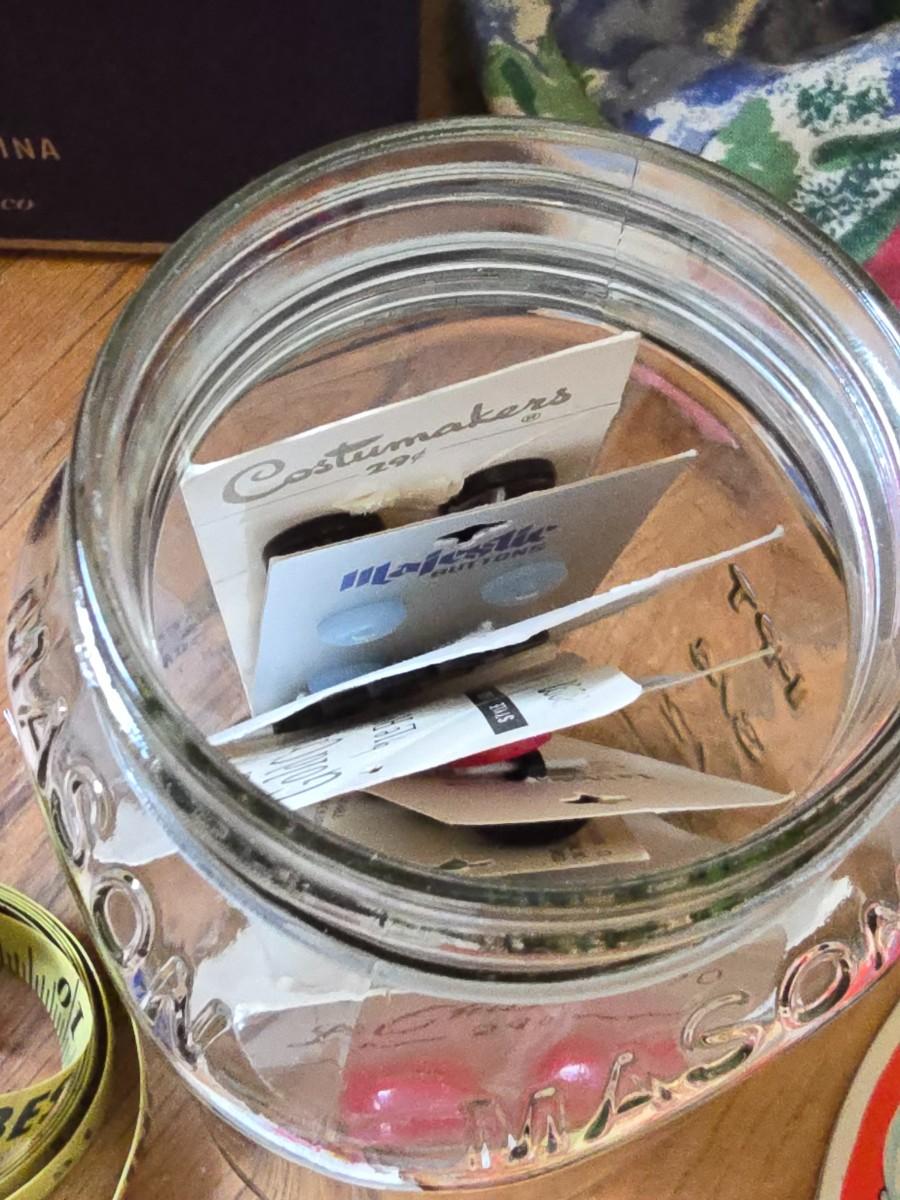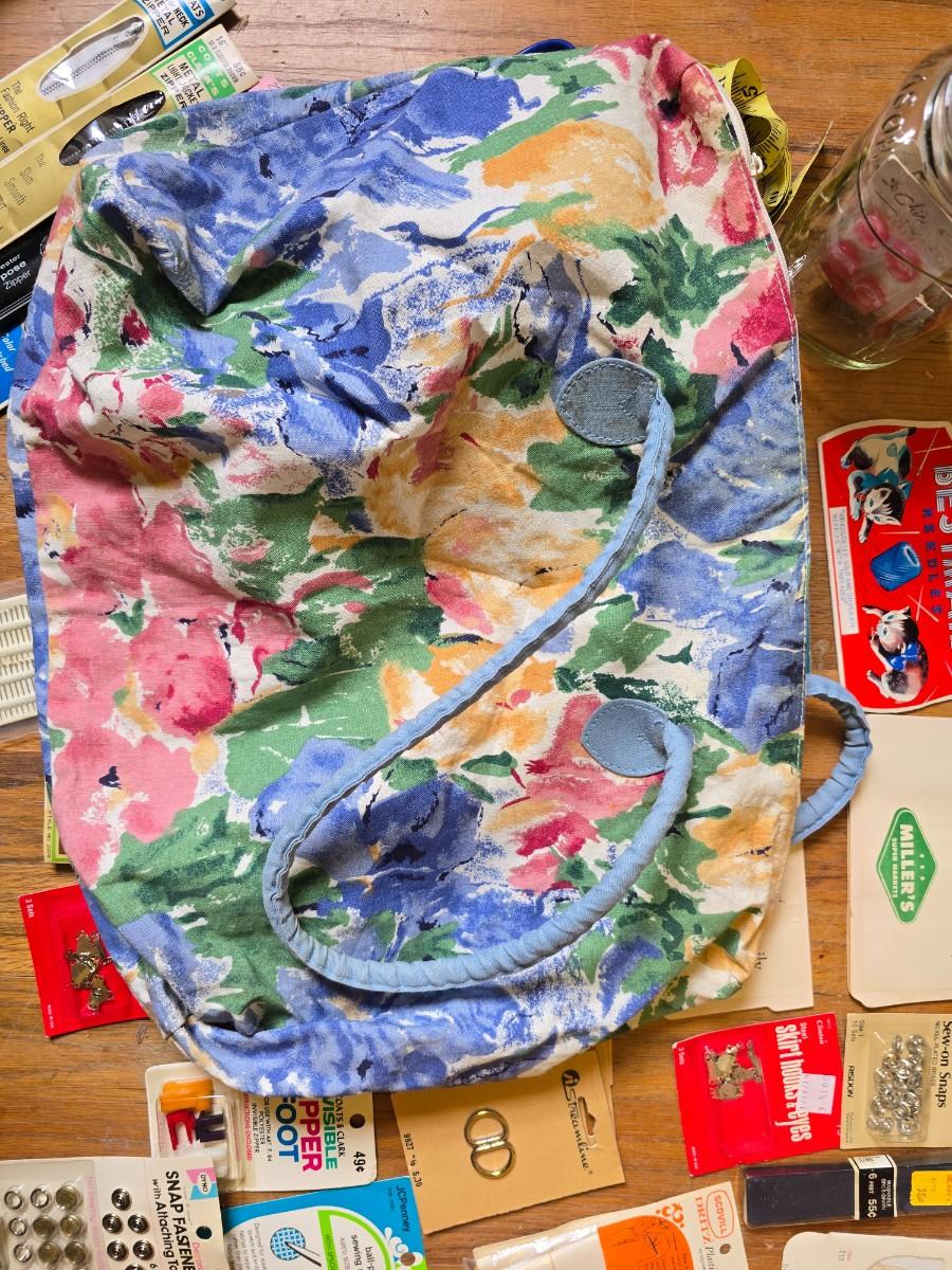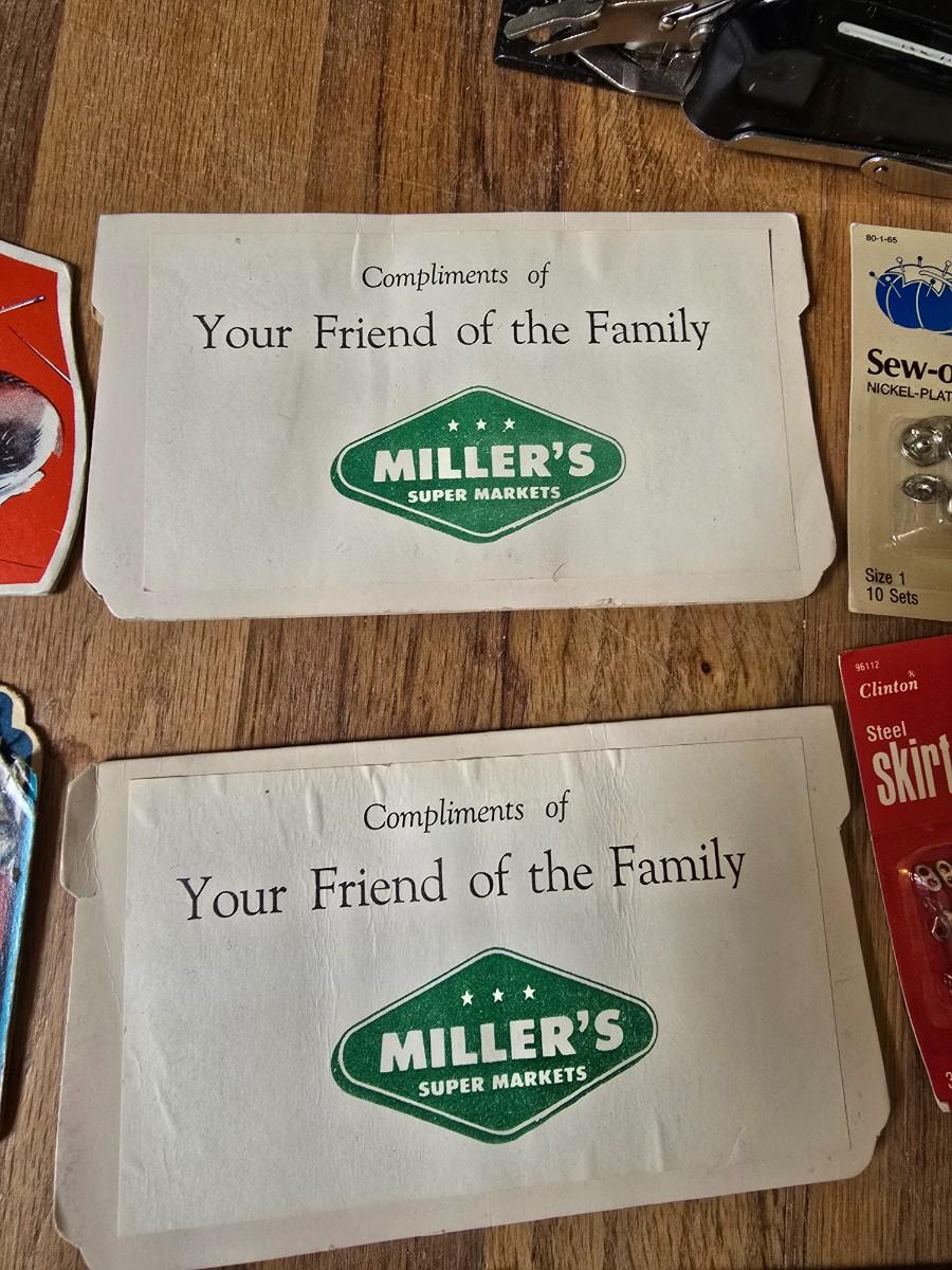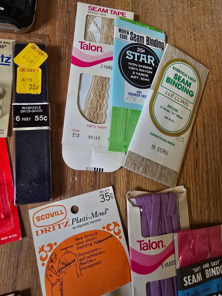 New old stock sewing notions - old needles with neat graphics -zippers - buttons- Vintage 1948 Singer Buttonholer and more