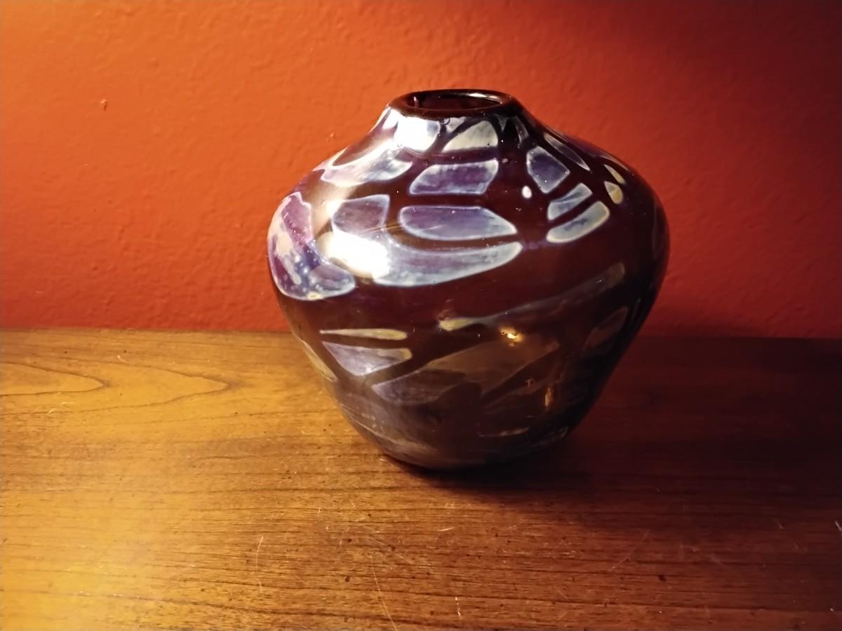 Vintage Studio Art Glass Iridescent Vase Signed S. West 74 4.5”