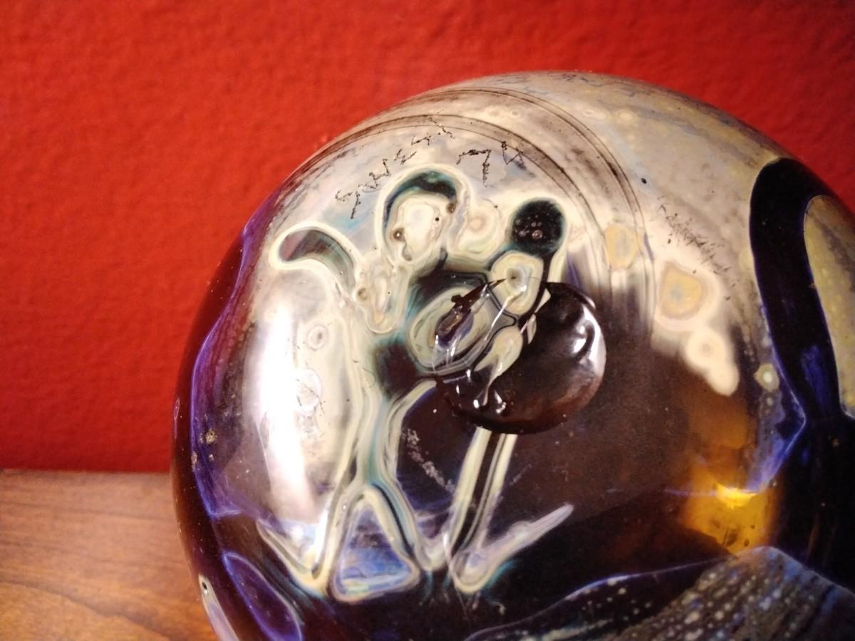 Just gorgeous! No chips or cracks. Signed and dated studio art glass. No chips, cracks or repairs.