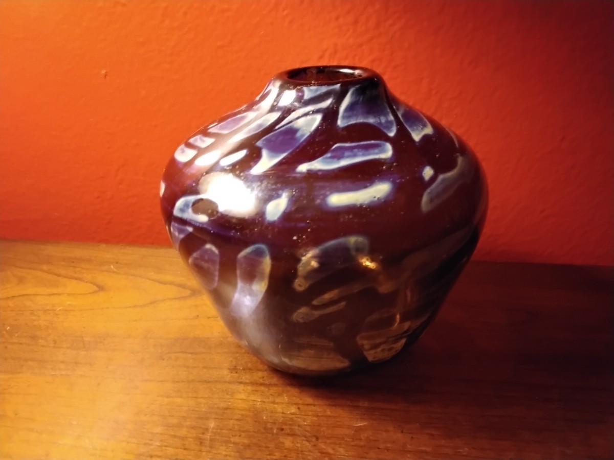 Vintage Studio Art Glass Irridescent Vase Signed S. West 74 4.5"