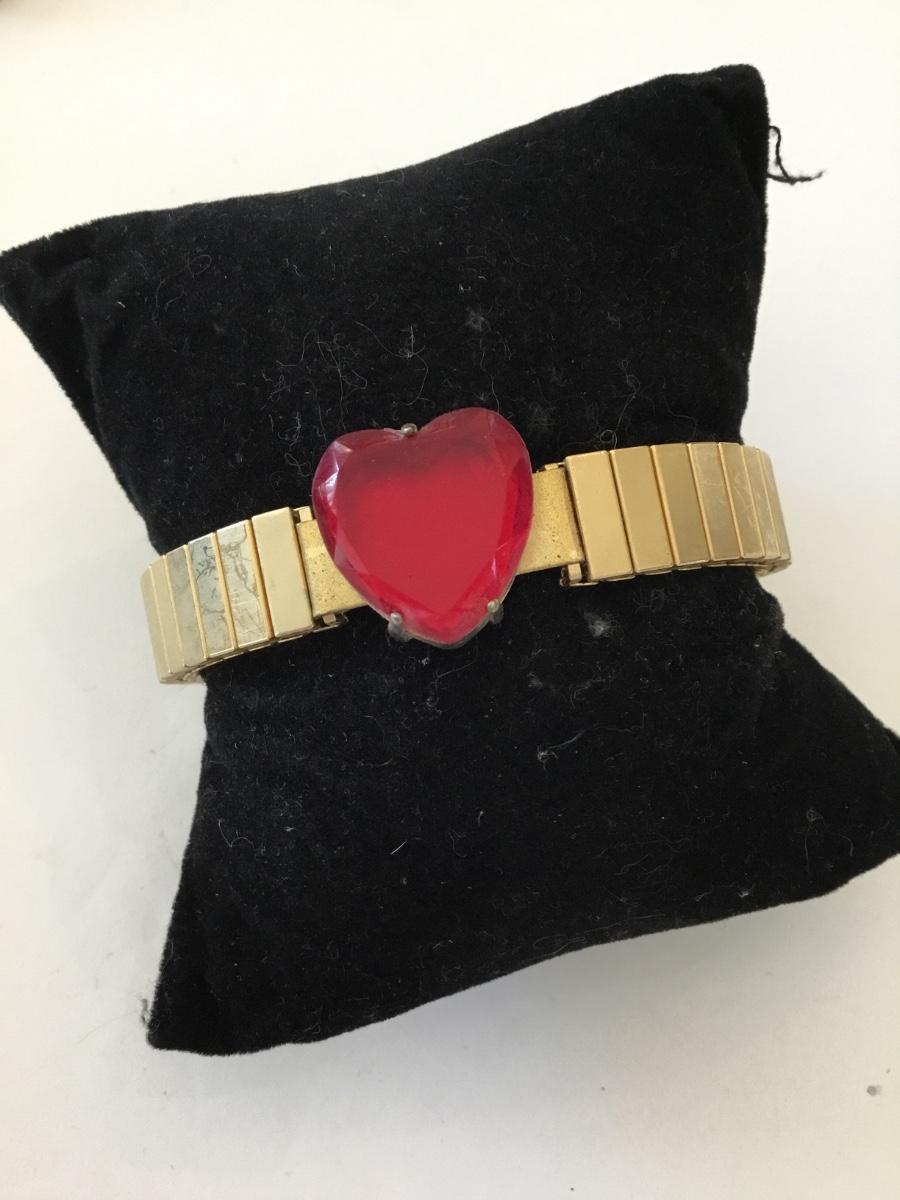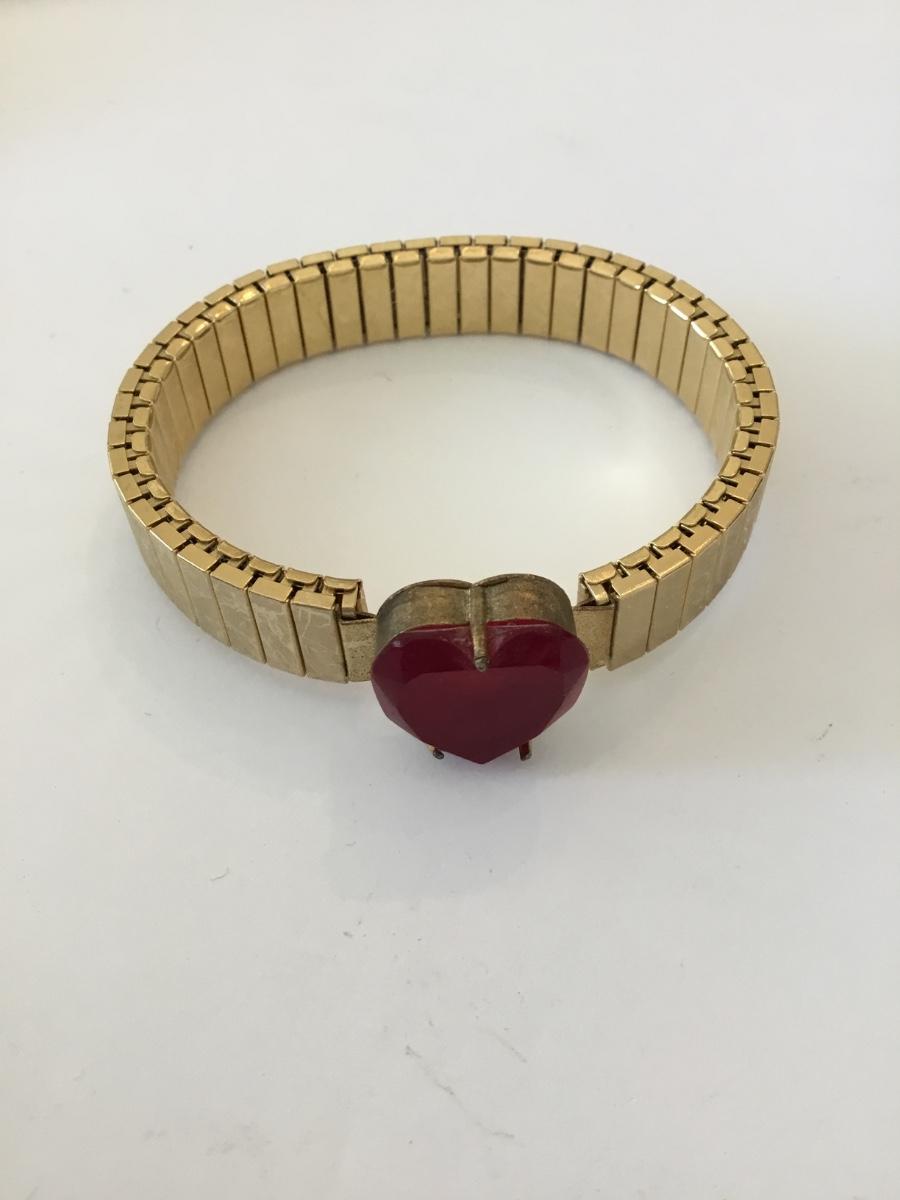 Vintage sweetheart, expansion bracelet with the red glass heart
