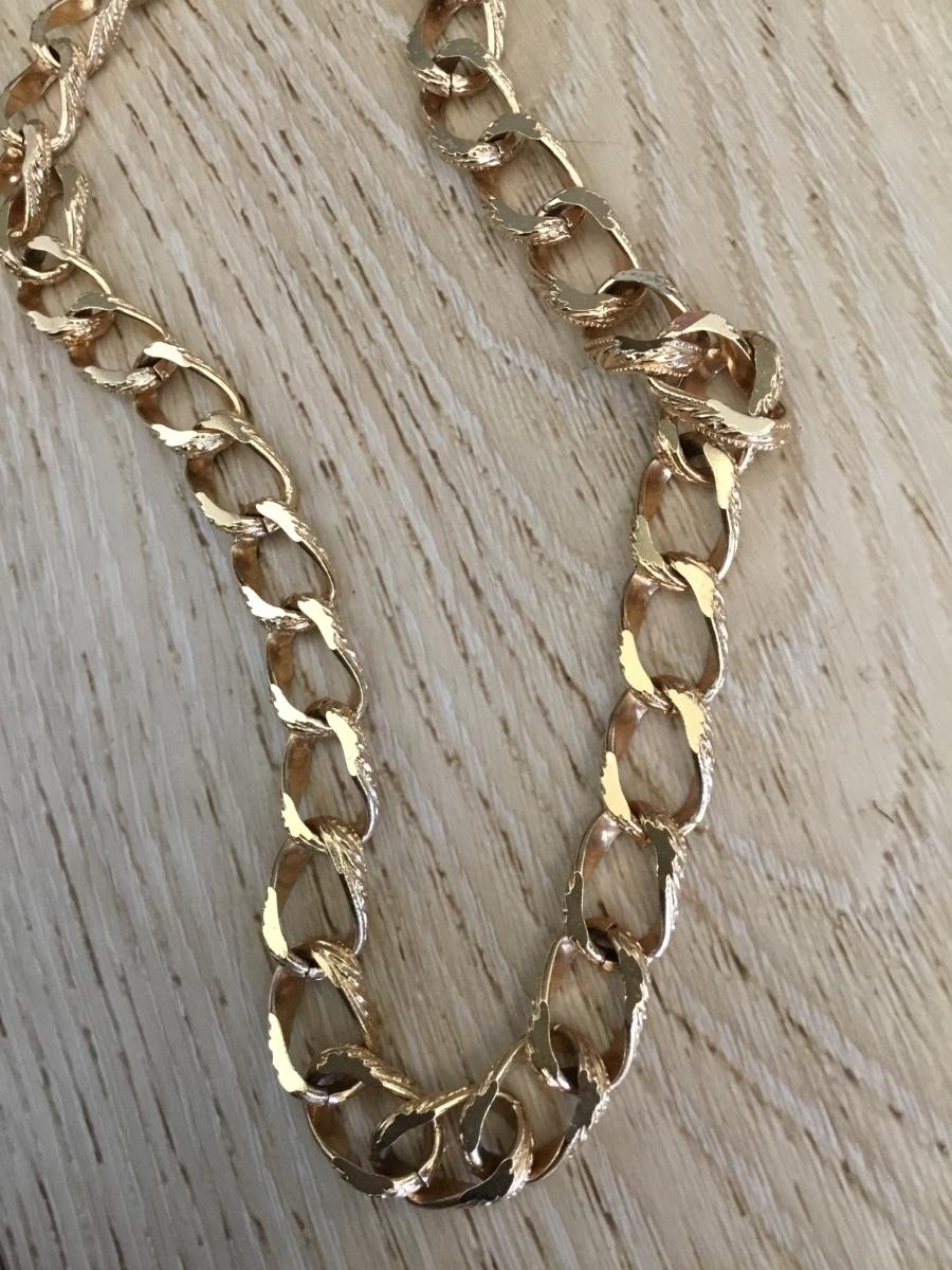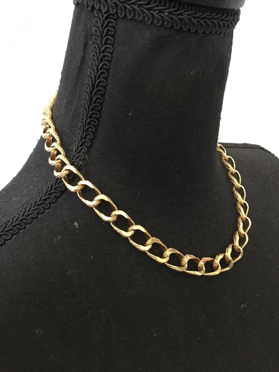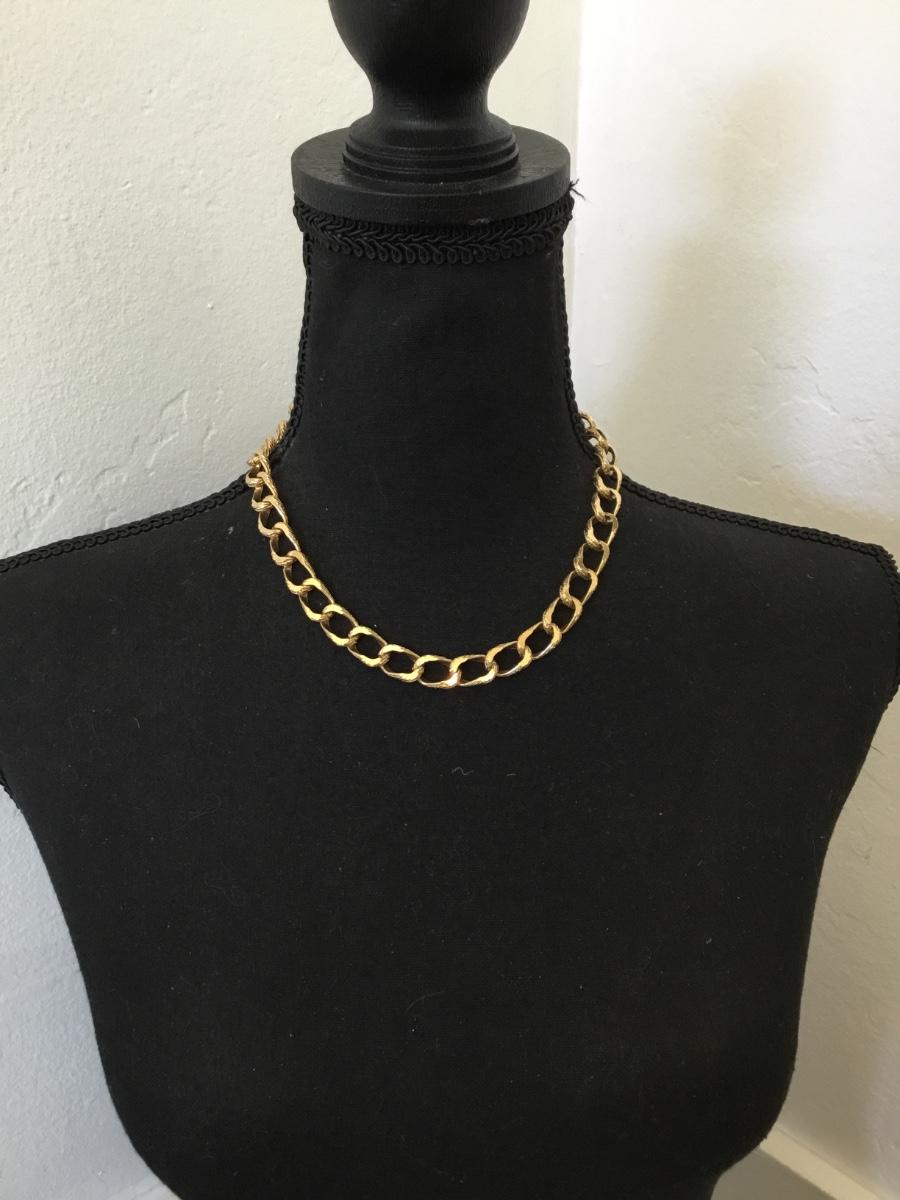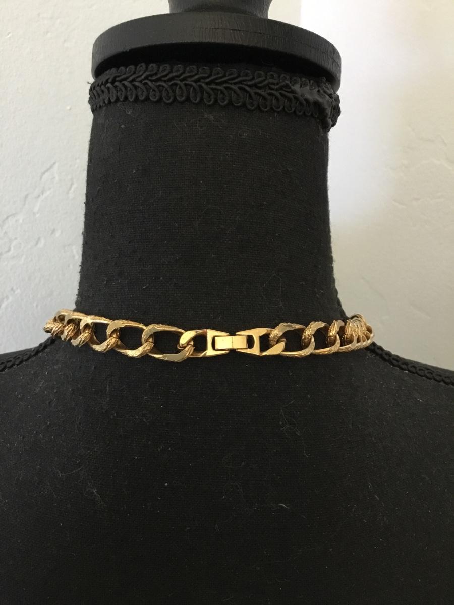 Vintage textured gold tone chain link collar statement necklace