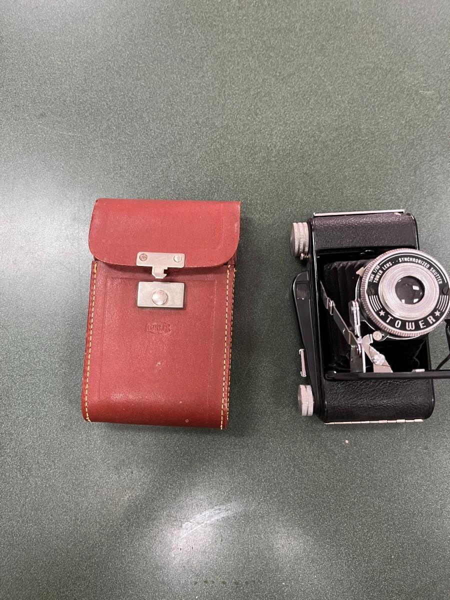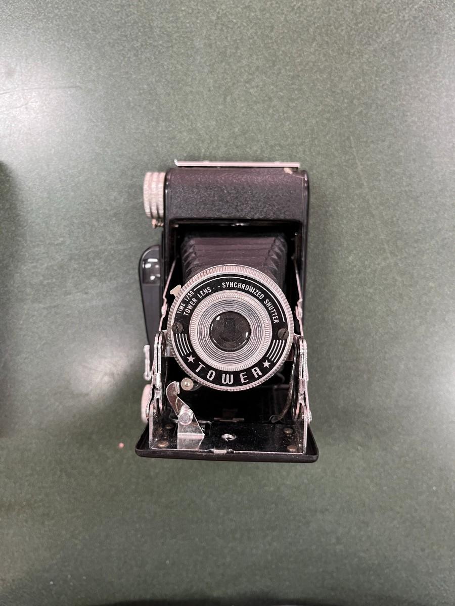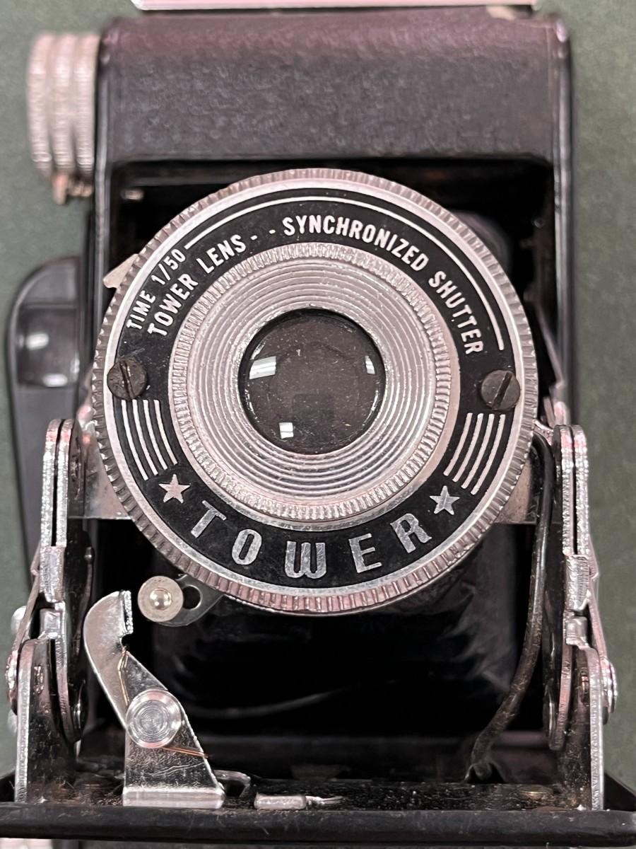 Vintage Tower Folding Bellows Camera likely from the 1950's. This camera model was notably sold by Sear, roebuck & Co. under the Tower Brand.